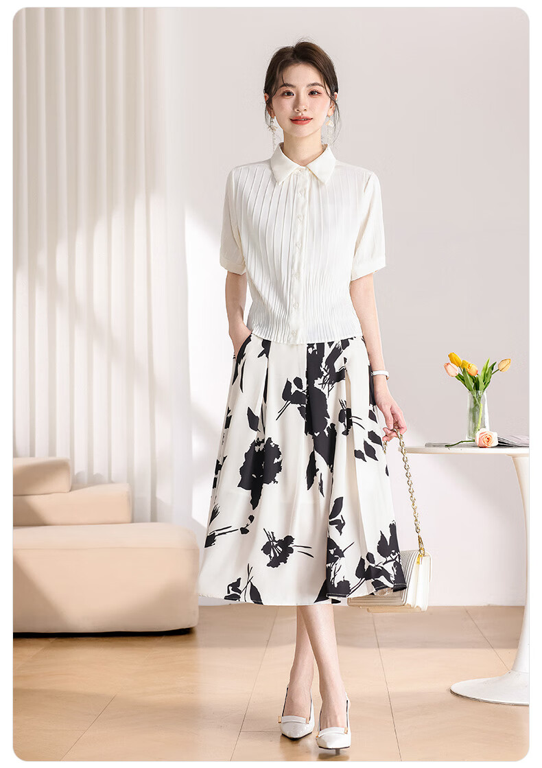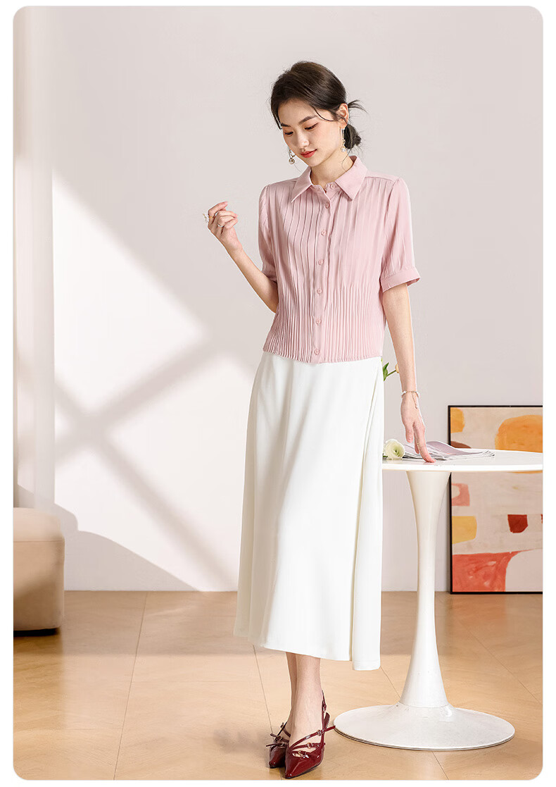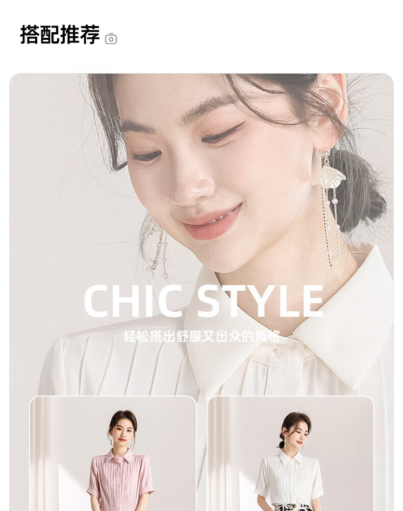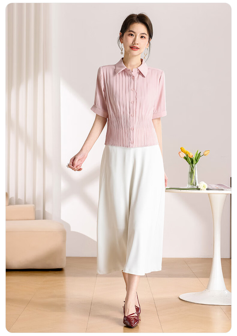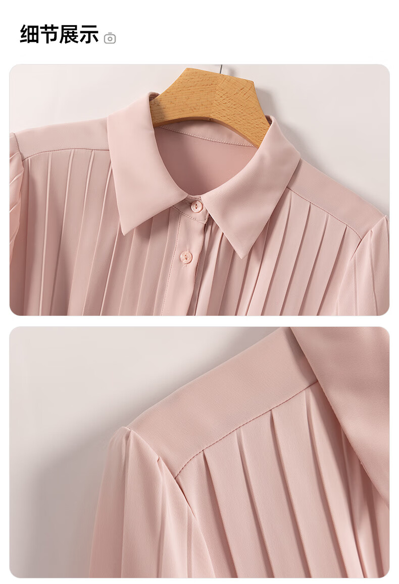 千柏年夏季新款翻领褶皱短袖正肩白衬衫女宽松透气收腰设计感通勤上衣 米杏 L (115-125斤)