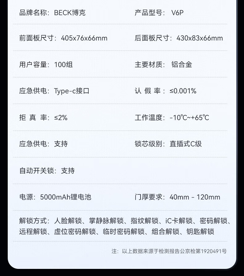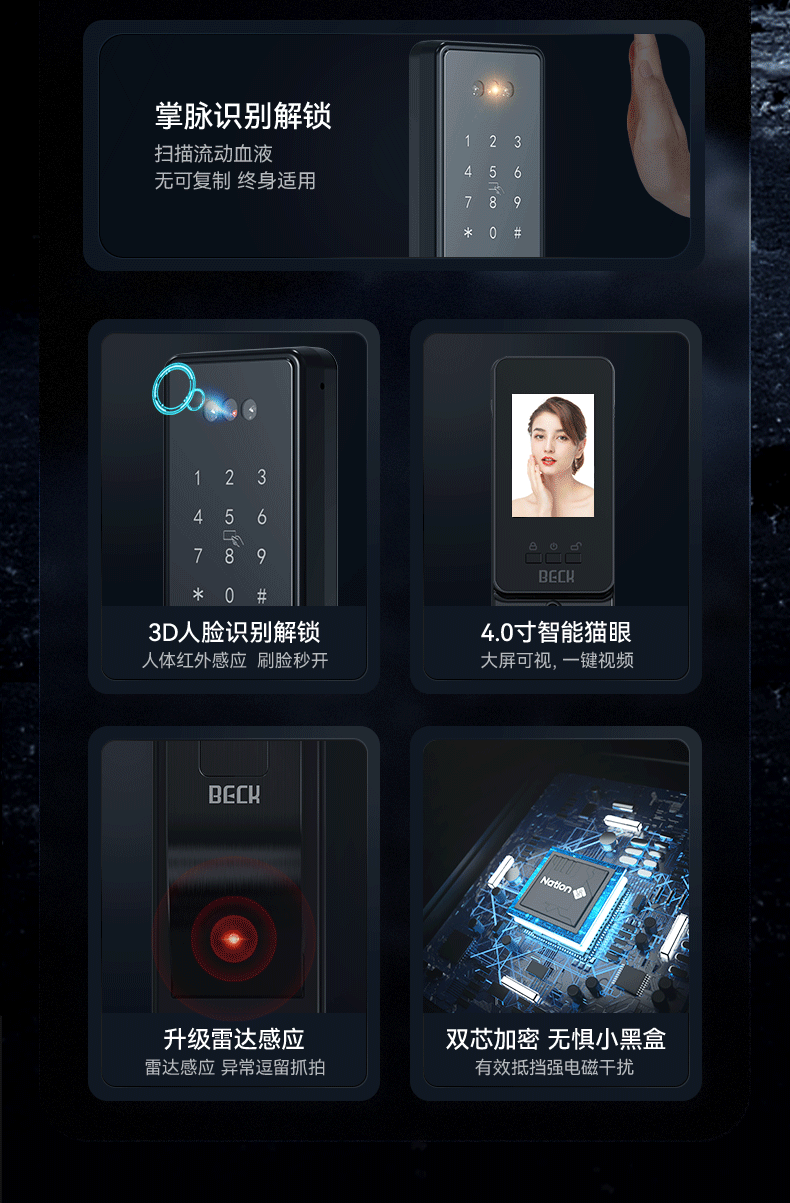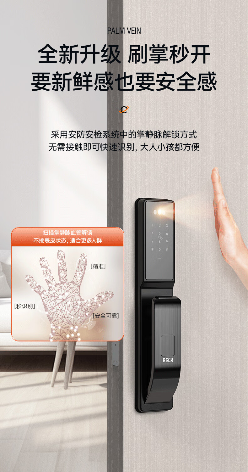 BECK人脸指纹锁家用智能门锁防盗密码锁智能锁入户门电子锁猫眼V6P