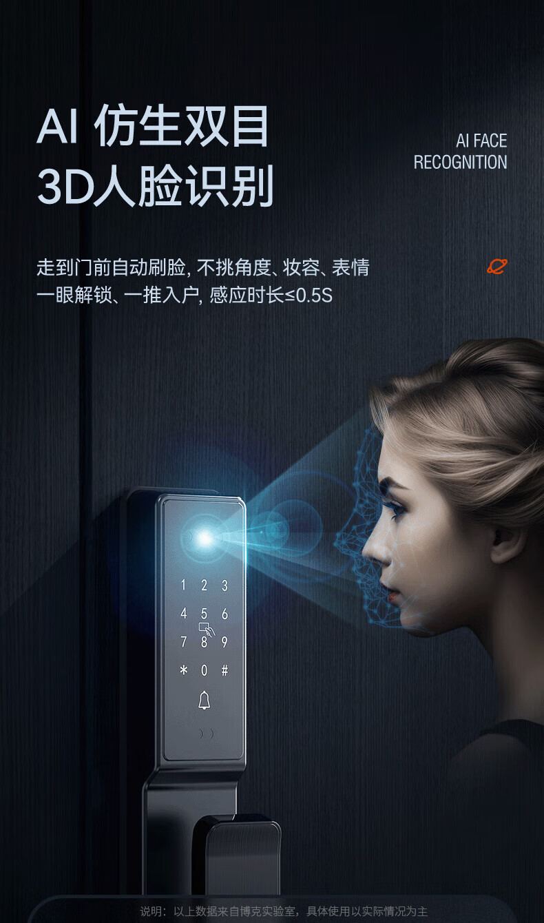 小米智能门锁M30 人脸识别款 双摄猫眼指纹锁 可视大屏 电子锁密码锁