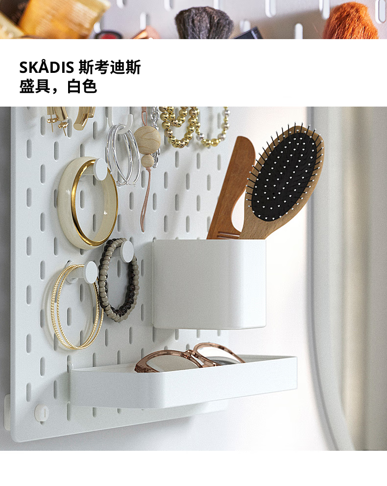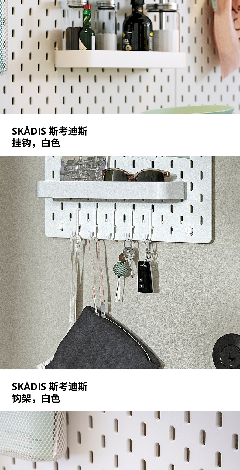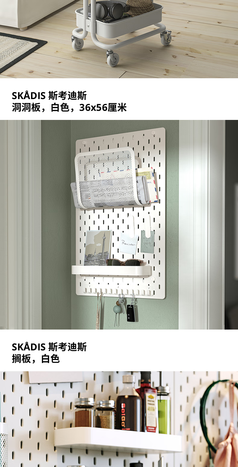 宜家(IKEA)【热销套组】拉斯克小推车斯考迪斯洞洞板组合收纳置物架 手推车35cm+钉板盛具18件套