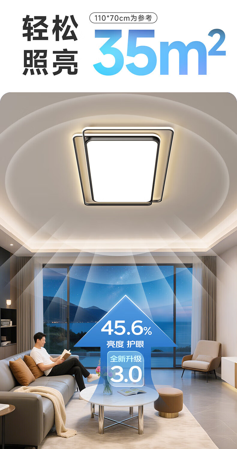 惠普客厅灯现代简约大气吸顶灯新款护眼led超亮主灯全屋灯具组合套餐 110cm-智控&遥控