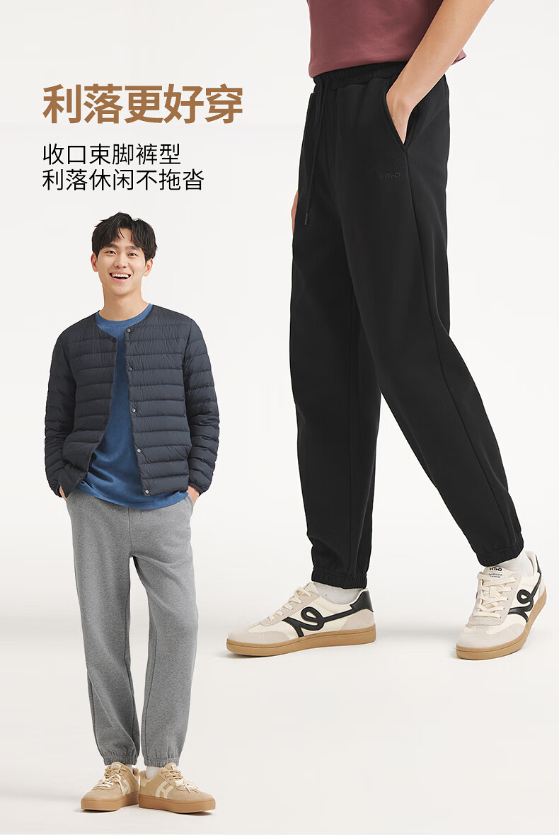热风男士加绒卫裤2025年冬季新款基础宽松直筒束脚运动裤休闲长裤子 01黑色 S