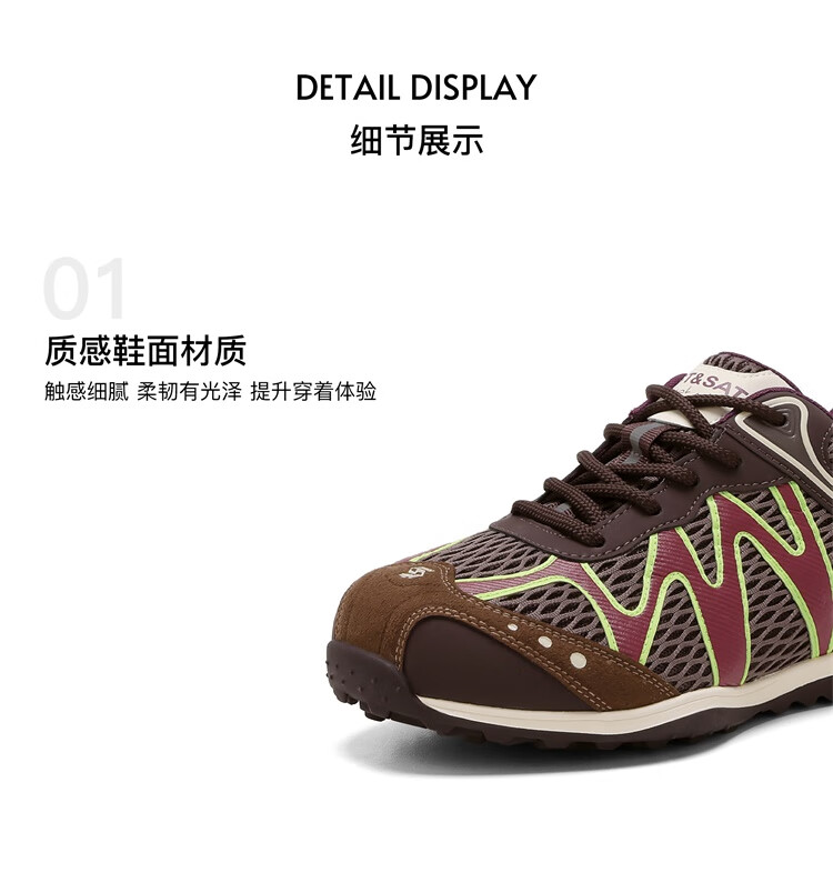 星期六时尚圆头透气舒适休闲女鞋2025秋季新款百搭运动鞋MTSSD3112C8J 米/黄 35