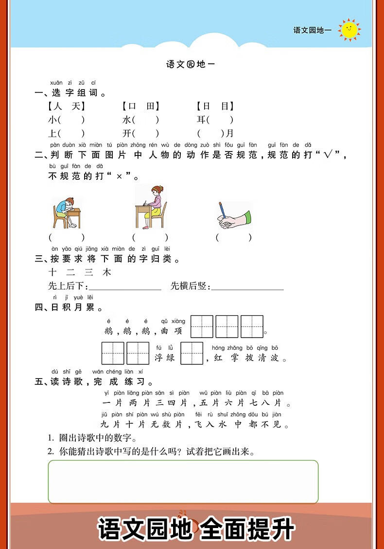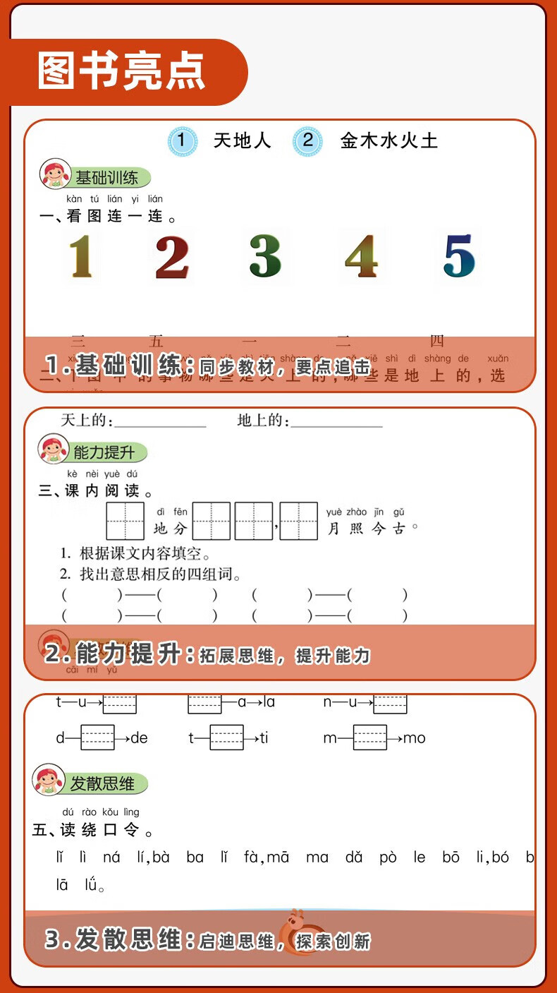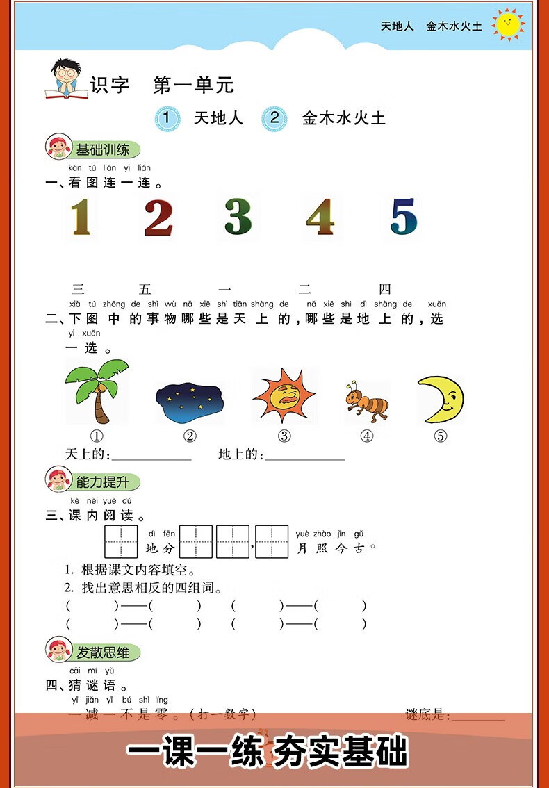 【老师推荐】小学同步训练练习册一二三四五六年级上册语文数学英语人教版北师版名师课堂冲刺100分测试卷123456年级黄冈一课一练作业本鸿创图书 【一上】语文人教版