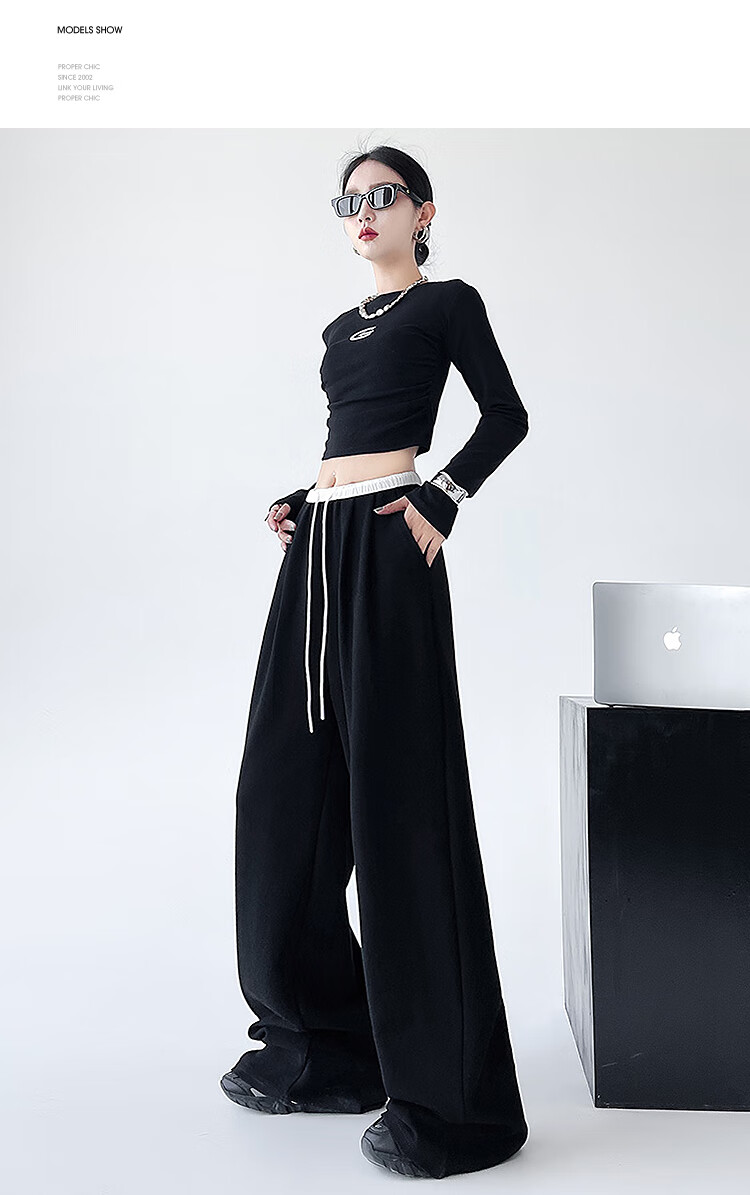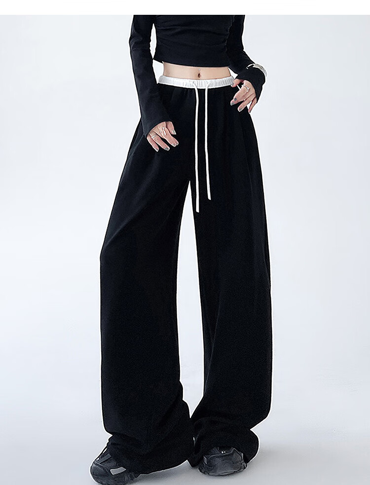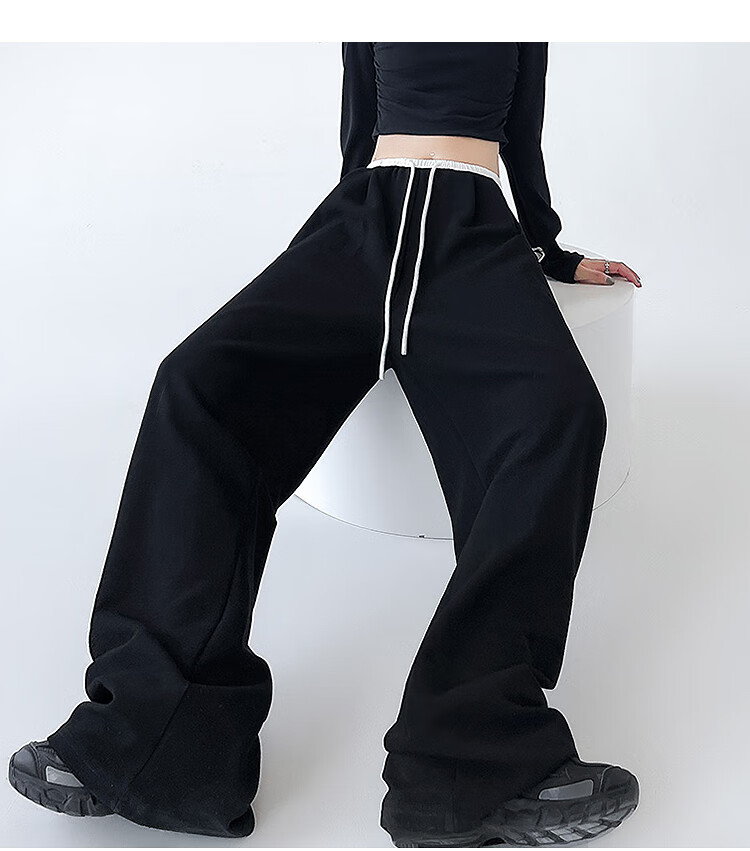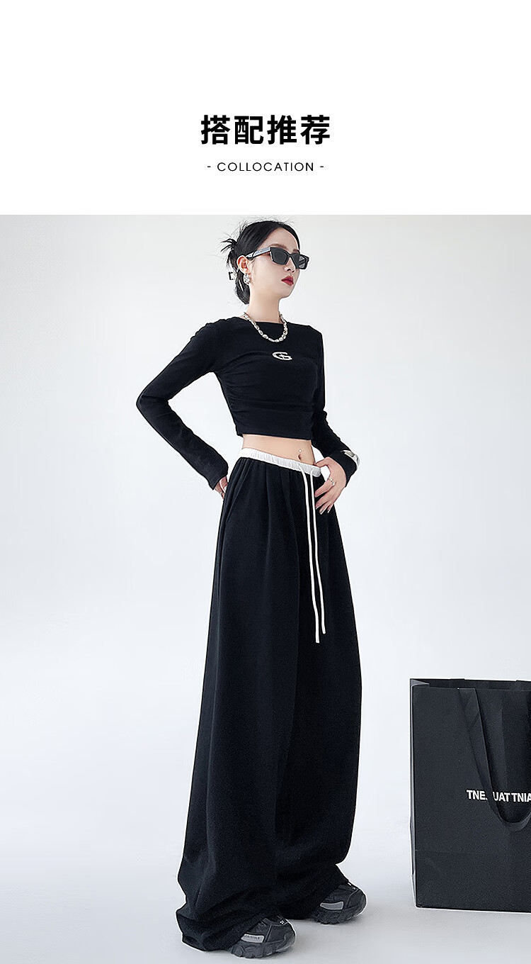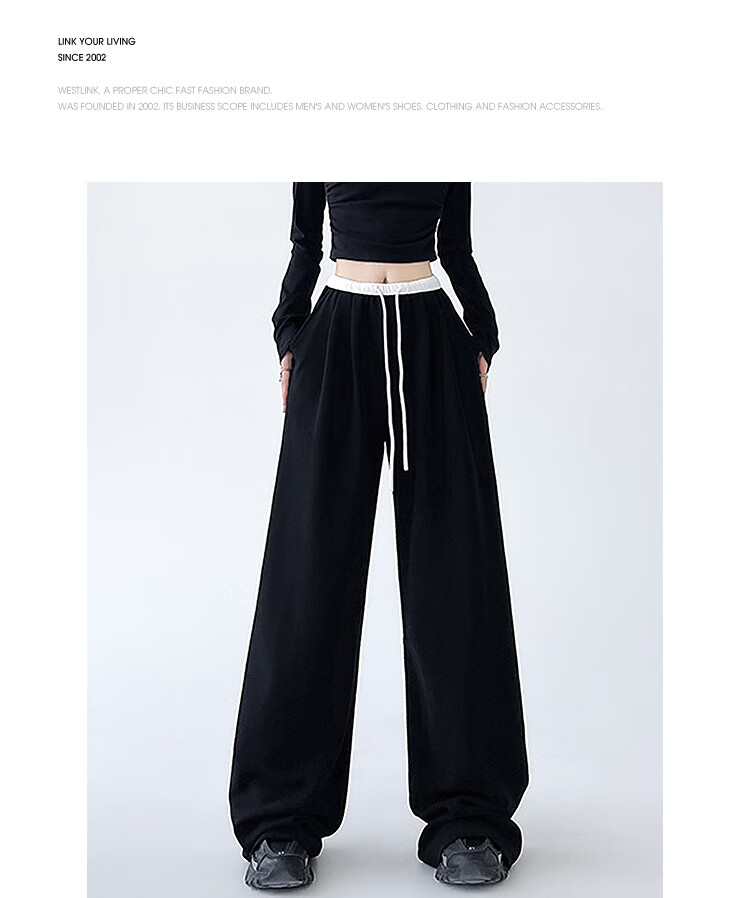 西遇(Westlink)垂感宽松休闲裤女2025年秋季新款高腰撞色抽绳卫裤美式运动裤 黑色 (预售15天) S (26)