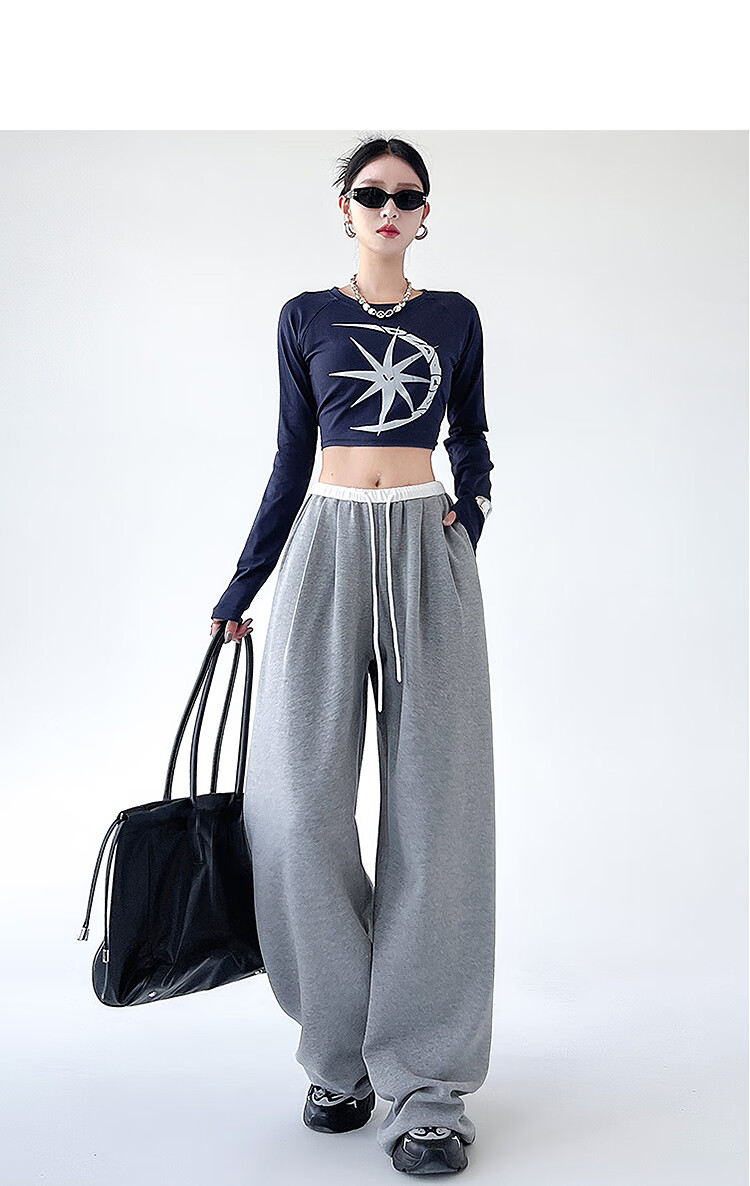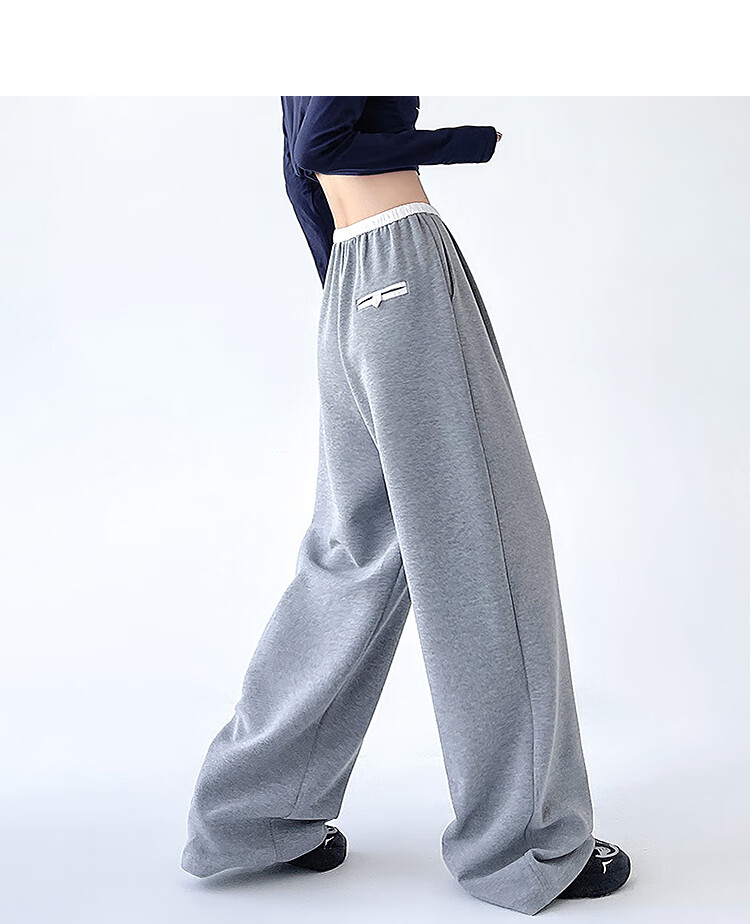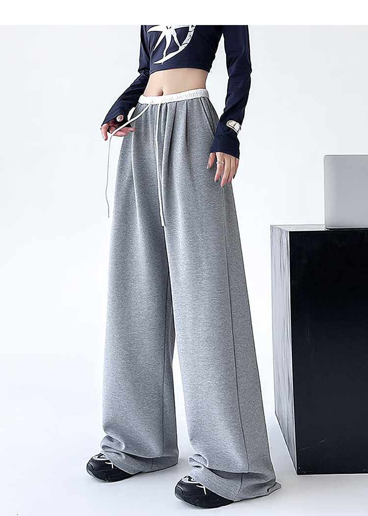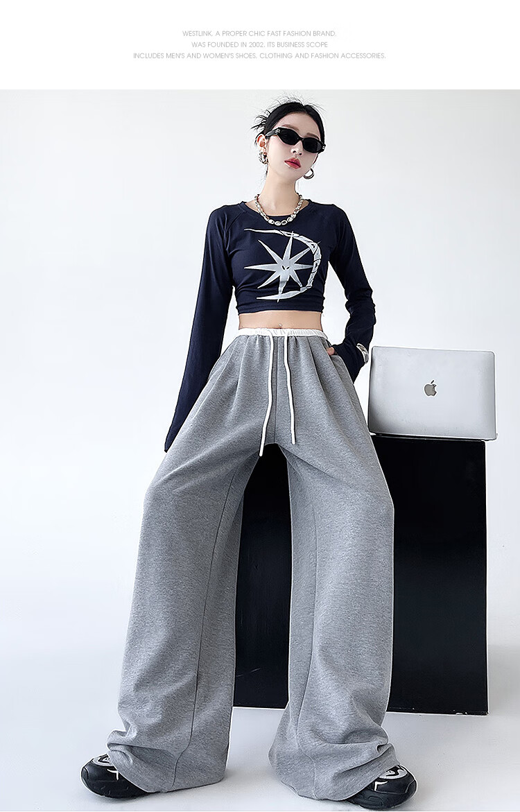 西遇(Westlink)垂感宽松休闲裤女2025年秋季新款高腰撞色抽绳卫裤美式运动裤 黑色 (预售15天) S (26)