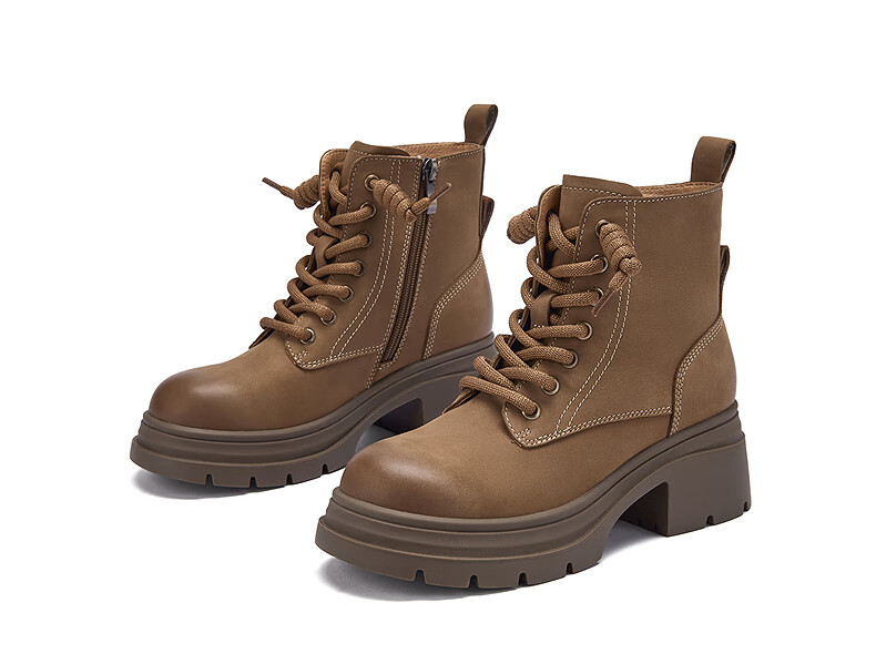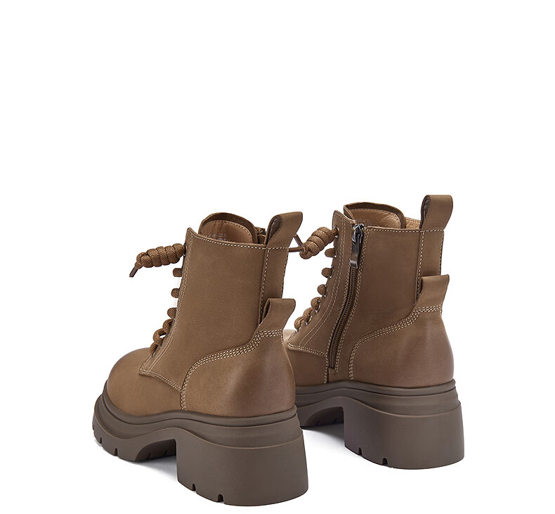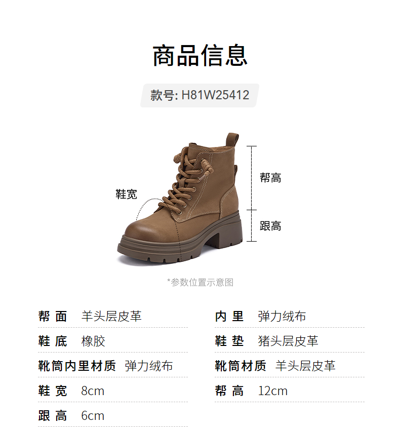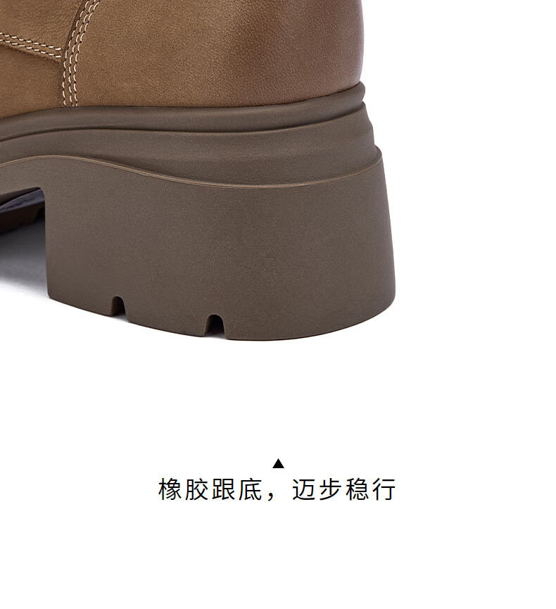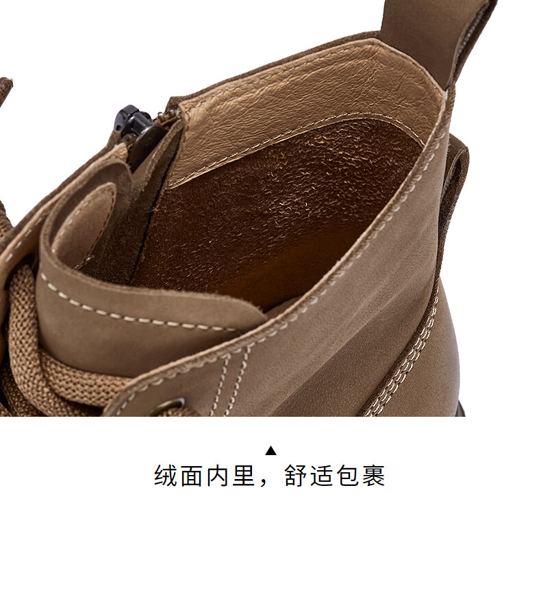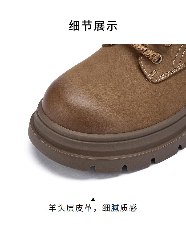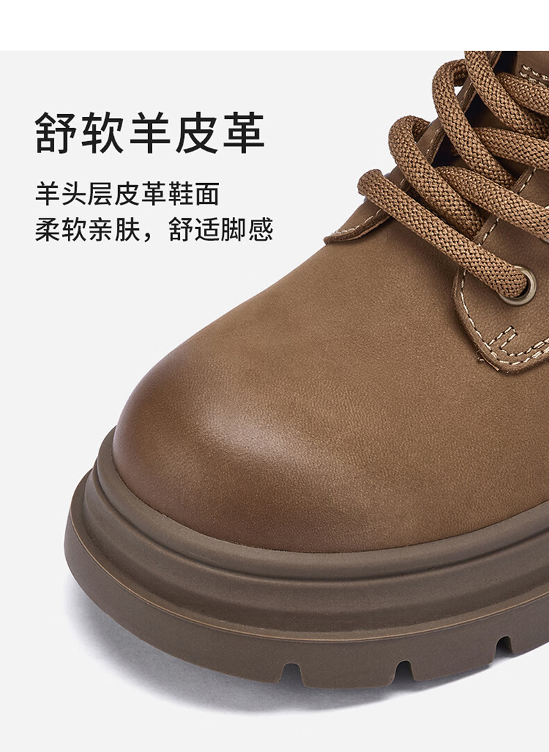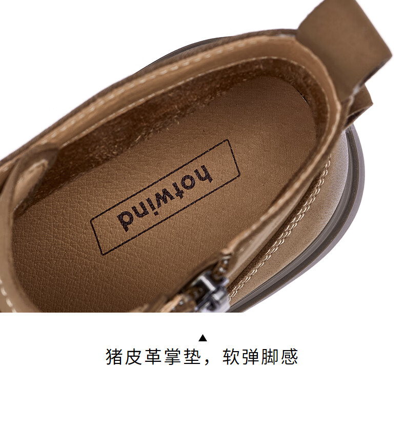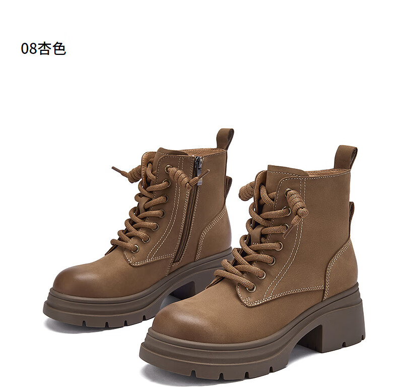 热风(Hotwind)【商场同款】厚底马丁靴女2025年冬季新款增高短靴粗跟复古时装靴 08杏色 羊头层皮革 34