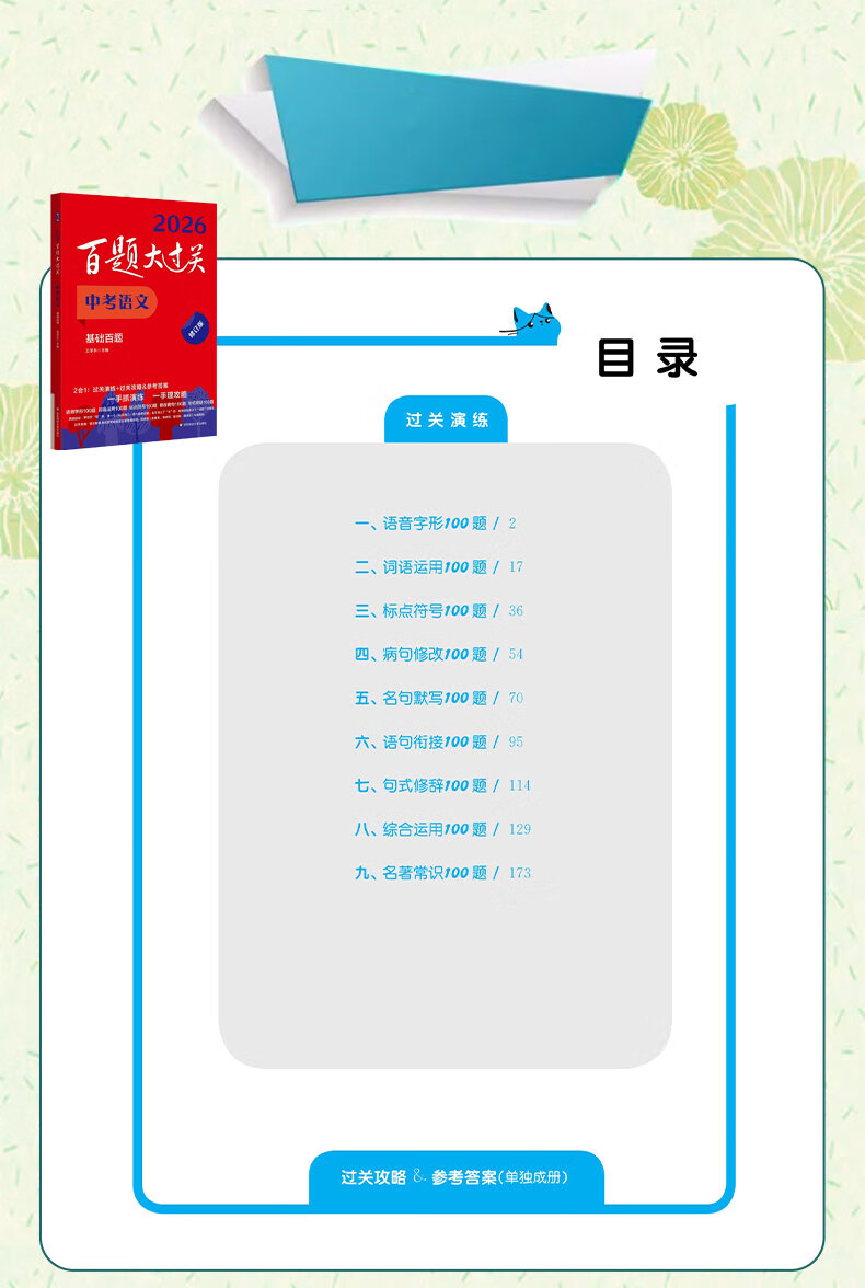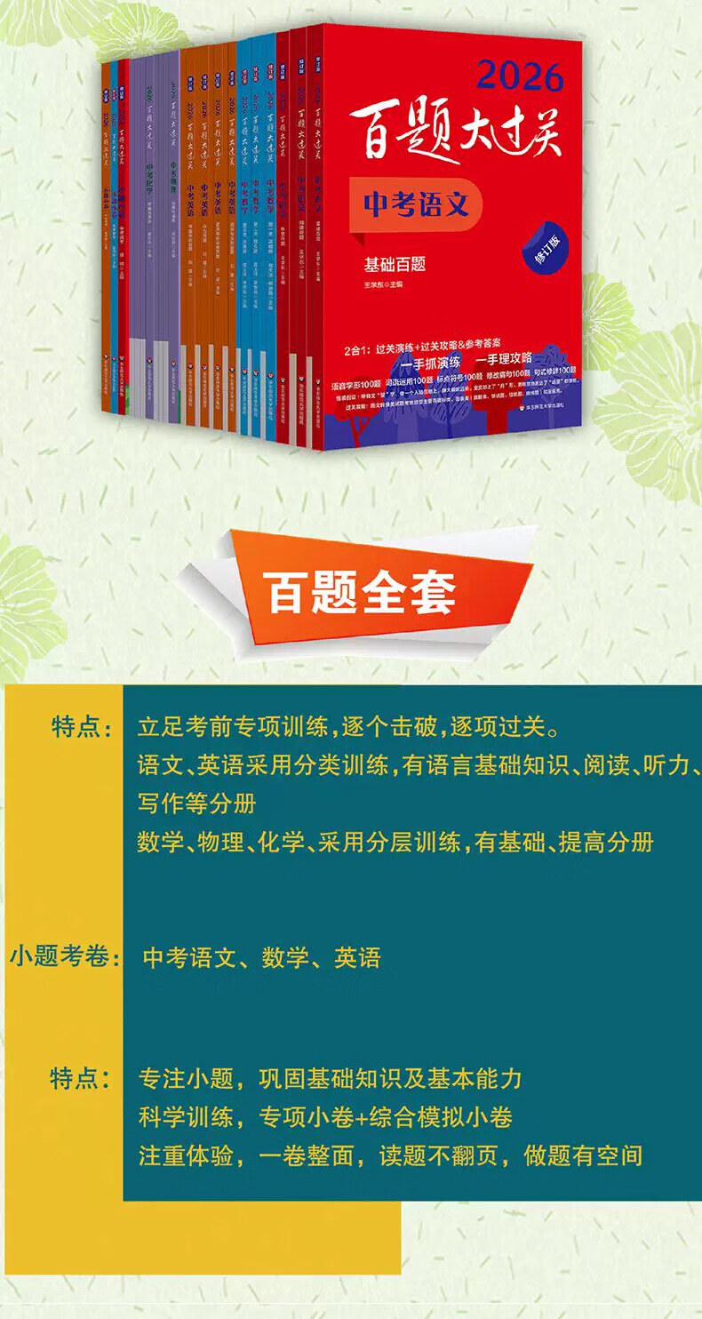 26百题大过关中考语文数学英语基础百题提高英语阅读完形填空听力语言核心题作文总复习必刷题小题小卷攻略与演练核心题压轴题 语文【基础百题】 全国通用