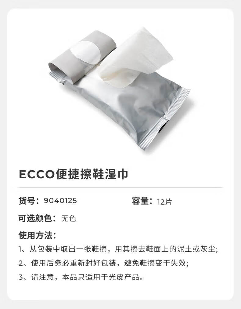 爱步(ECCO)鞋配件 便捷擦鞋湿巾904012 无色 HL