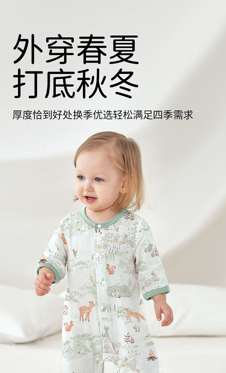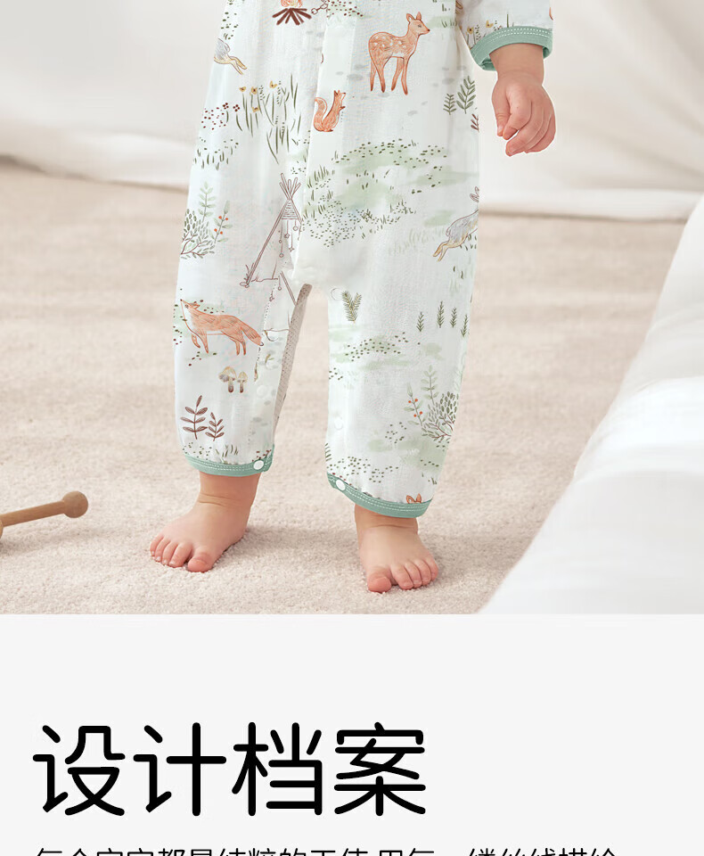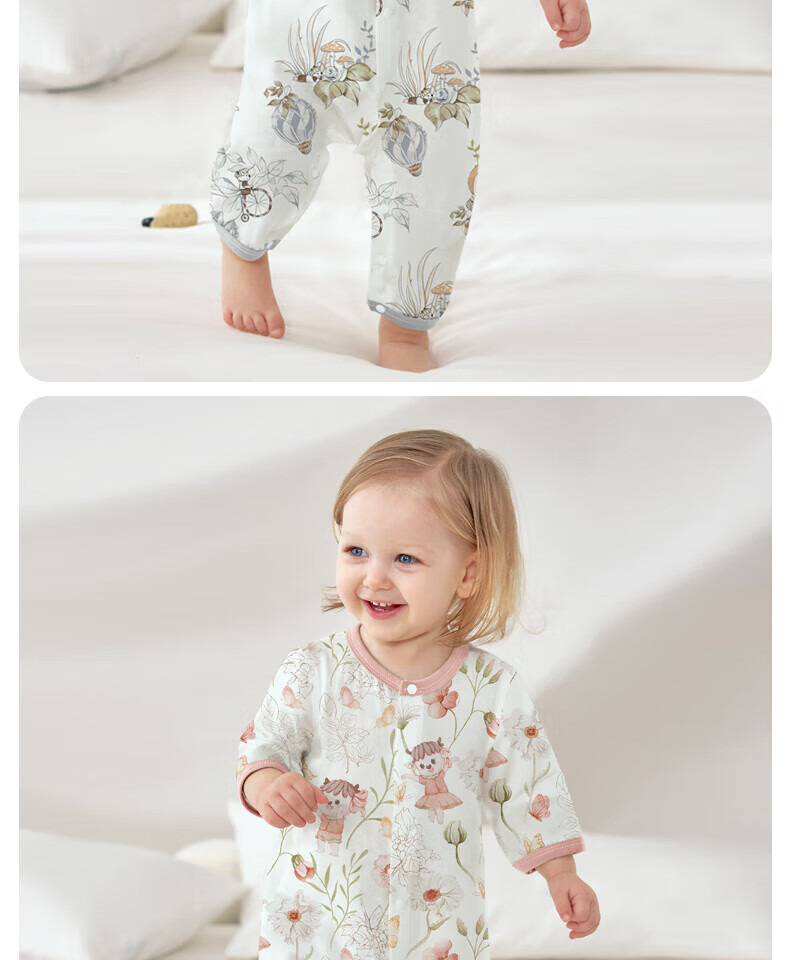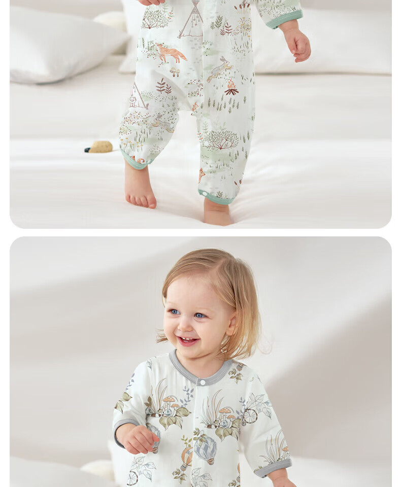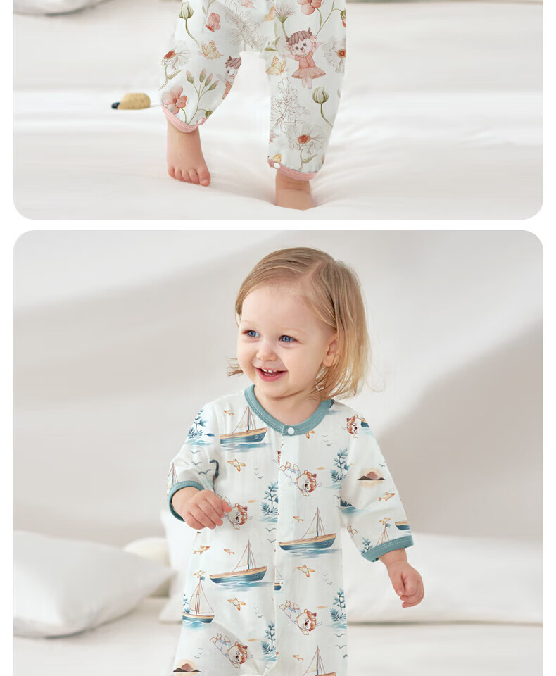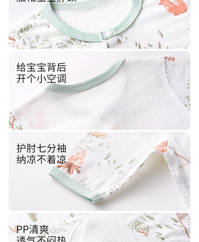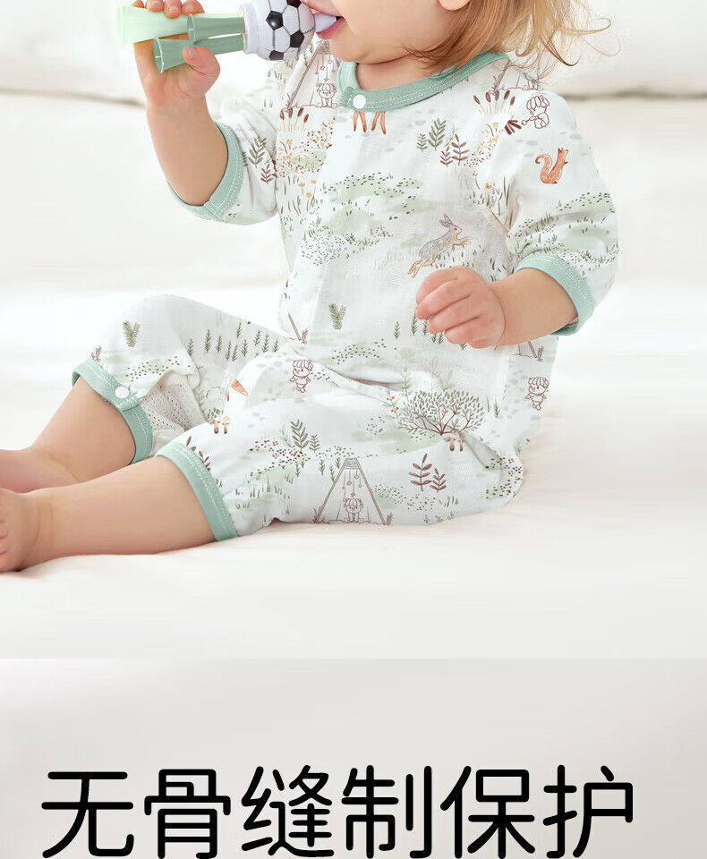 欧孕(OUYUN)婴儿睡袋秋季宝宝天竹棉网眼哈衣七分袖薄款睡衣 尼斯水怪 36cm 100码