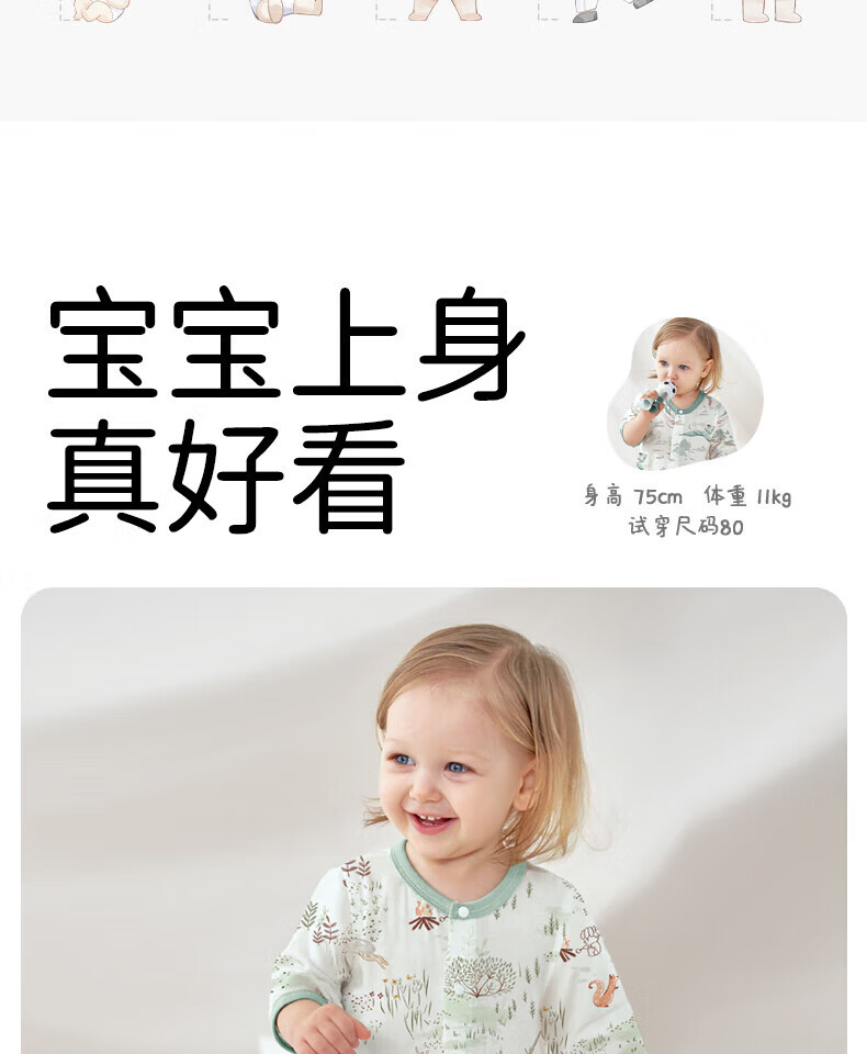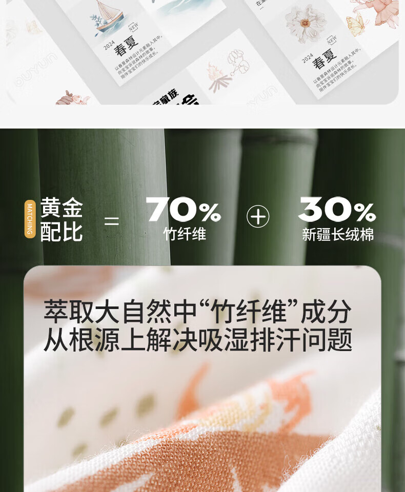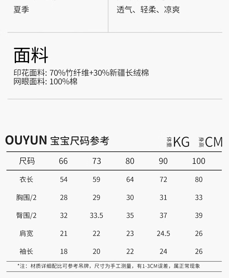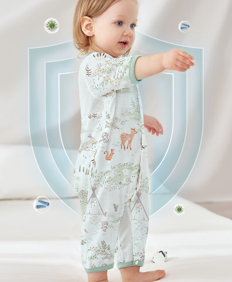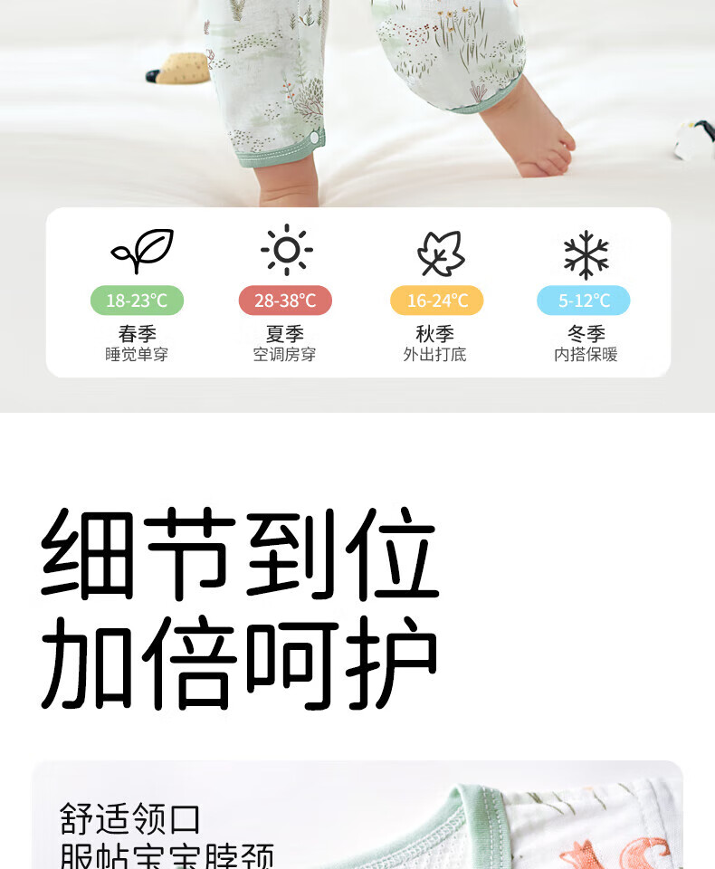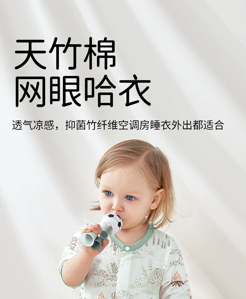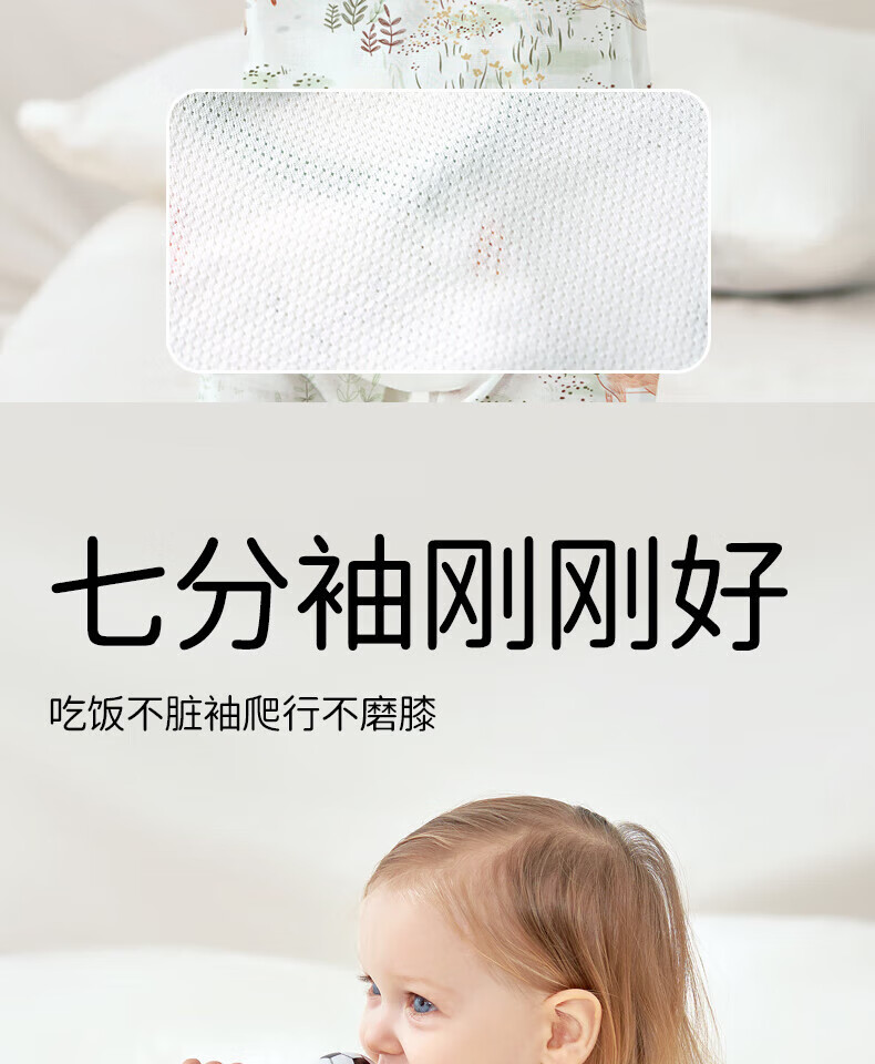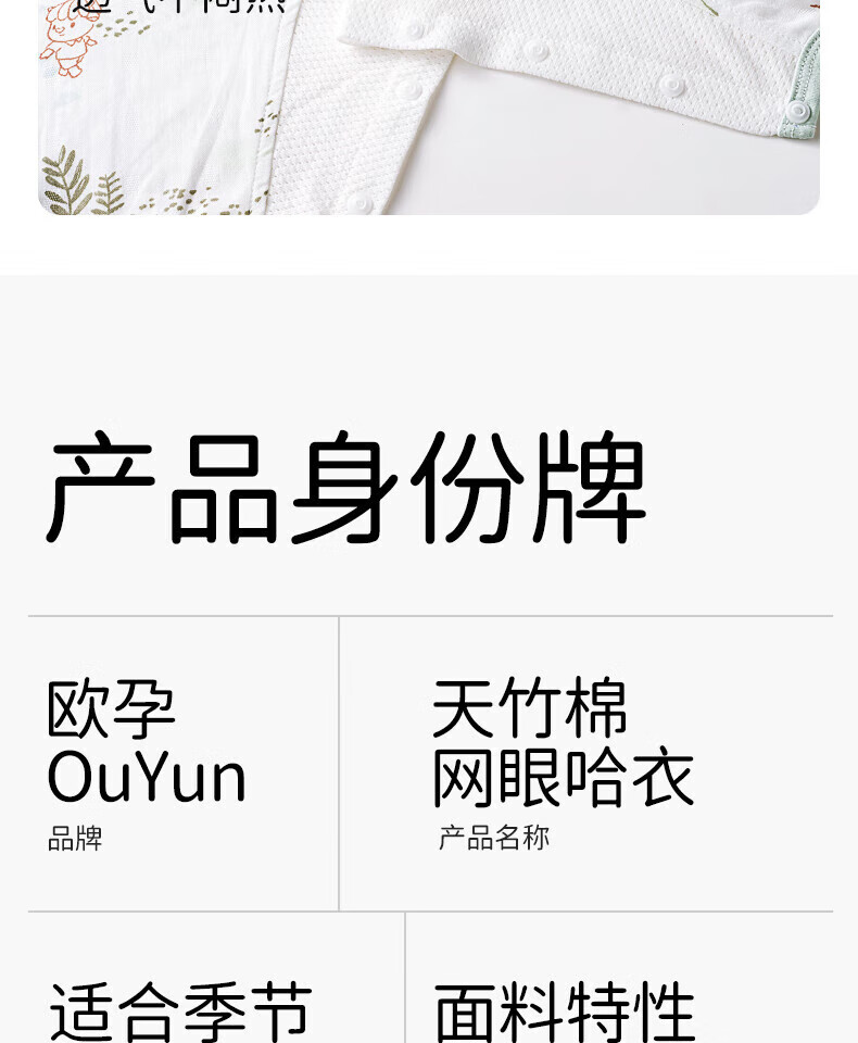 欧孕(OUYUN)婴儿睡袋秋季宝宝天竹棉网眼哈衣七分袖薄款睡衣 尼斯水怪 36cm 100码