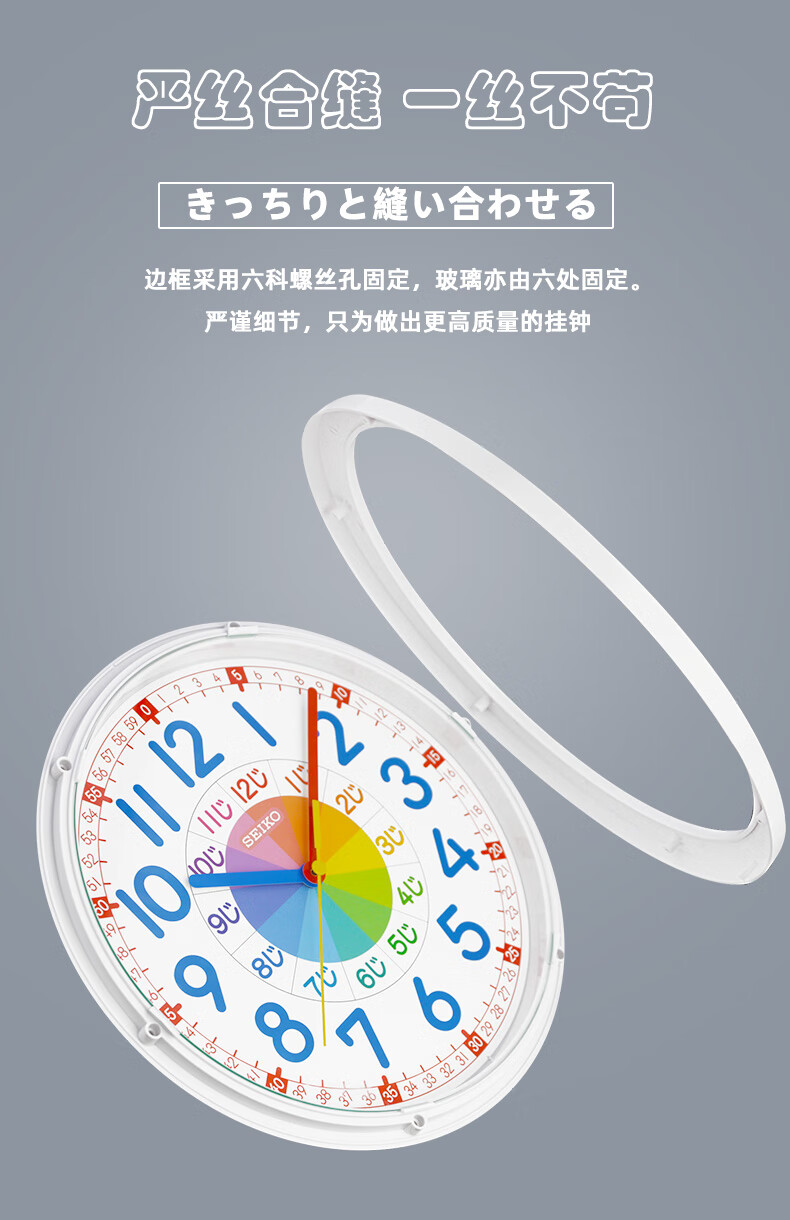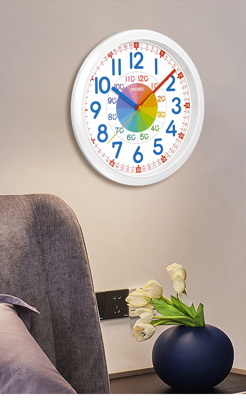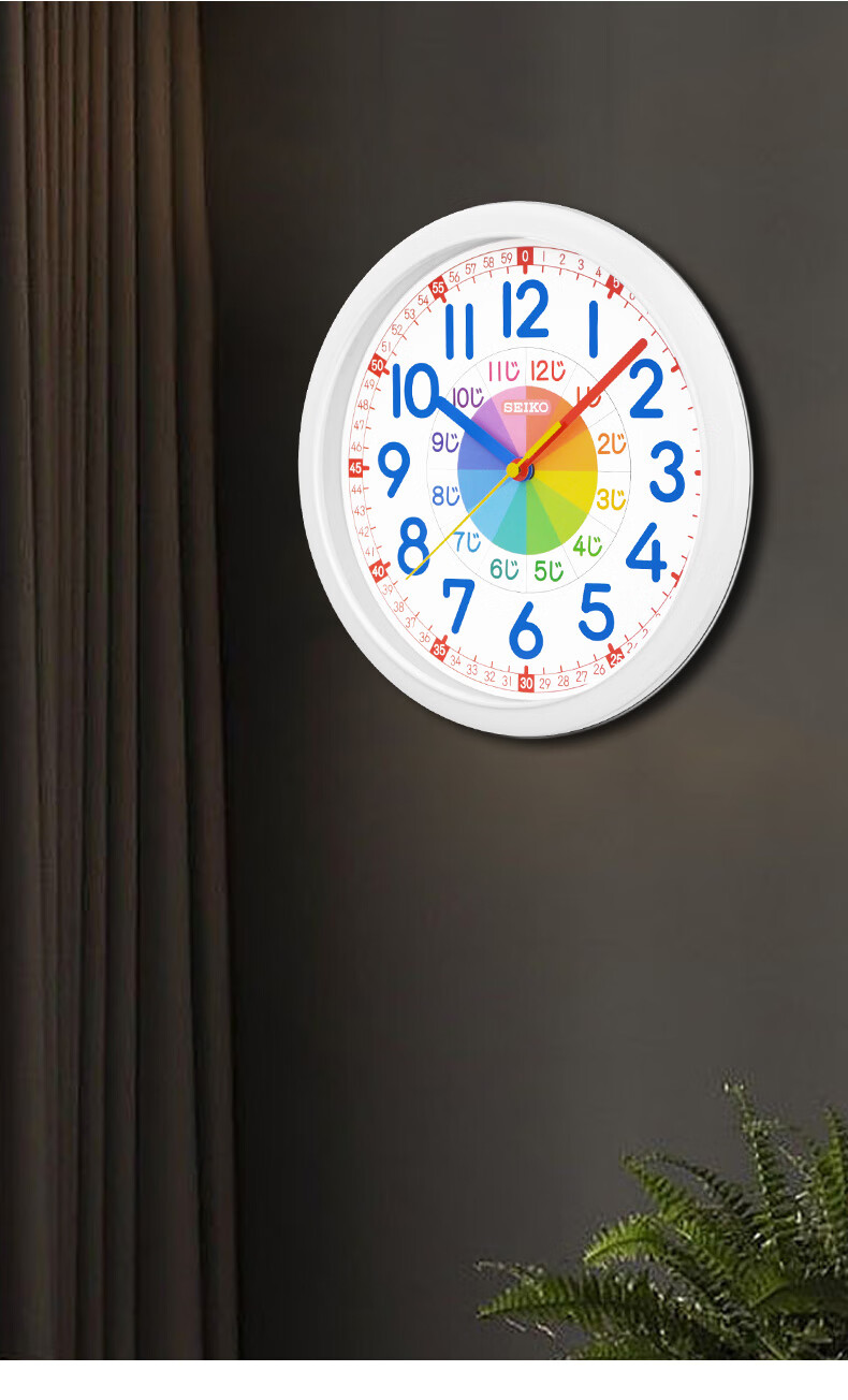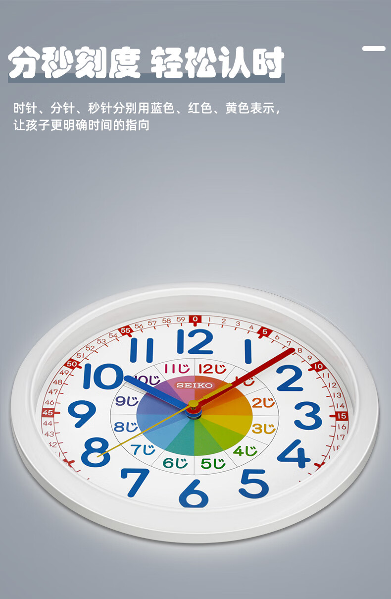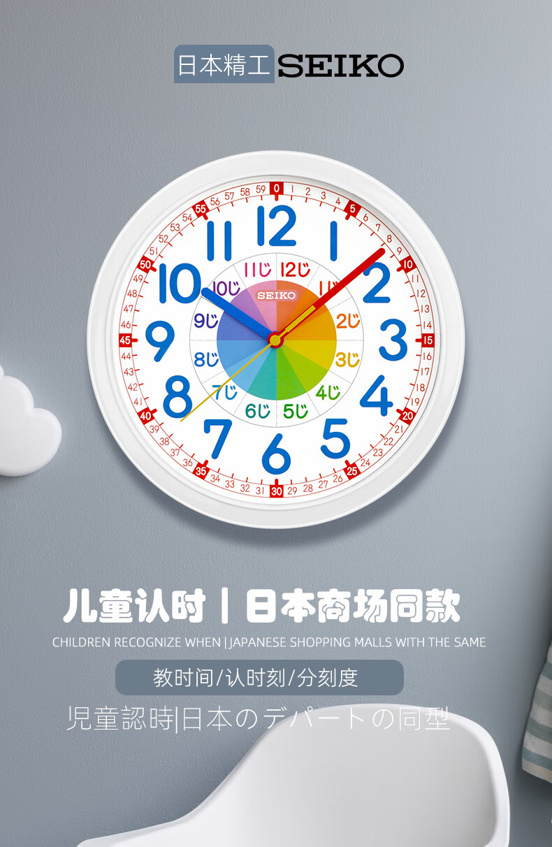 SEIKO精工家用免打孔10英寸25cm儿童认时钟表挂墙卧室扫秒学生挂钟