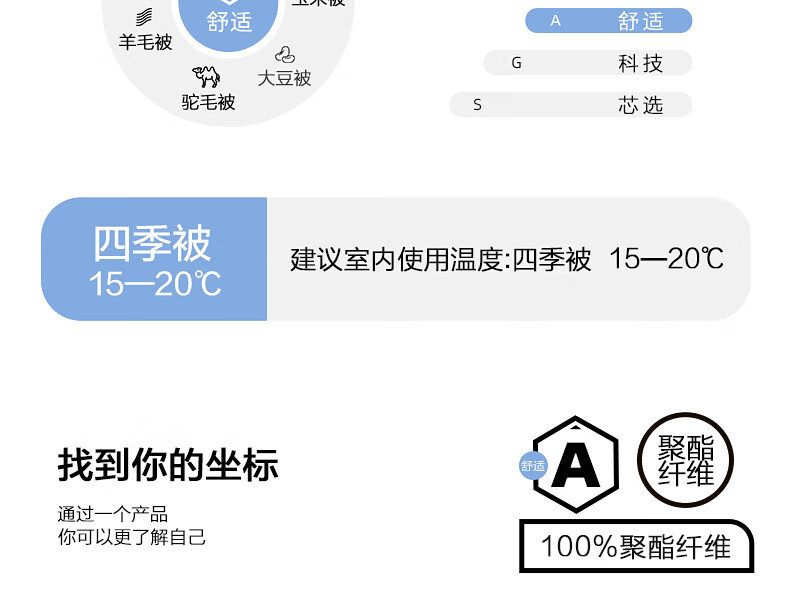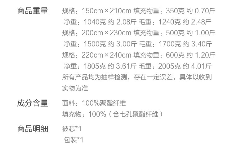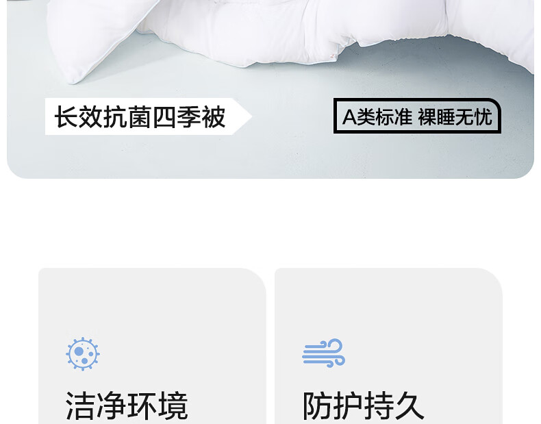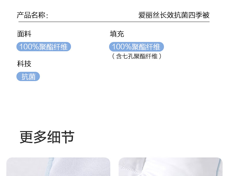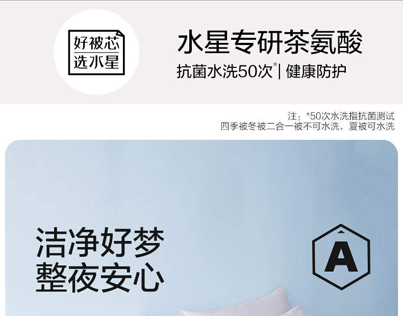 水星家纺被子被芯 A类长效抗菌七孔纤维春秋被空调被芯被褥宿舍可用冬被 冬季被【蓝色/长效抗菌】 200cm×230cm