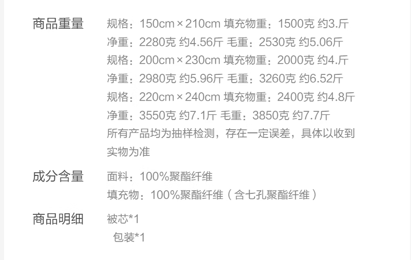 无印良品立体A类10%大豆纤维秋冬季被子棉被芯 6斤200*230cm 【浅咖】
