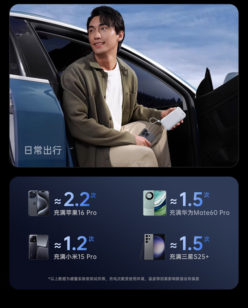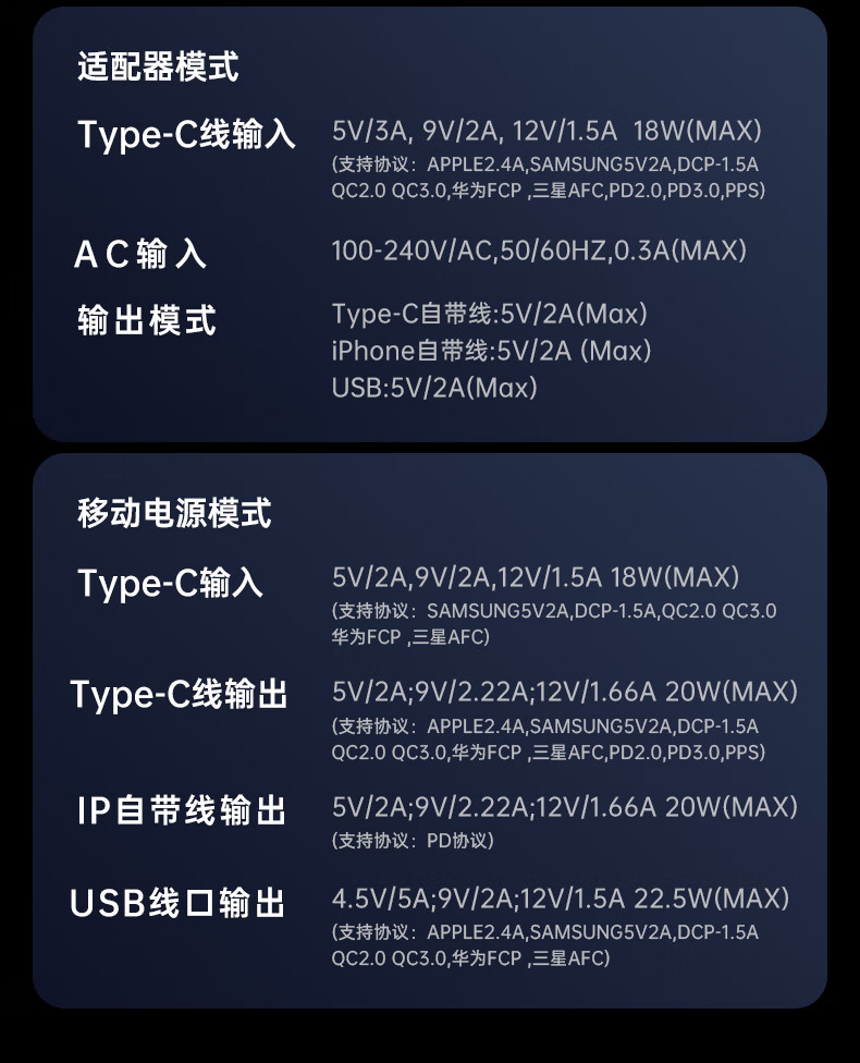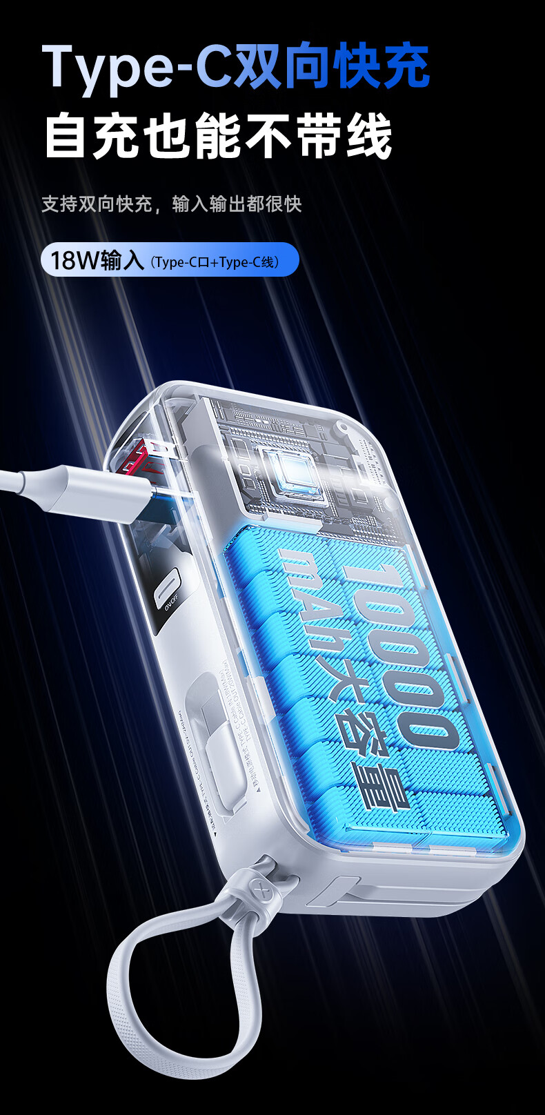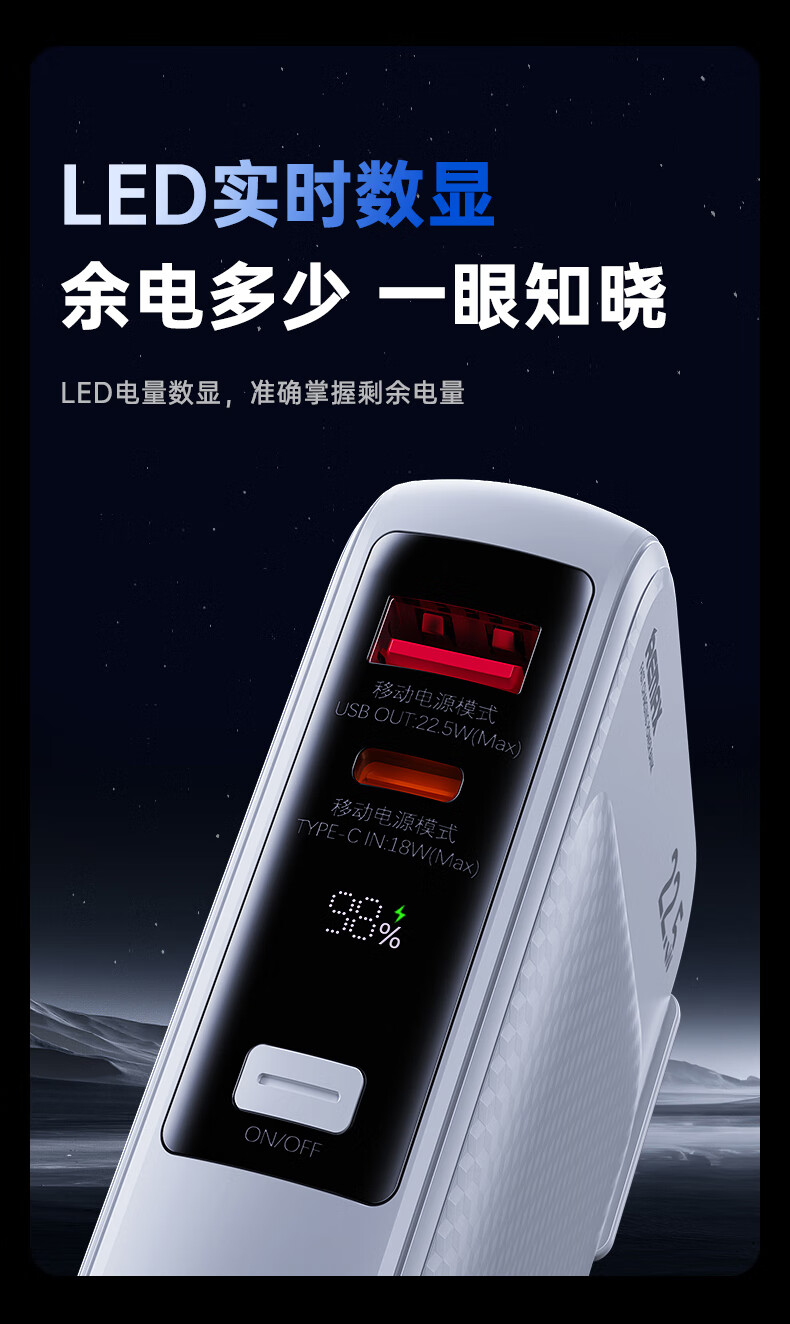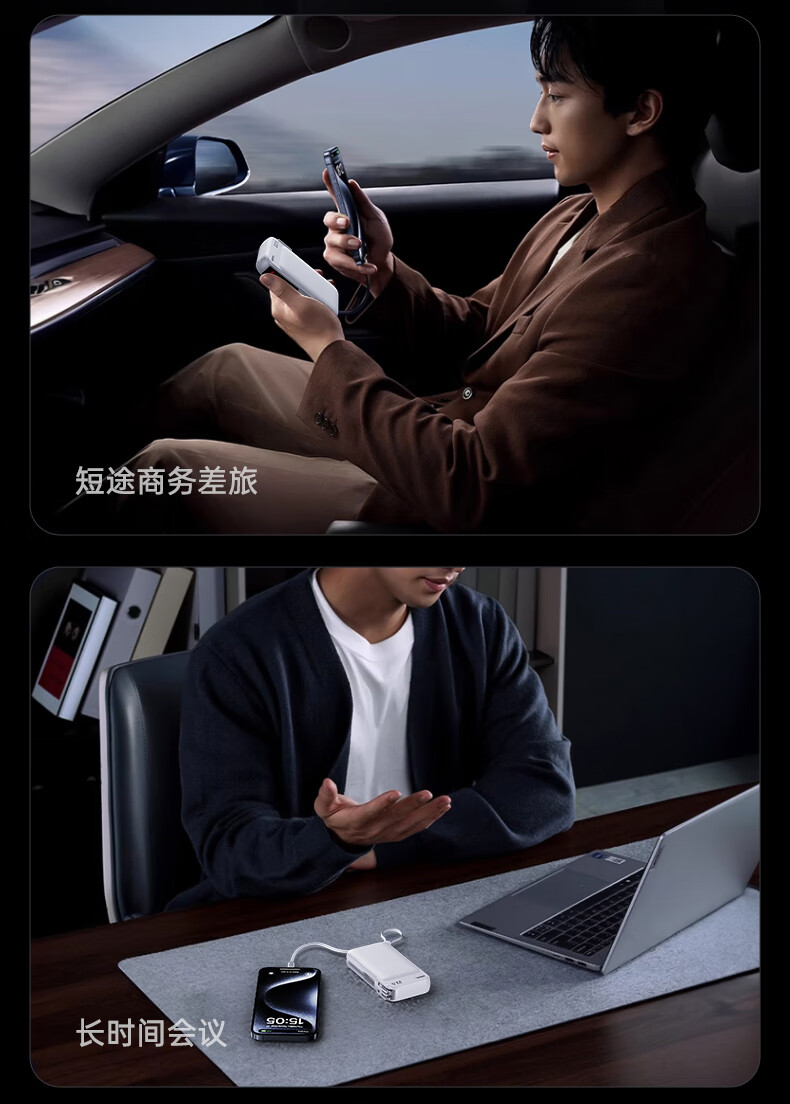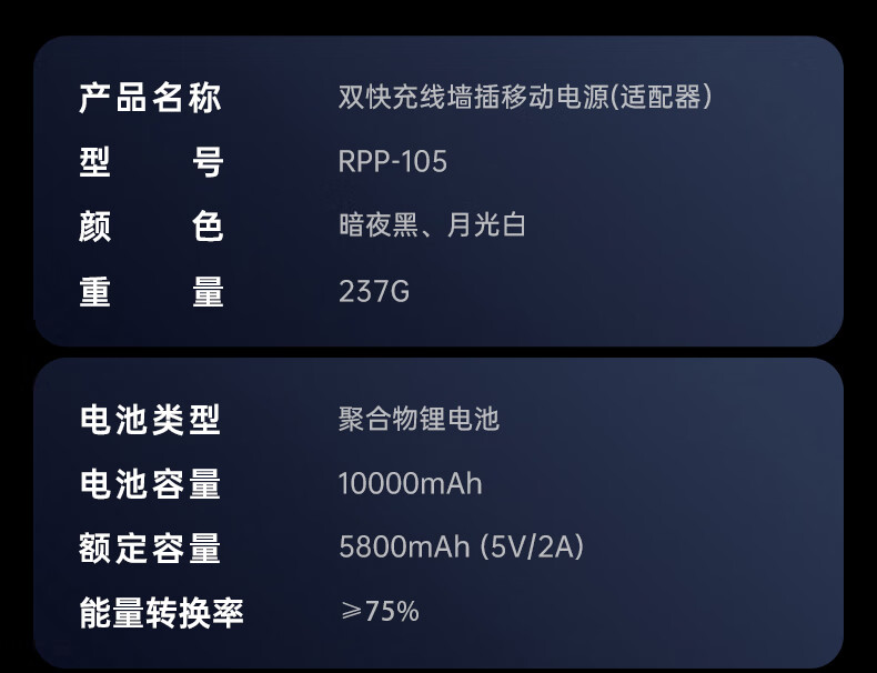 remax睿量3C认证丨三合一自带双线快充插头22.5W充电宝10000毫安移动电源可上飞机适用苹果1617华为小米