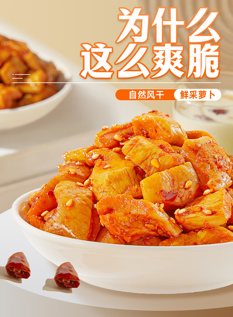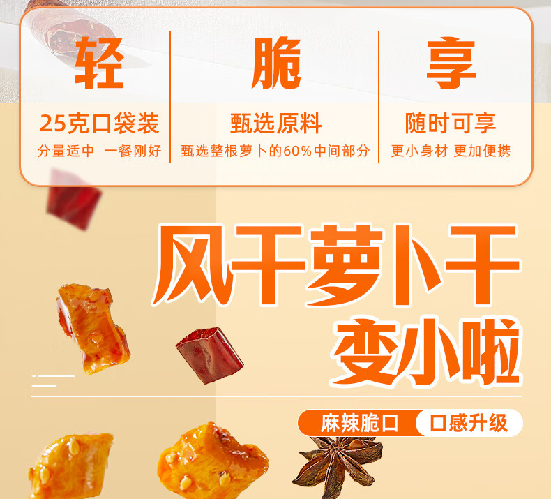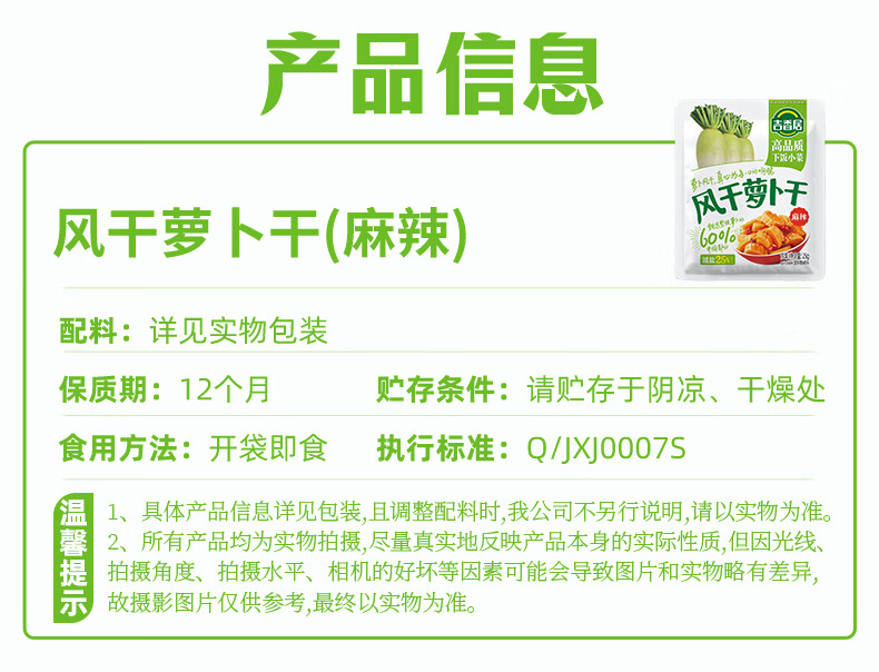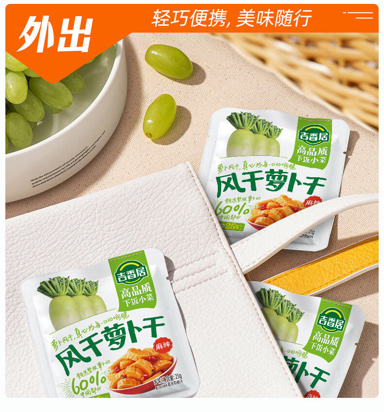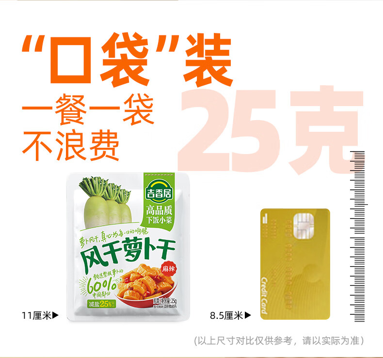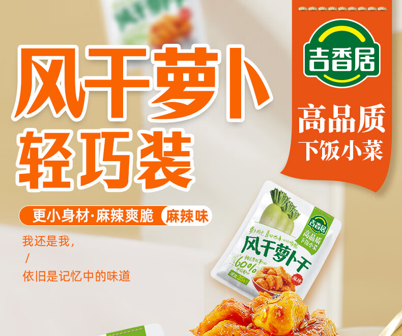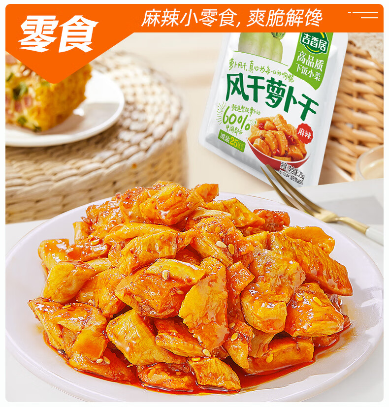 吉香居 风干萝卜干25g 麻辣萝卜干香辣脆早餐咸菜下饭菜小包装咸菜即食 风干萝卜干25g*20袋