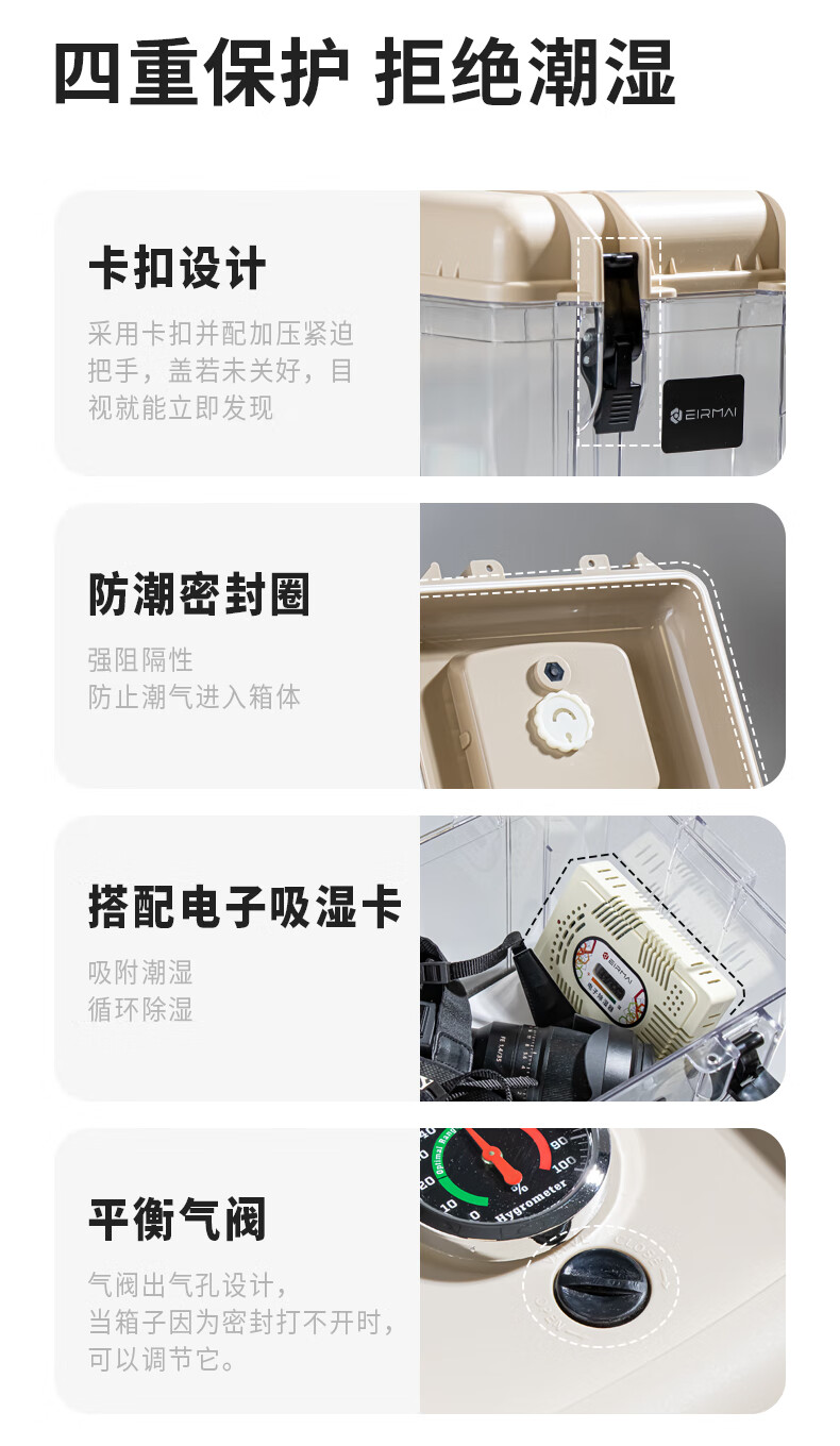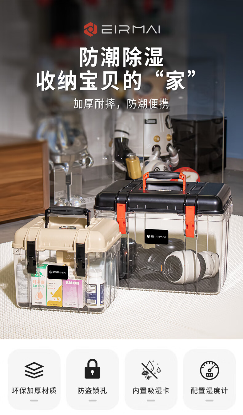 锐玛(EIRMAI)R25 单反相机干燥箱 防潮箱 密封镜头电子箱 大号 可手提 内置吸湿卡 黑色