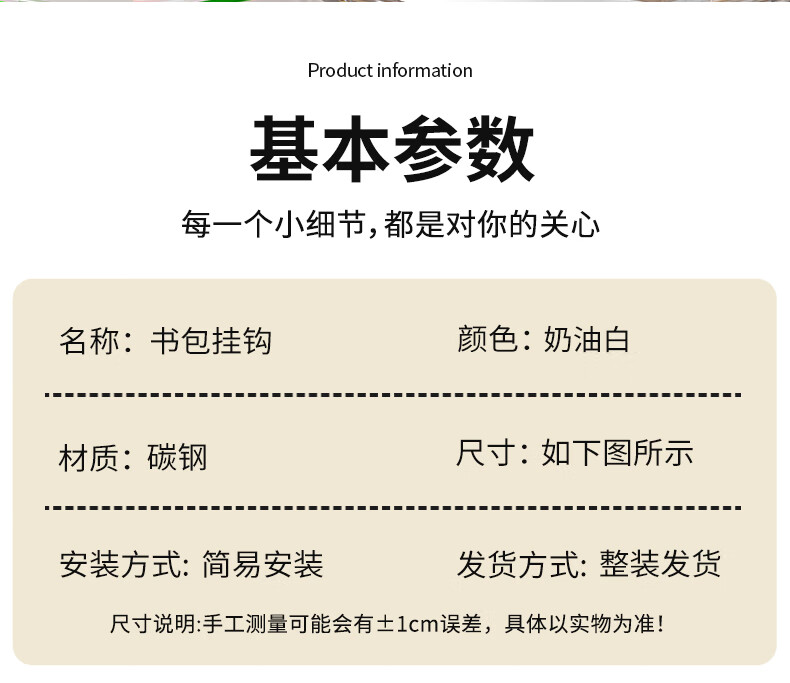 书包挂钩学生课桌侧边挂包神器书桌边缘挂包钩新款承重包包置物架 奶油女孩2个装