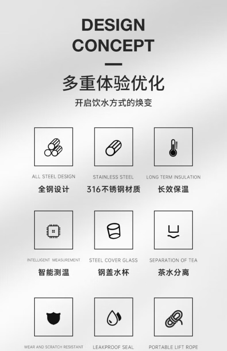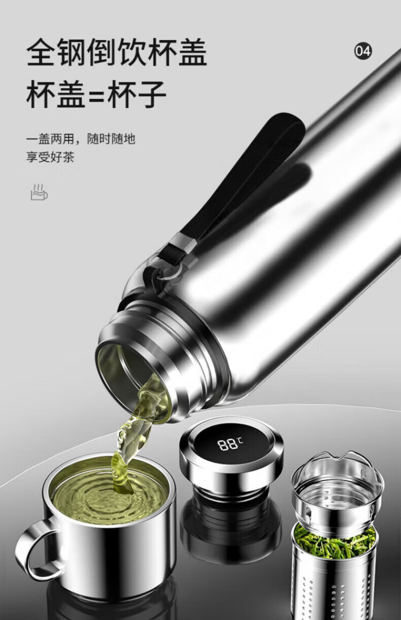 DEATKN2025新款德国高端长效保温杯316不锈钢全大容量茶水分离男款 [316款]钢本色 1500ml