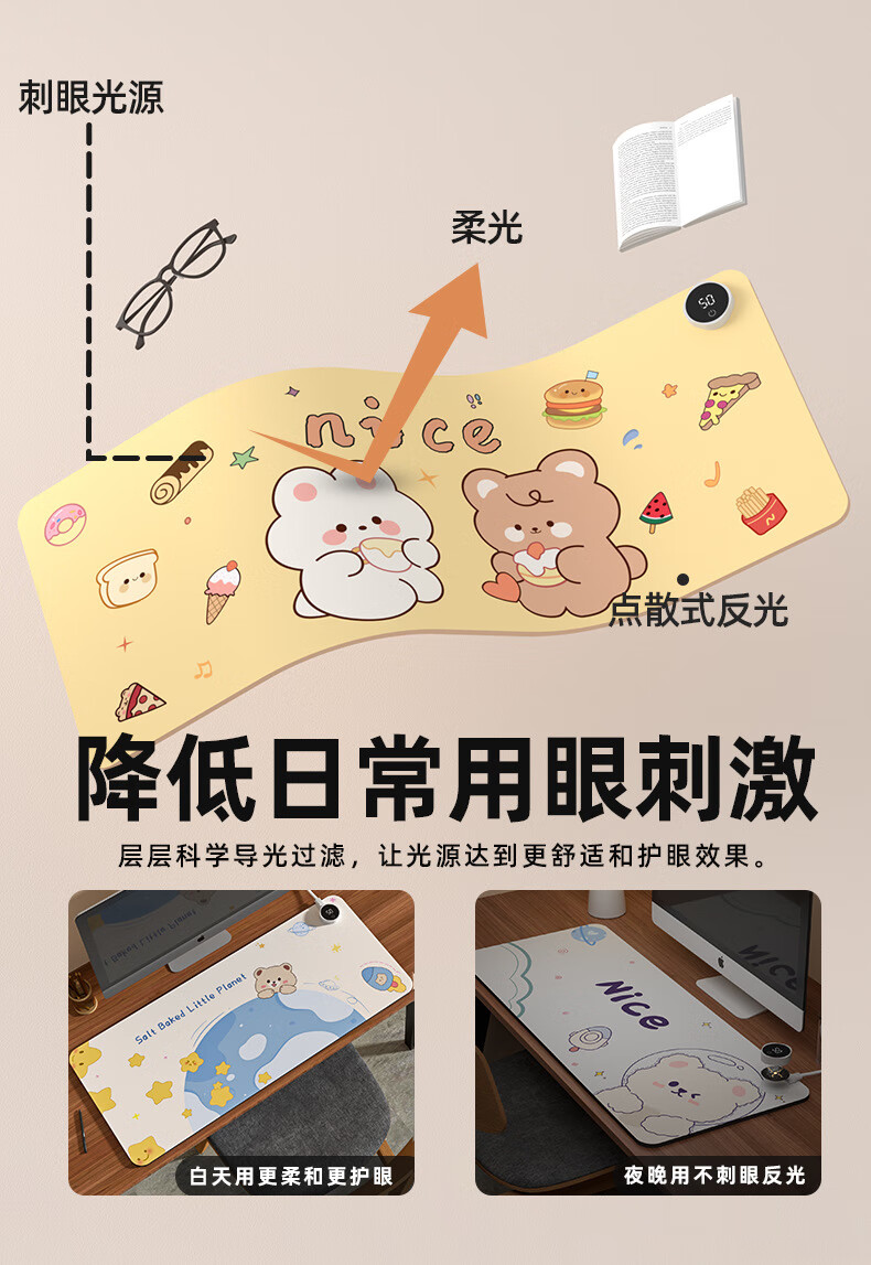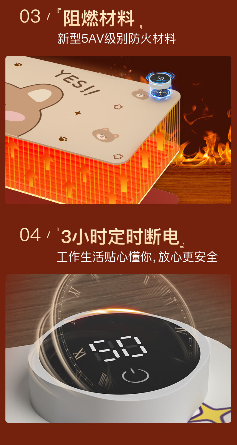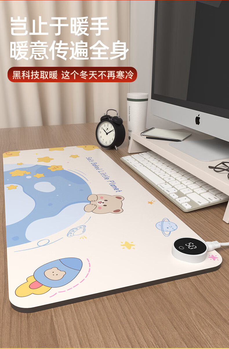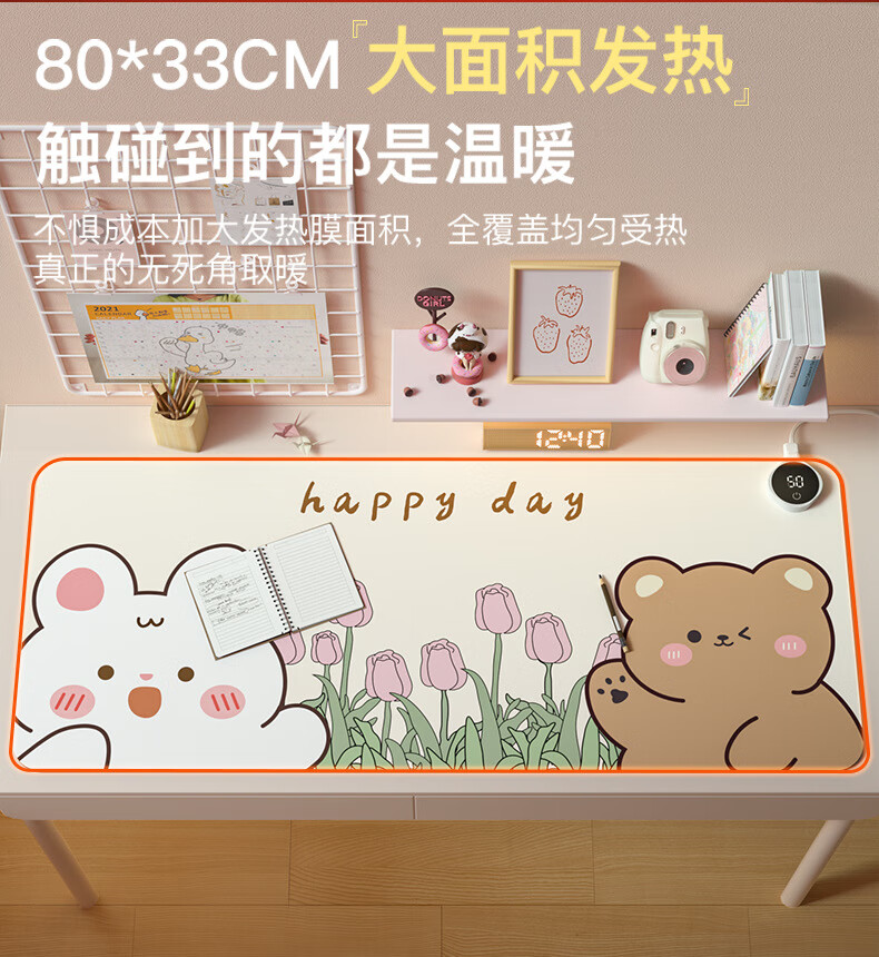 箱居智能数显加热桌垫鼠标垫加长加大发热桌垫办公学生写作业电热垫 三只呆豚 80*33cm数显开关