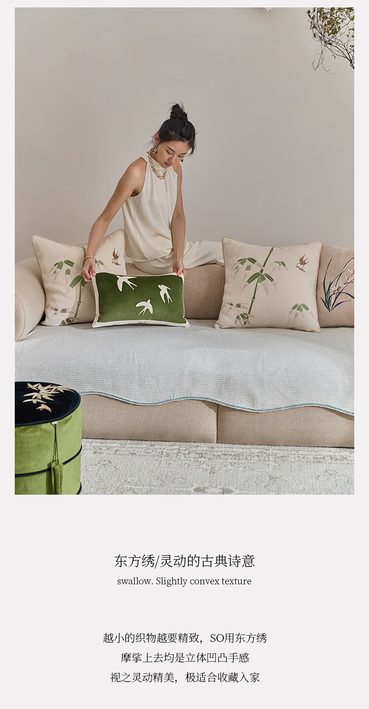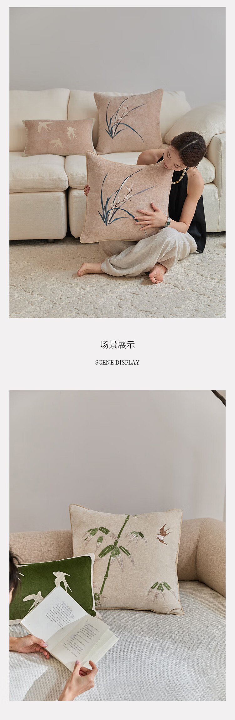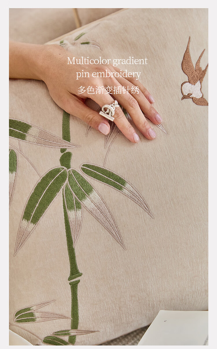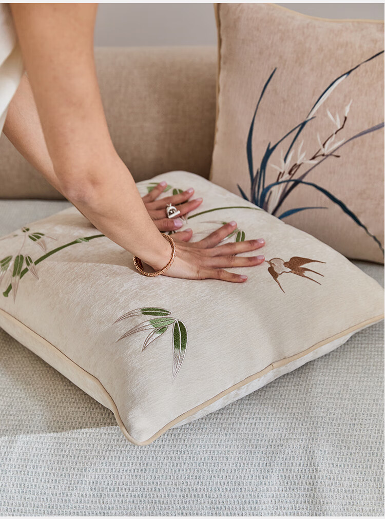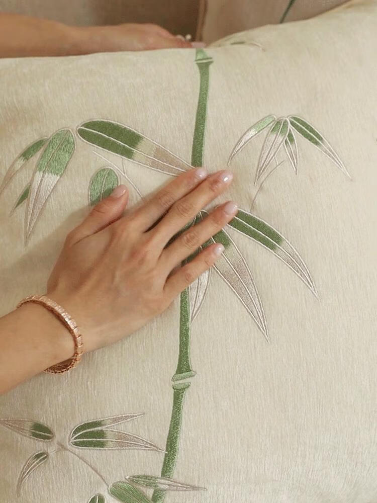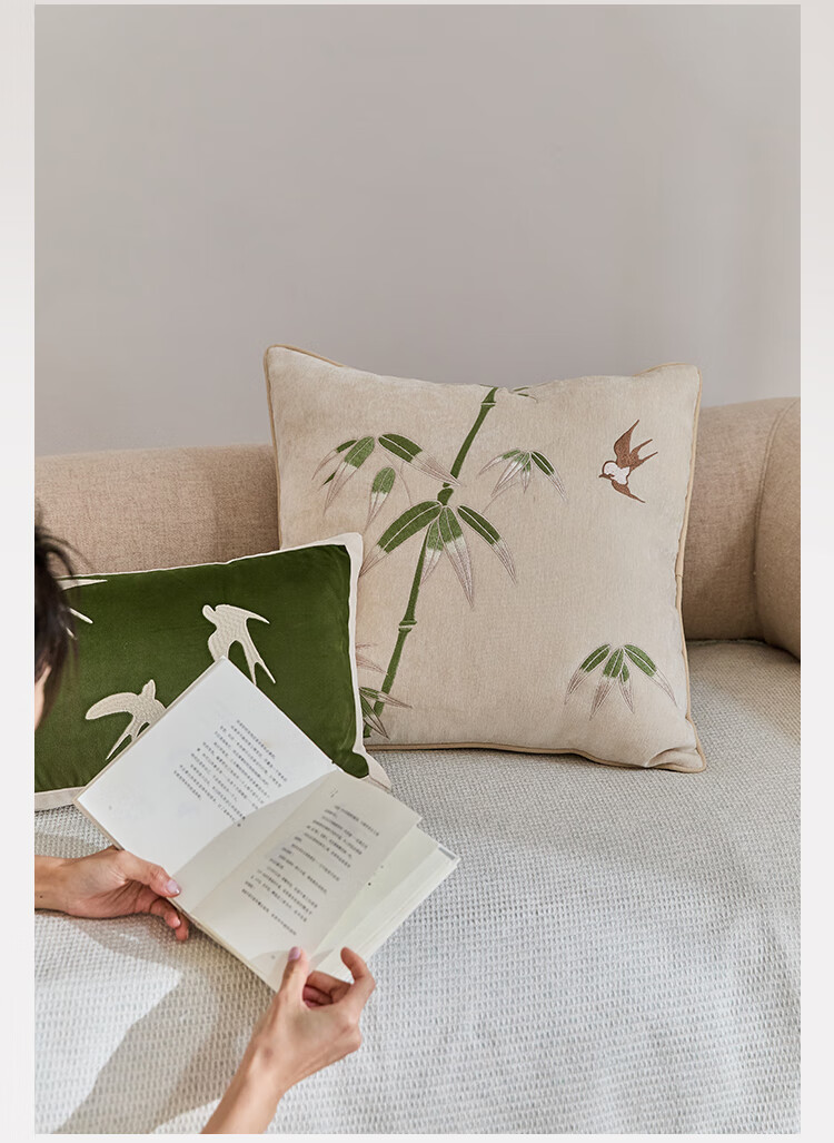 蜡笔派(Nabis)竹影翩鸿抱枕|中式古典|氛围感绣花抱枕客厅沙发靠垫定制 竹影翩鸿-抱枕(碧山色) 45cm*45cm 含枕芯 (含芯)