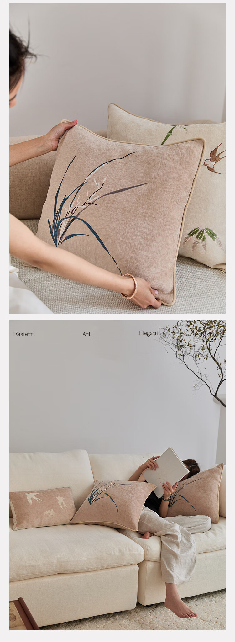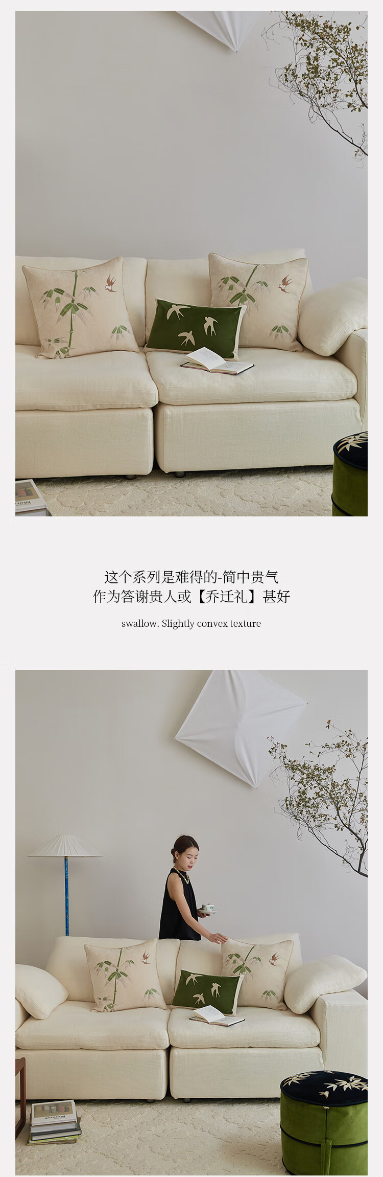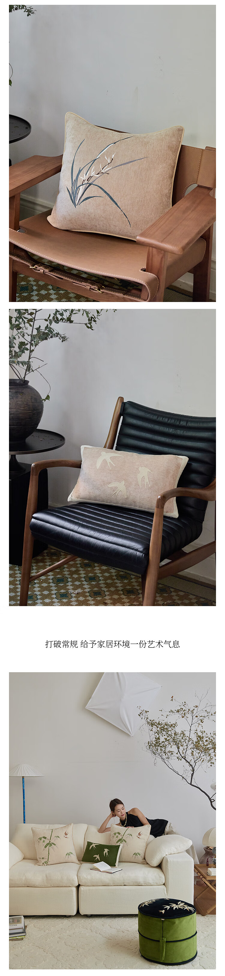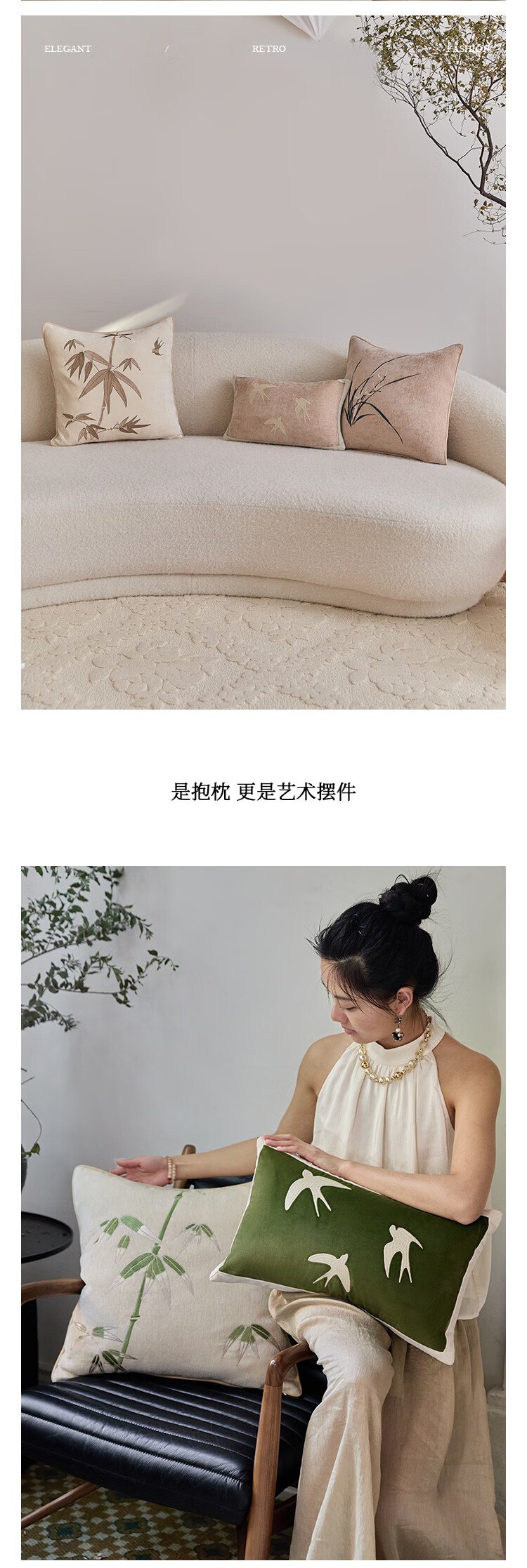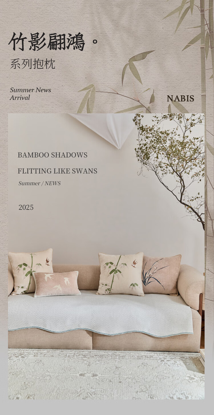 蜡笔派(Nabis)竹影翩鸿抱枕|中式古典|氛围感绣花抱枕客厅沙发靠垫定制 竹影翩鸿-抱枕(碧山色) 45cm*45cm 含枕芯 (含芯)