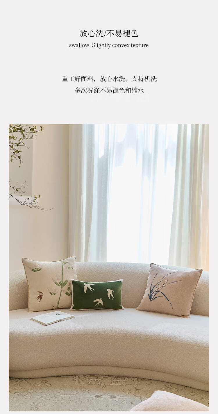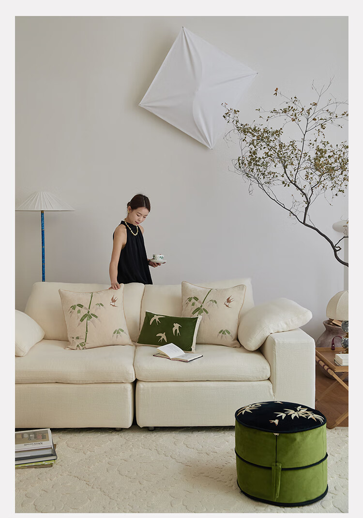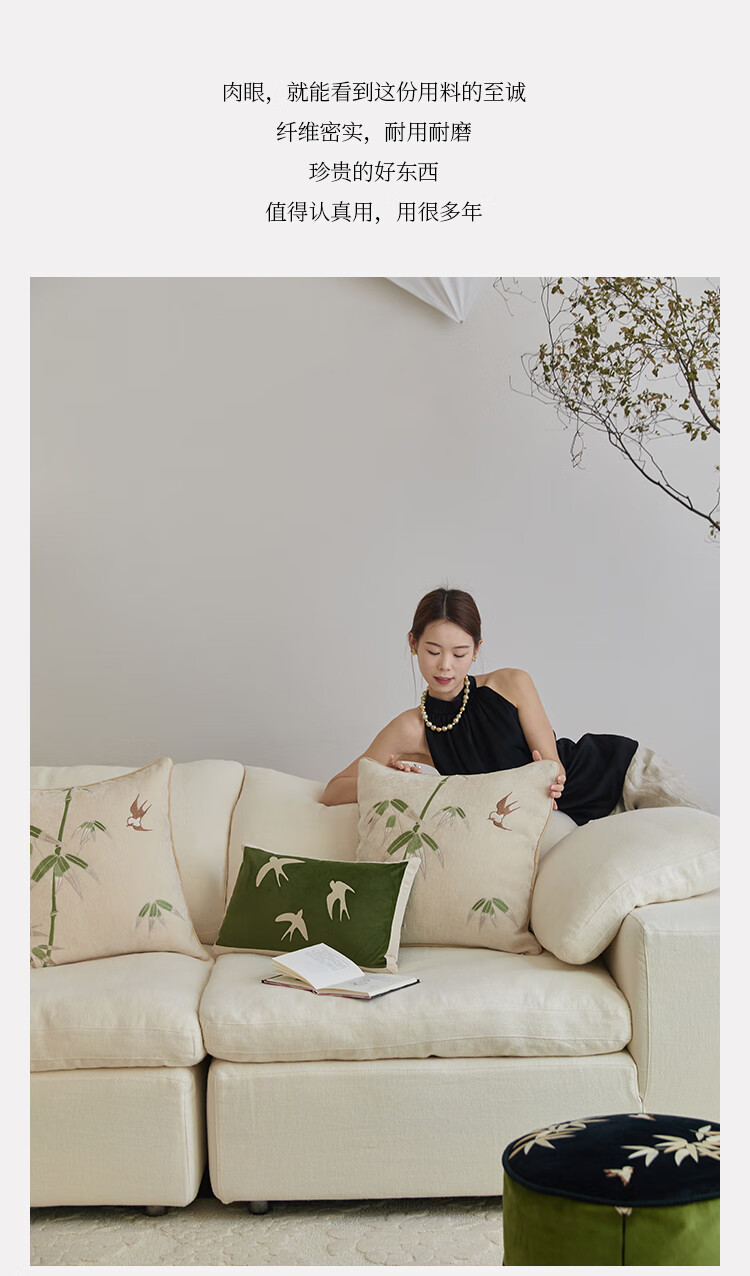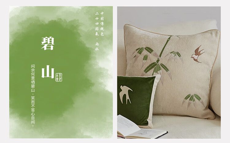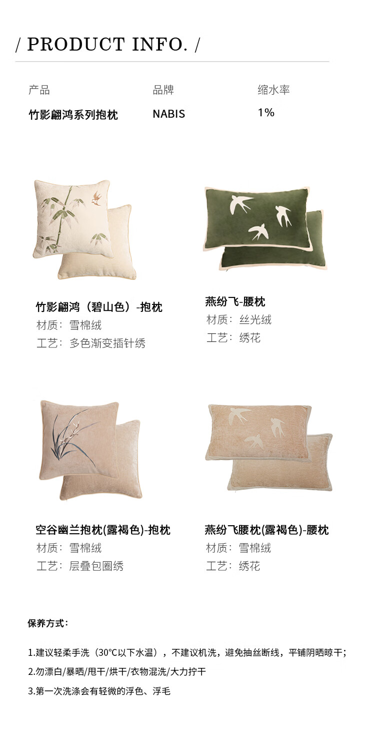 蜡笔派(Nabis)竹影翩鸿抱枕|中式古典|氛围感绣花抱枕客厅沙发靠垫定制 竹影翩鸿-抱枕(碧山色) 45cm*45cm 含枕芯 (含芯)