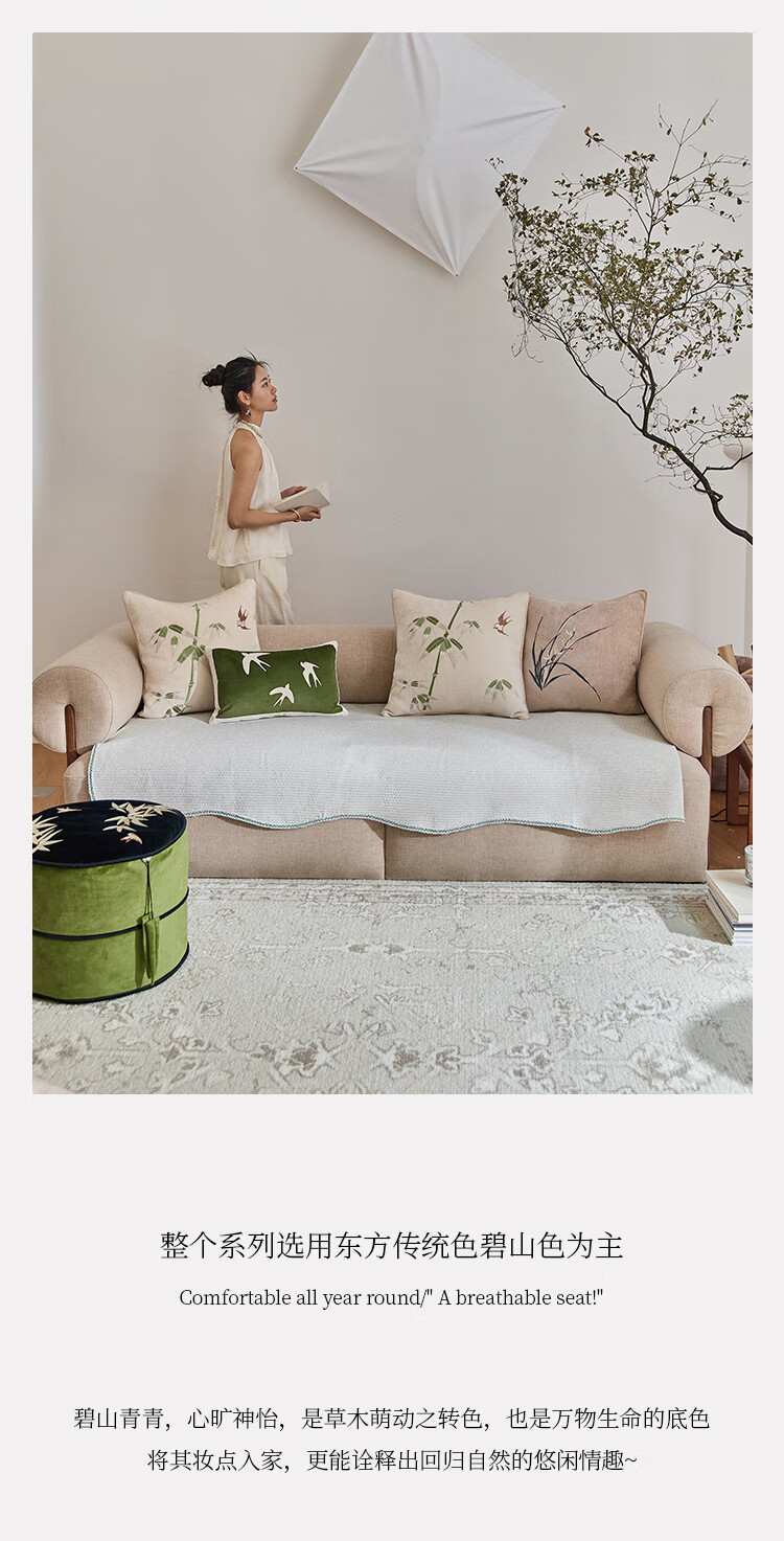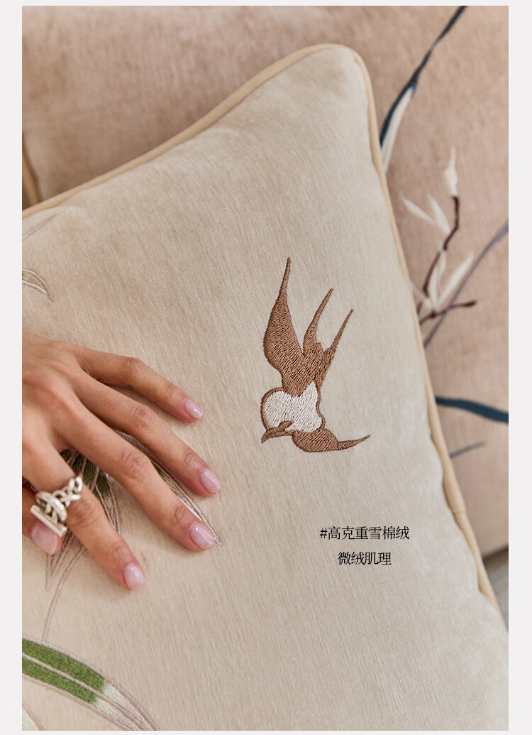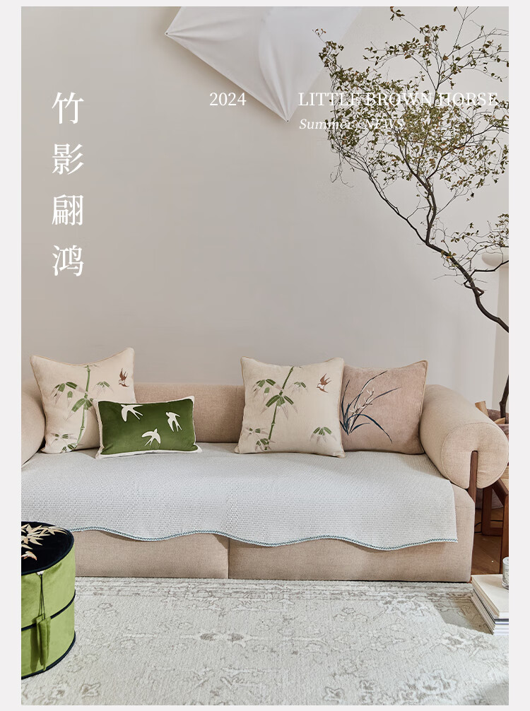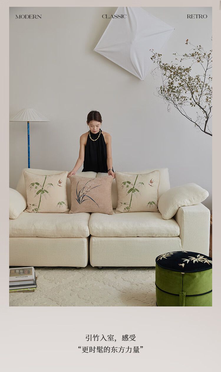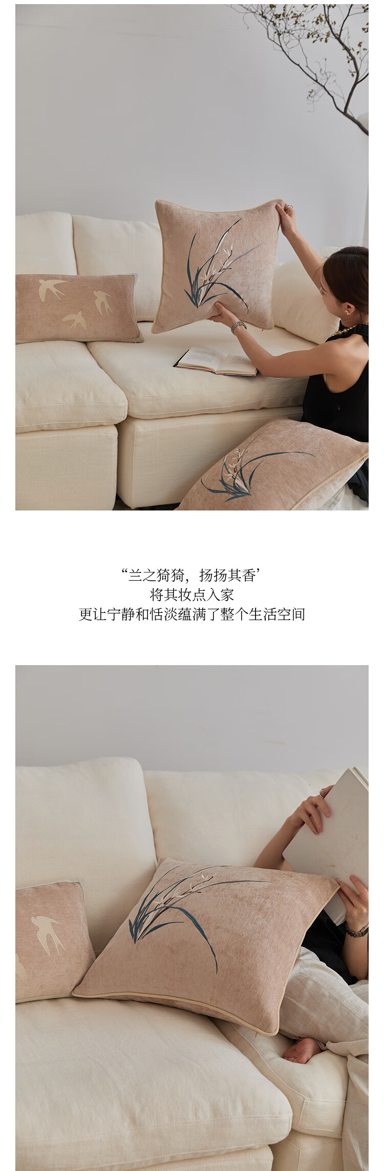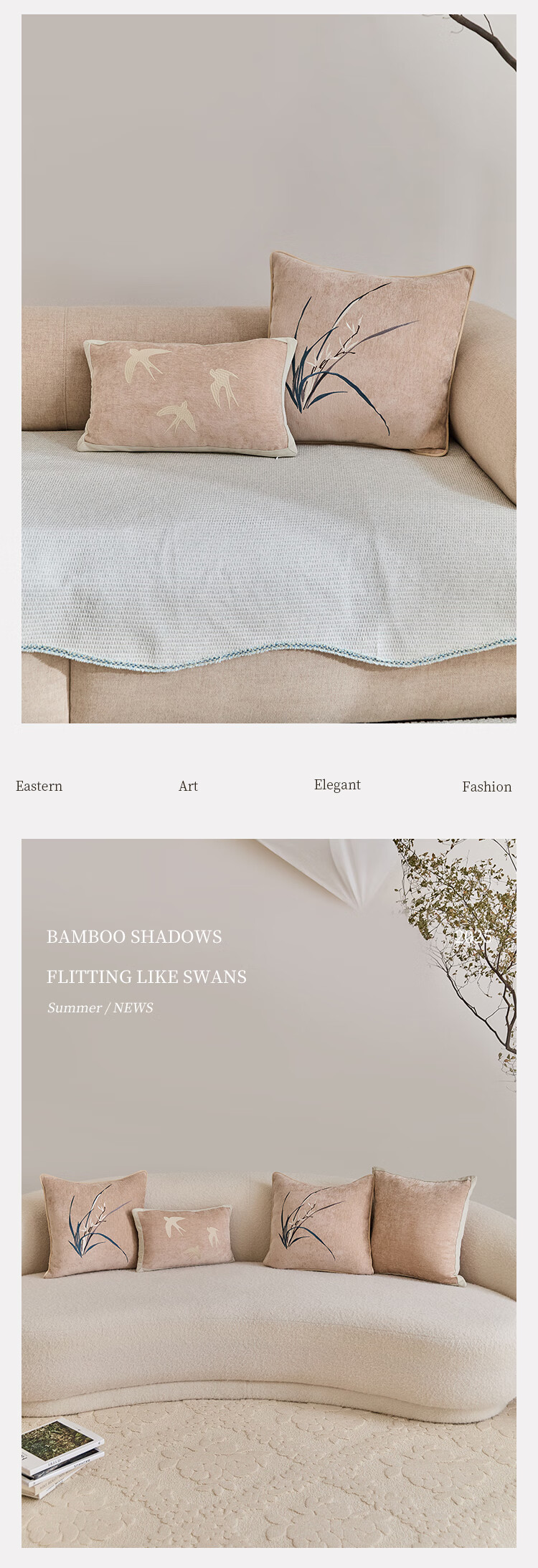 蜡笔派(Nabis)竹影翩鸿抱枕|中式古典|氛围感绣花抱枕客厅沙发靠垫定制 竹影翩鸿-抱枕(碧山色) 45cm*45cm 含枕芯 (含芯)