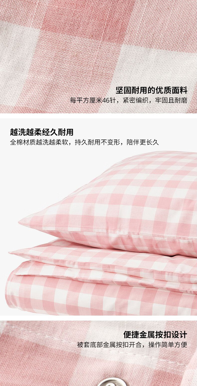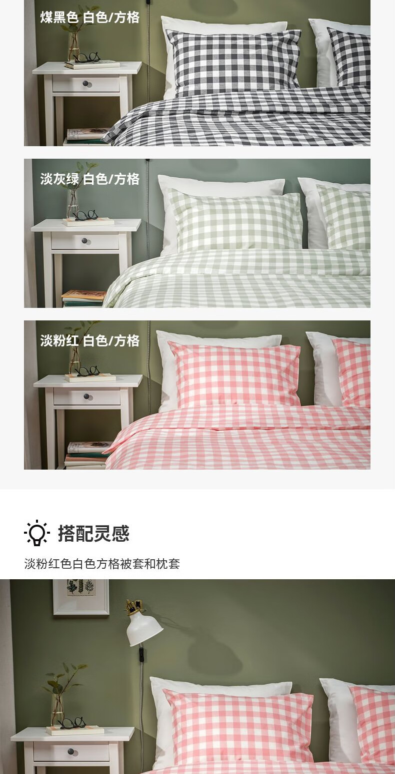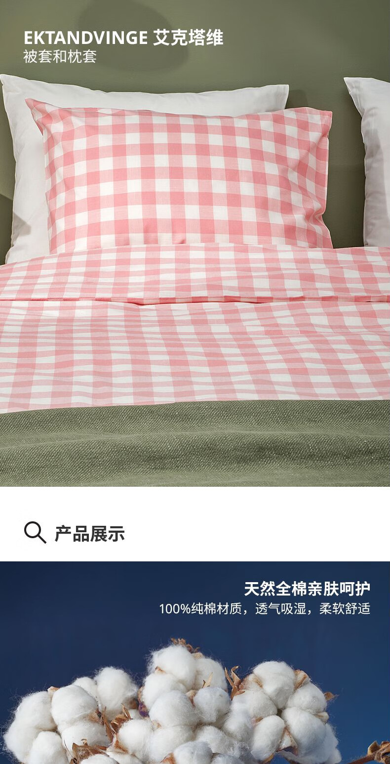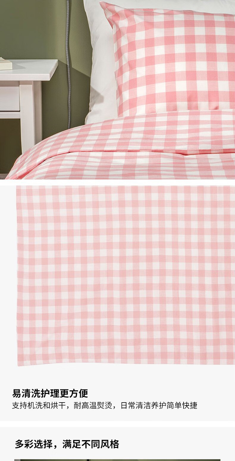 宜家(IKEA)【新品】EKTANDVINGE艾克塔维被套枕套多件套床上用品 淡粉红白方格被套和2枕套200X230cm