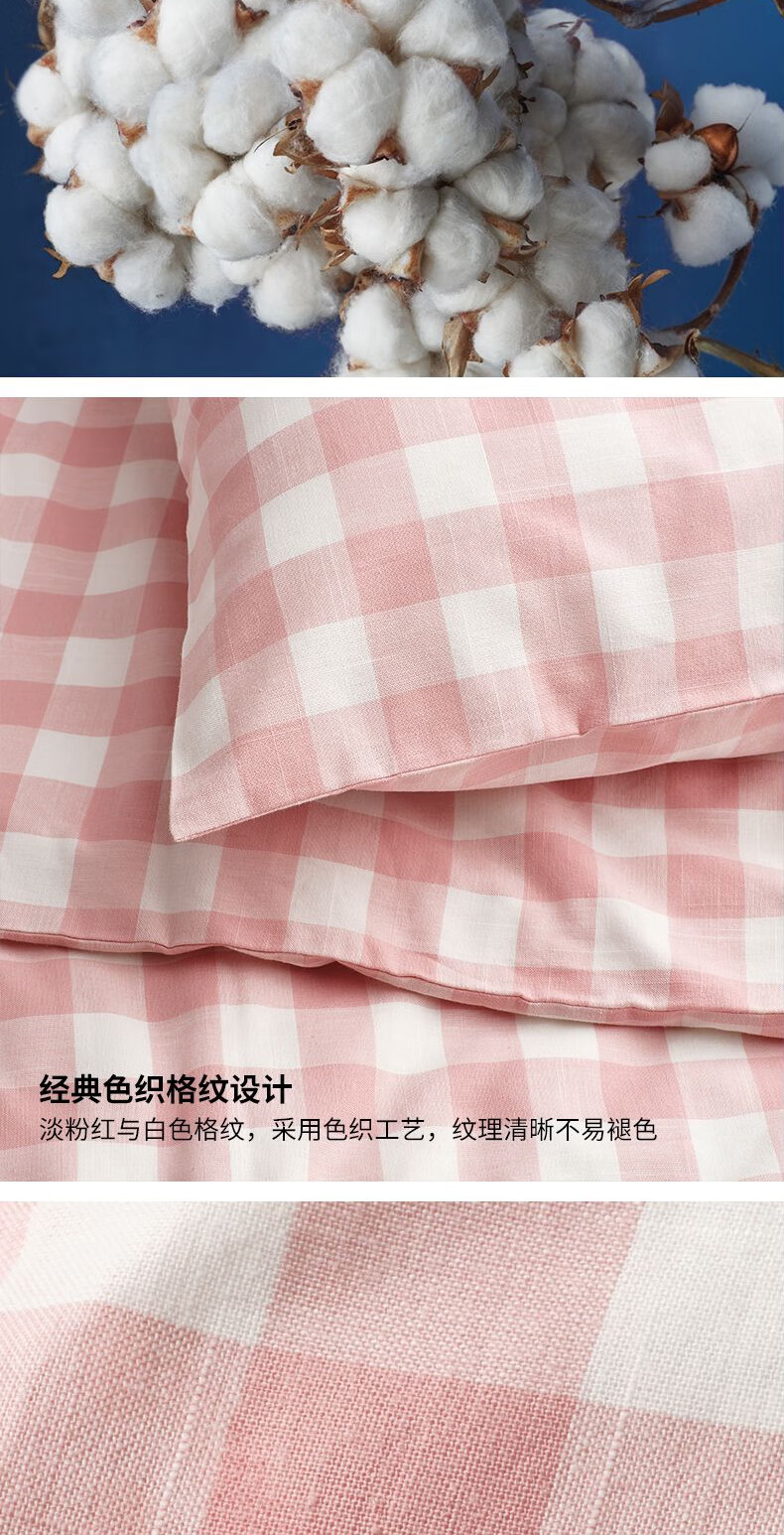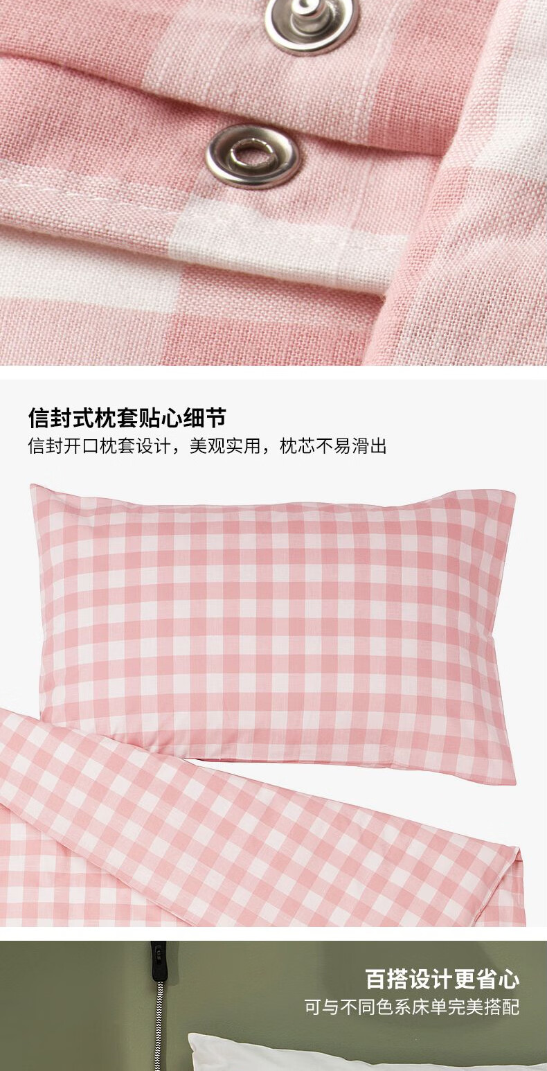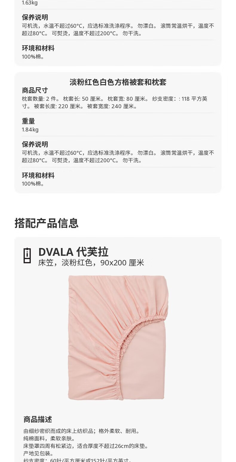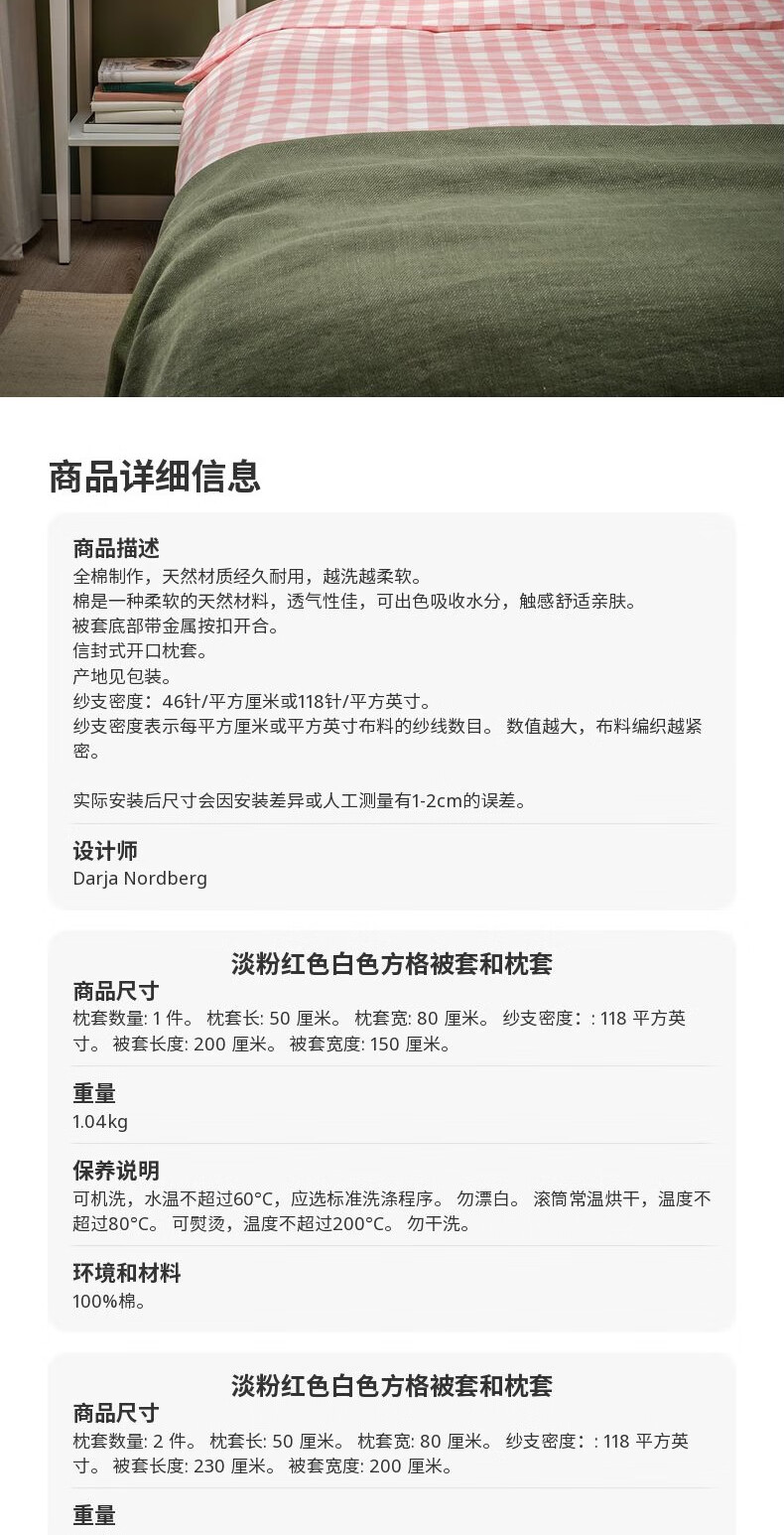 宜家(IKEA)【新品】EKTANDVINGE艾克塔维被套枕套多件套床上用品 淡粉红白方格被套和2枕套200X230cm