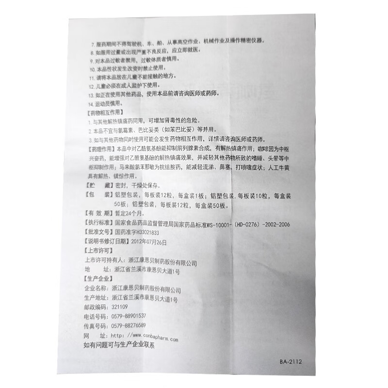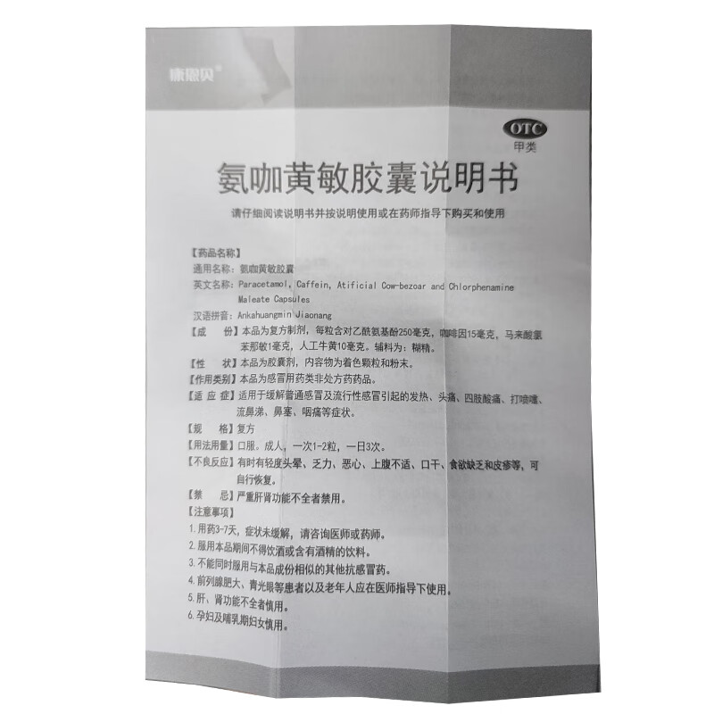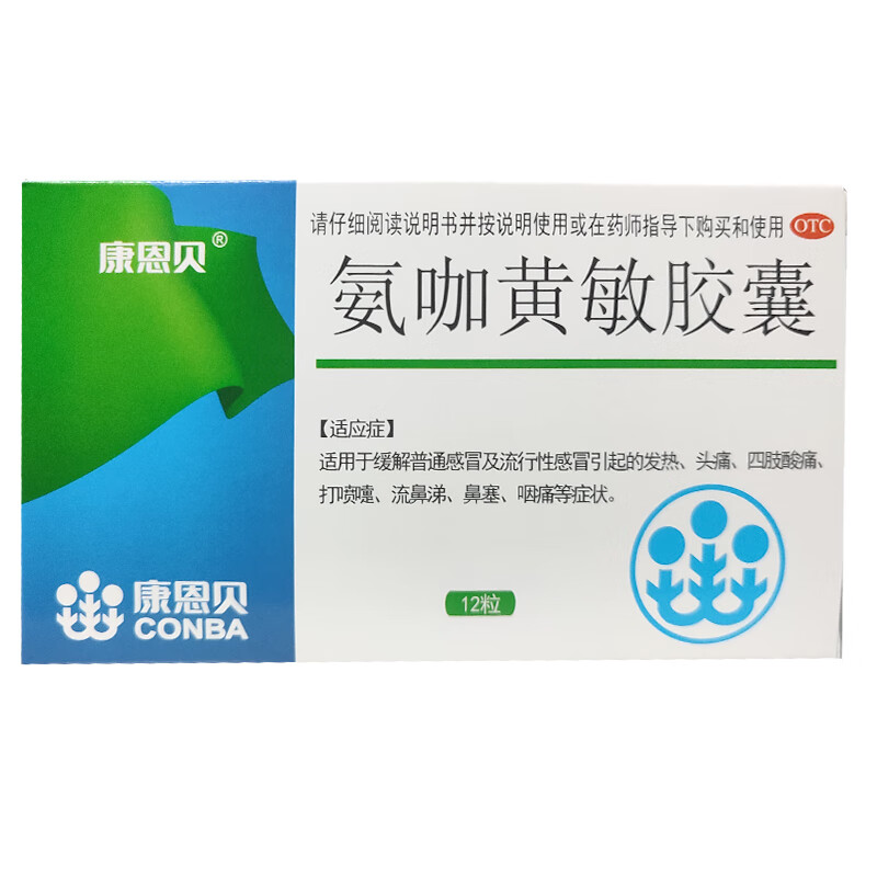 康恩贝 氨咖黄敏胶囊 12粒/盒 流行性感冒 发热 头痛 四肢酸痛 打喷嚏 流鼻涕 鼻塞 咽痛