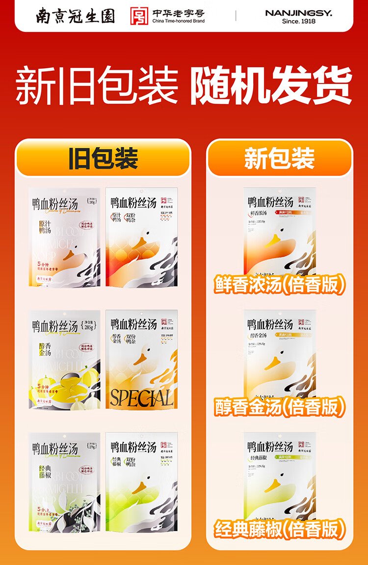 园南京冠生园鲜香浓汤鸭血粉丝汤全新升级加量方便速食米线米粉 金陵美食鸭血粉丝4盒装
