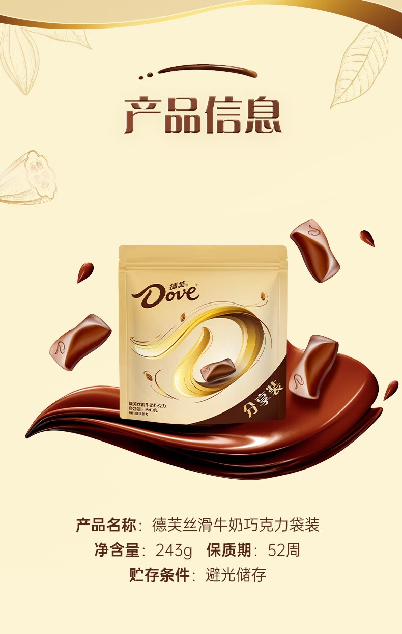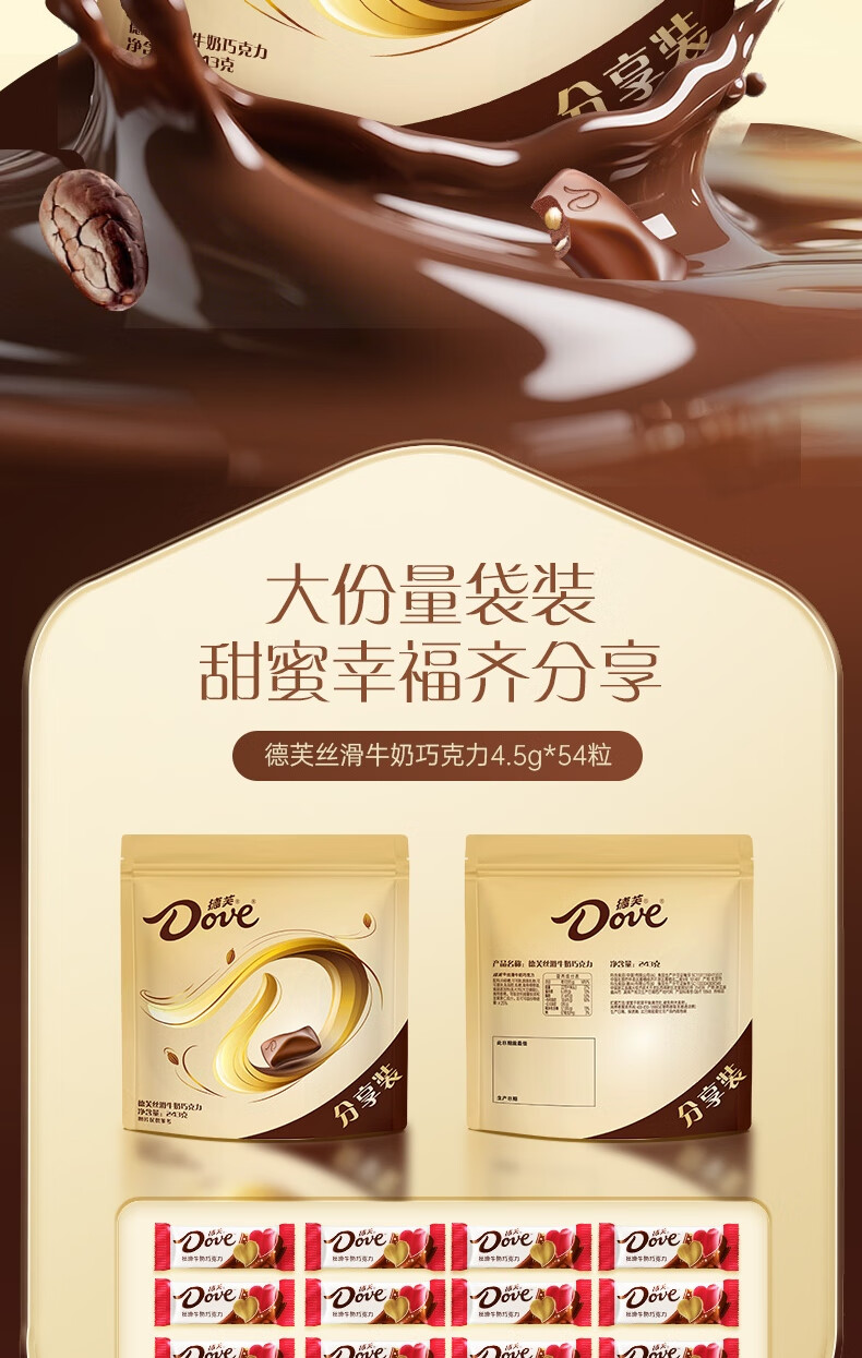 德芙 丝滑牛奶巧克力 分享装243g 休闲儿童零食 糖果 生日礼物 送礼