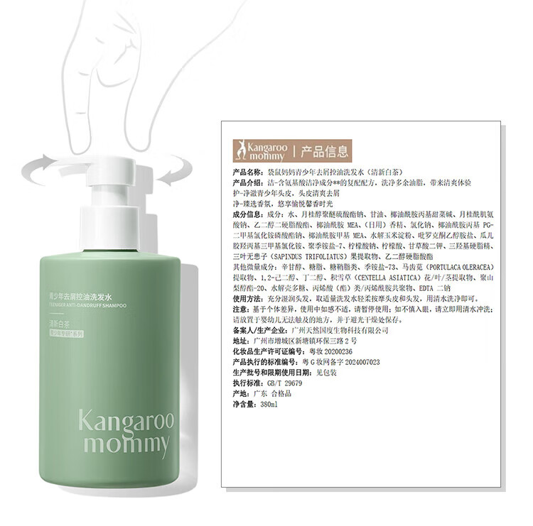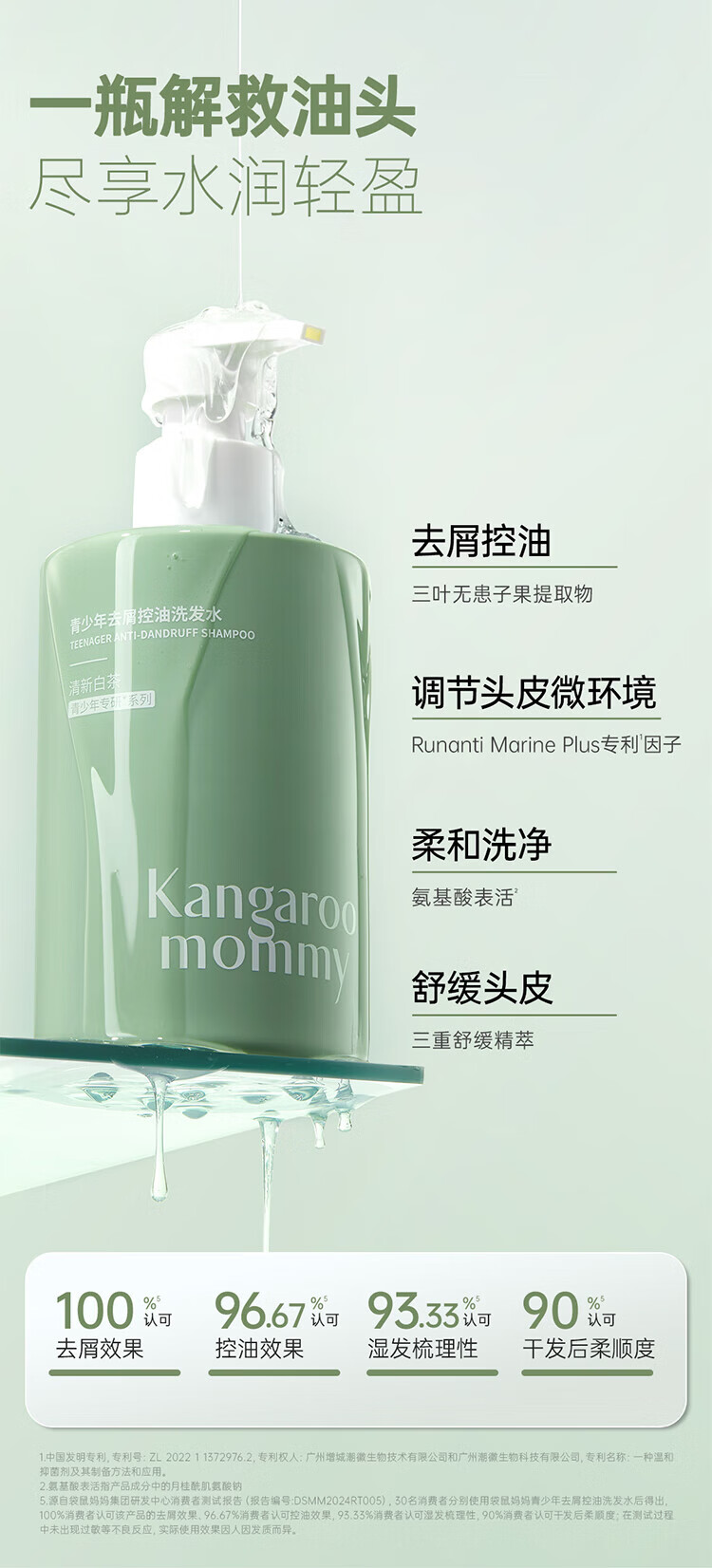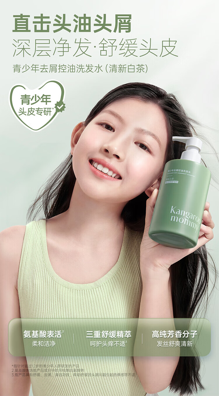 袋鼠妈妈青少年洗发水去屑控油清爽蓬松柔顺修护洗发露男女孩学生洗护套装 【囤货装】去屑洗发水3瓶大容量
