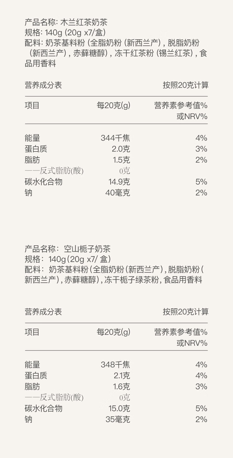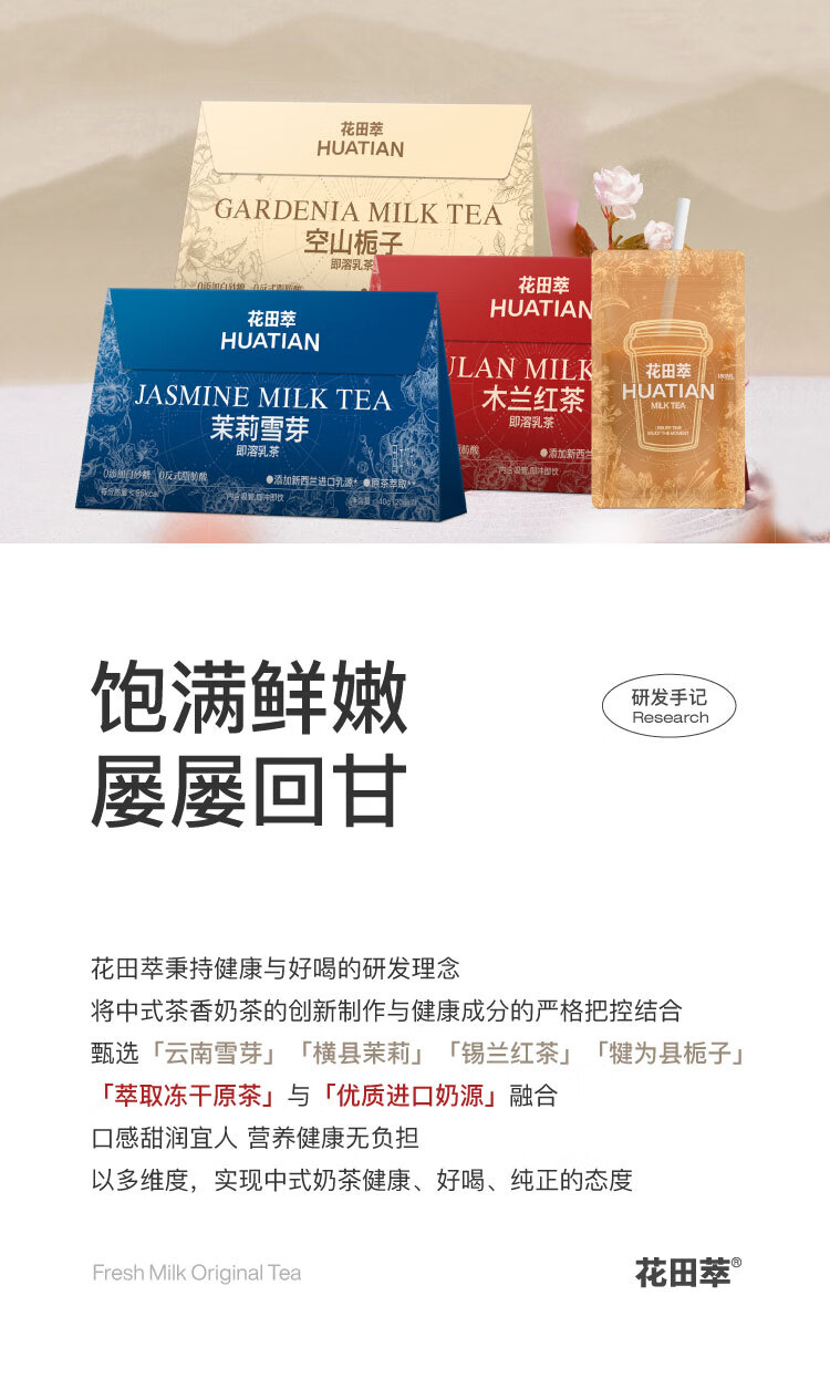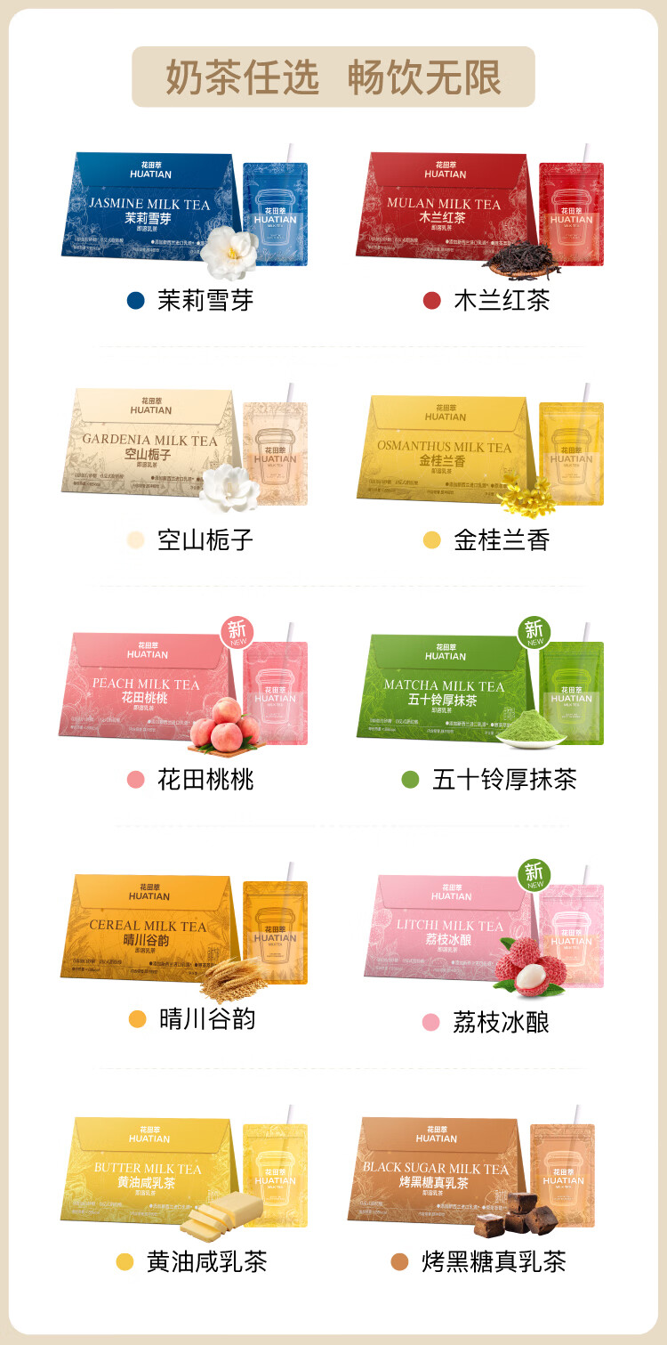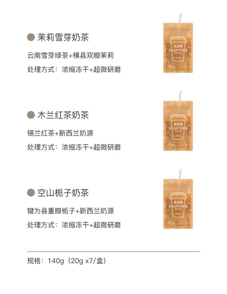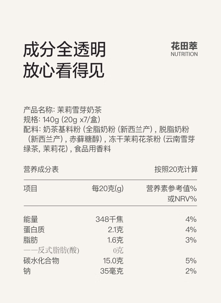 花田萃(CHALATTE)茉莉雪芽奶茶粉茶姬新中式即溶袋泡牛乳茶 20g*7袋
