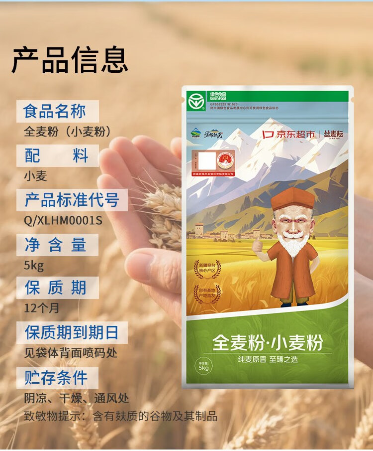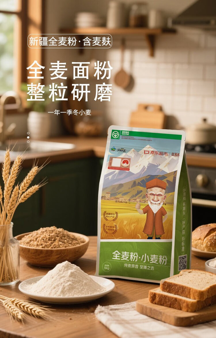 丝麦耘面粉【京东基地】全麦粉10斤新疆面粉纯粗粮含麦麸麦芯 绿色食品