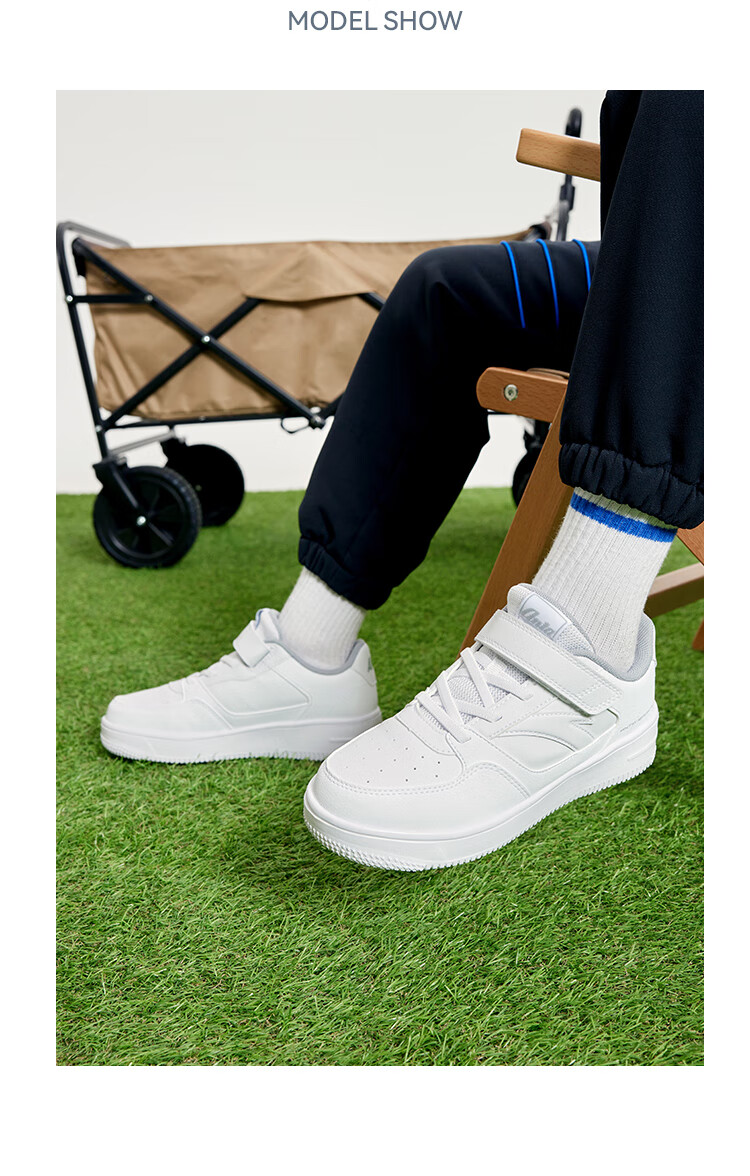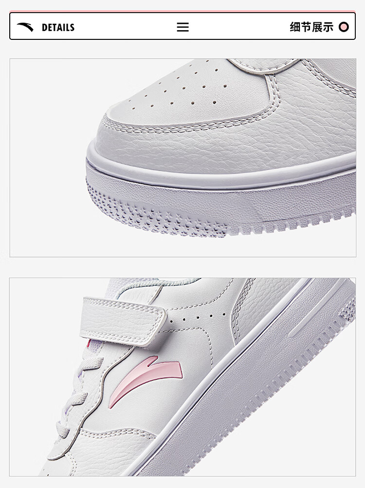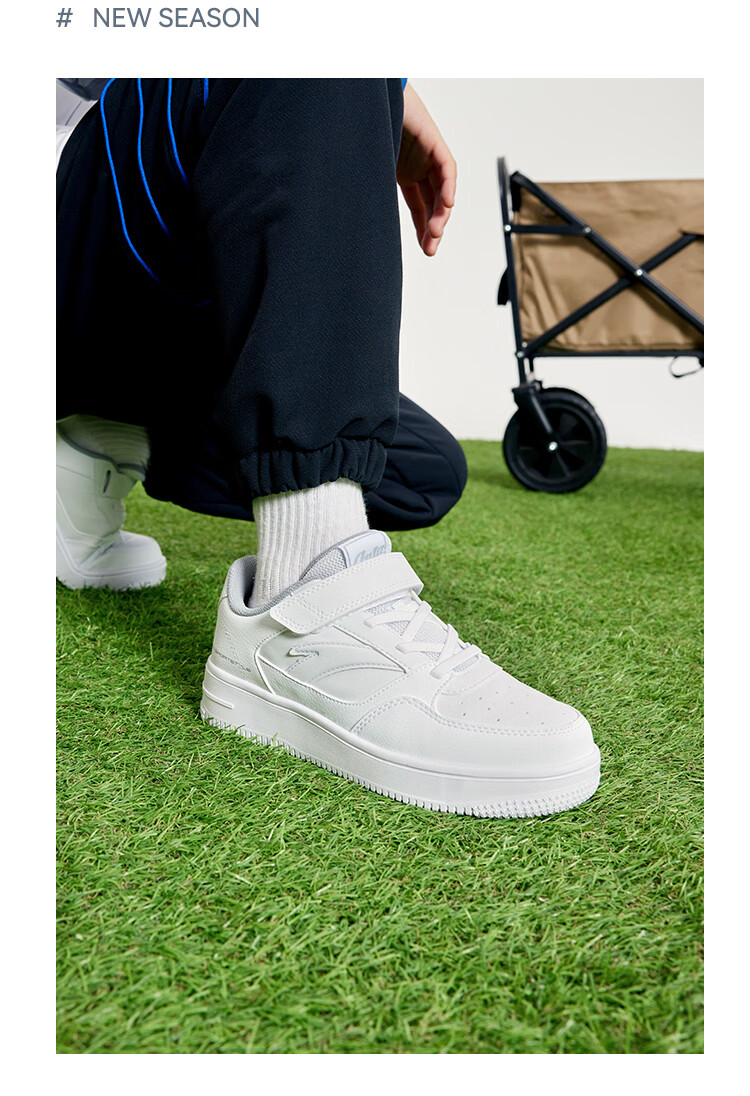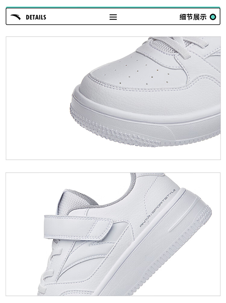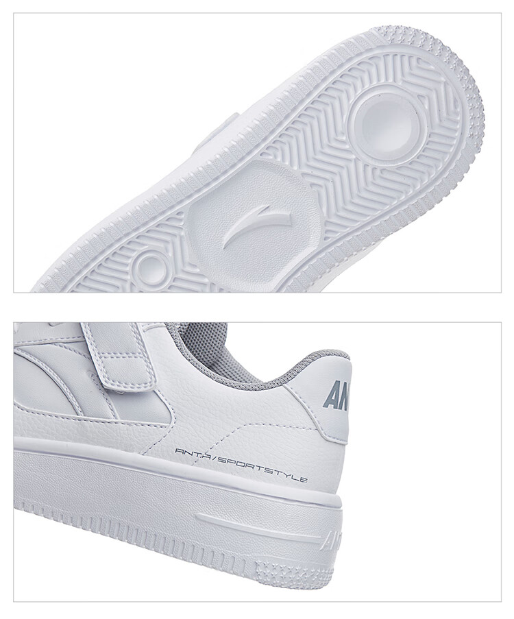 安踏儿童运动鞋女大童魔术贴校园小白鞋低帮板鞋A332338063J