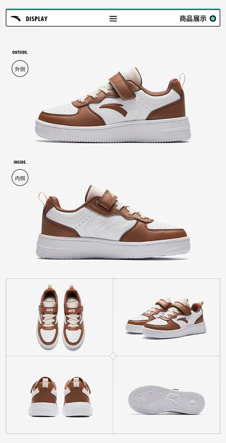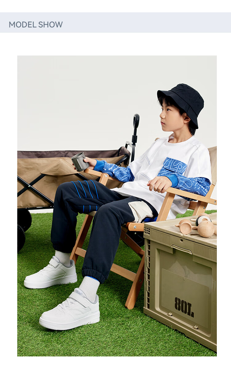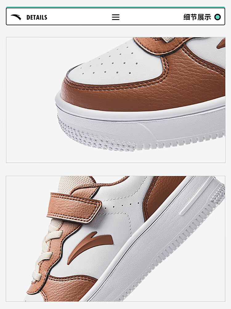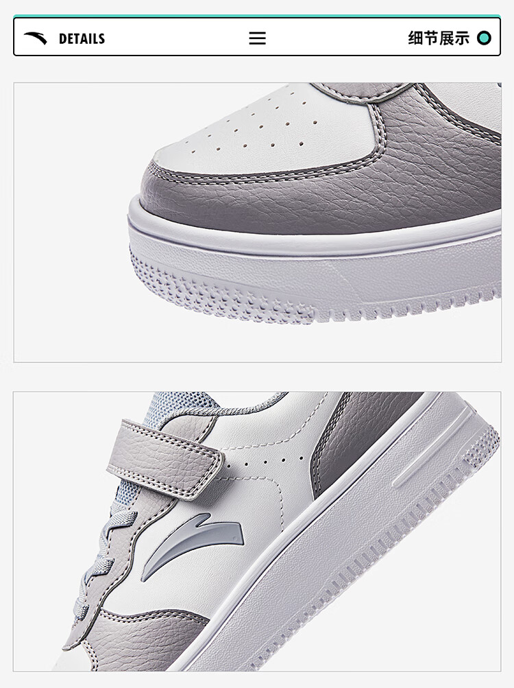 安踏儿童运动鞋女大童魔术贴校园小白鞋低帮板鞋A332338063J