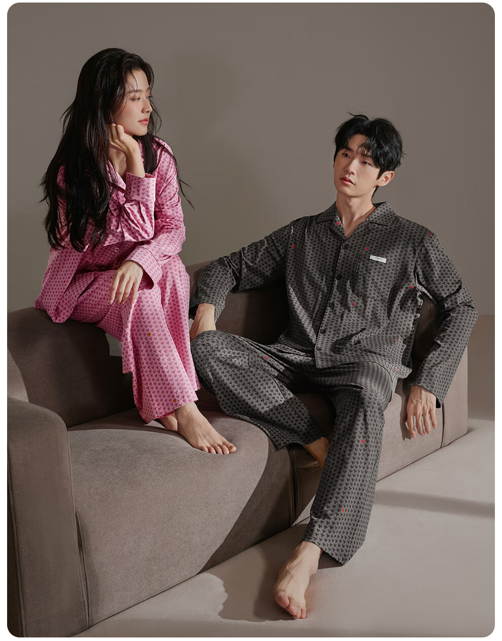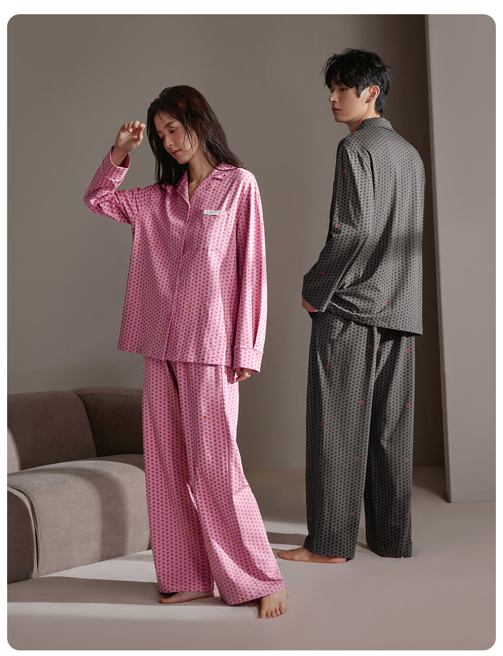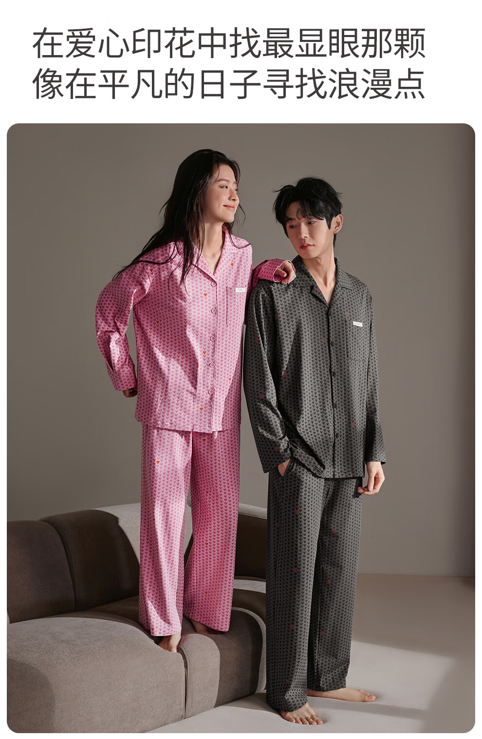 静韵超柔软爱心情侣睡衣女春秋季款棉长袖套装男士软棉棉家居服