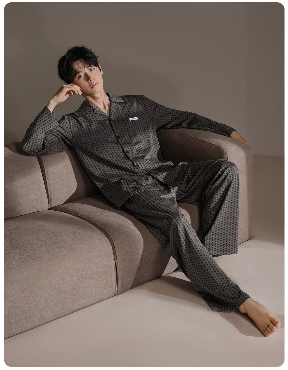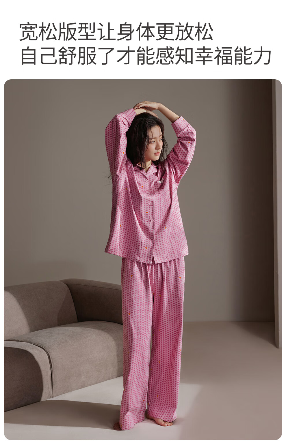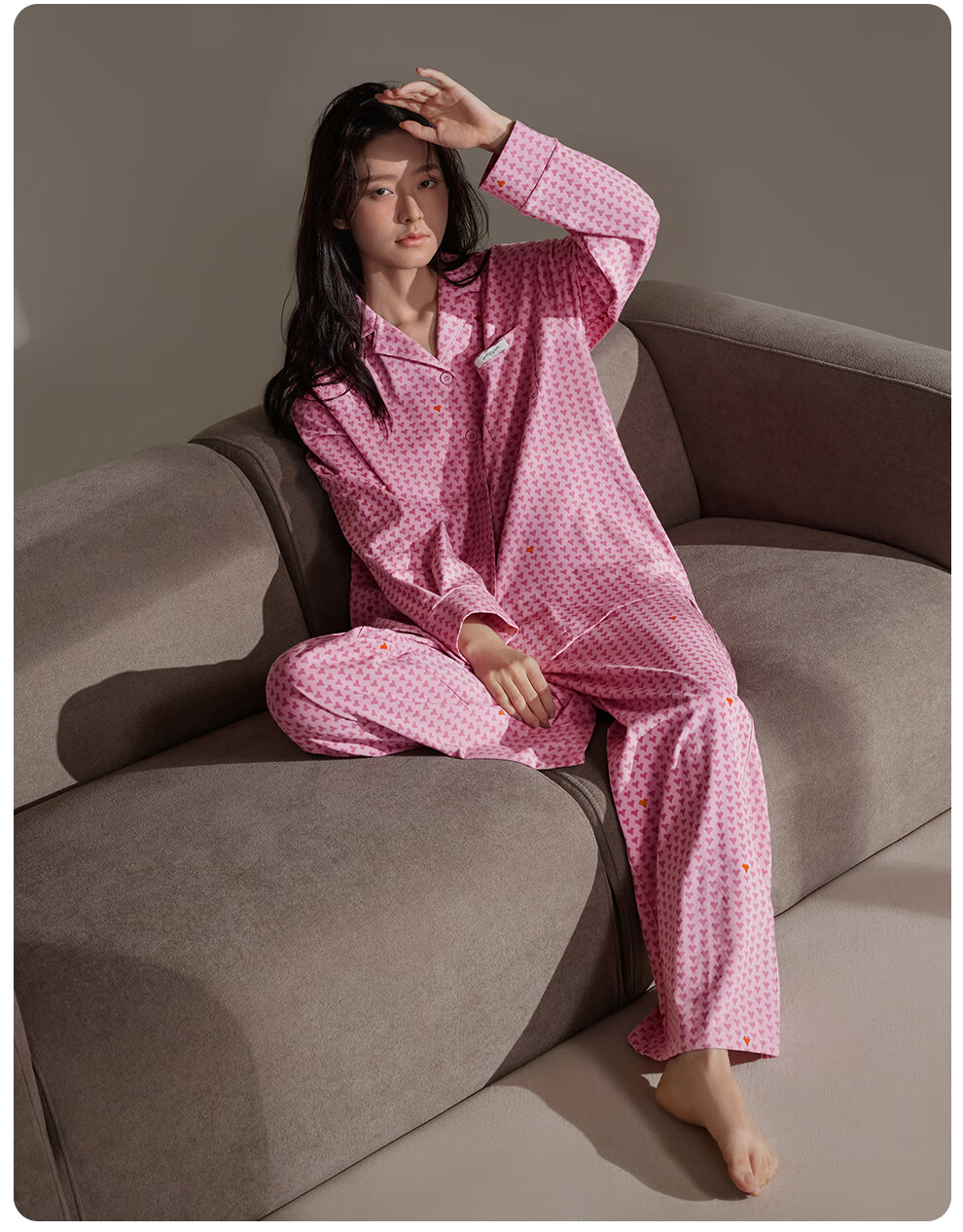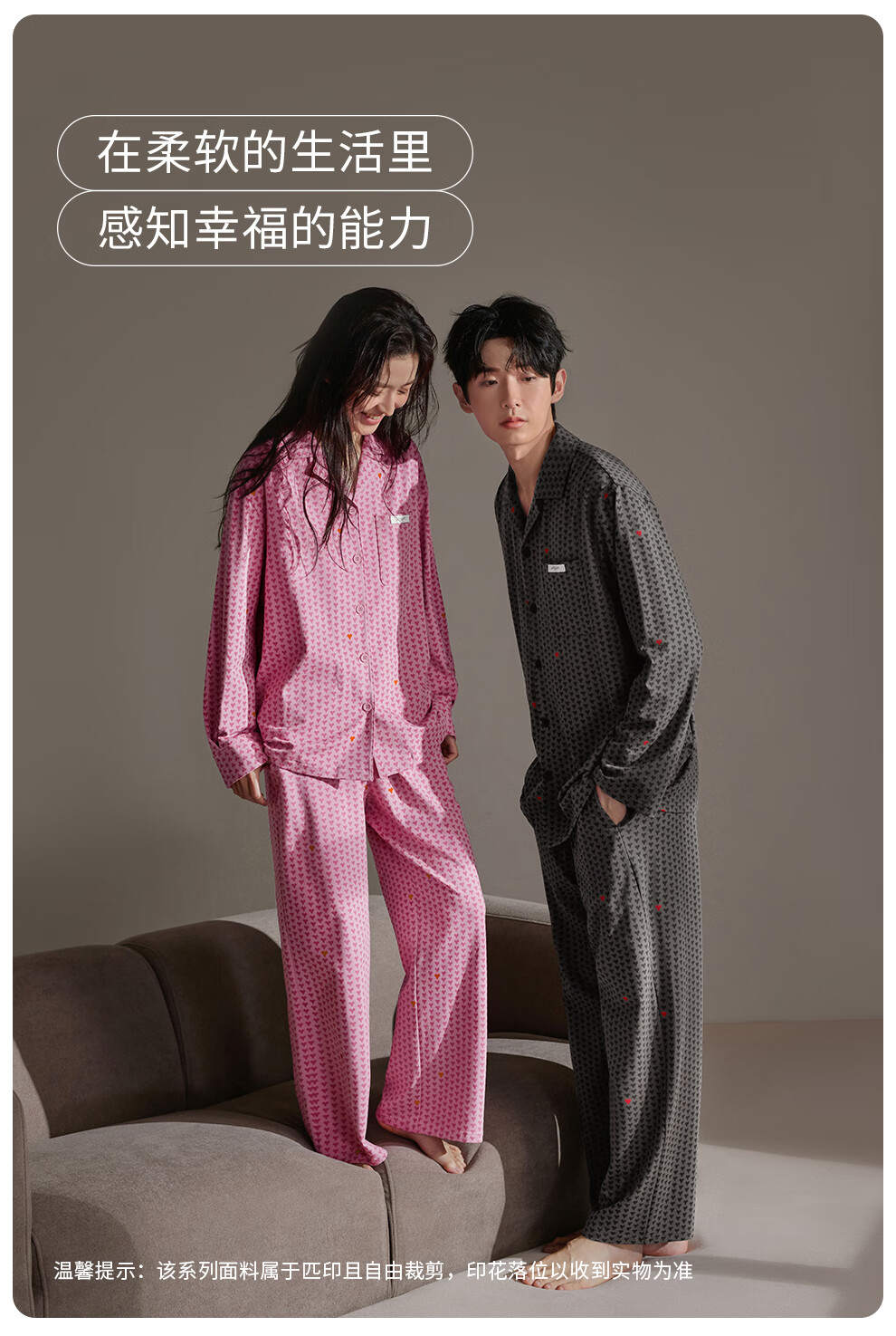 静韵超柔软爱心情侣睡衣女春秋季款棉长袖套装男士软棉棉家居服