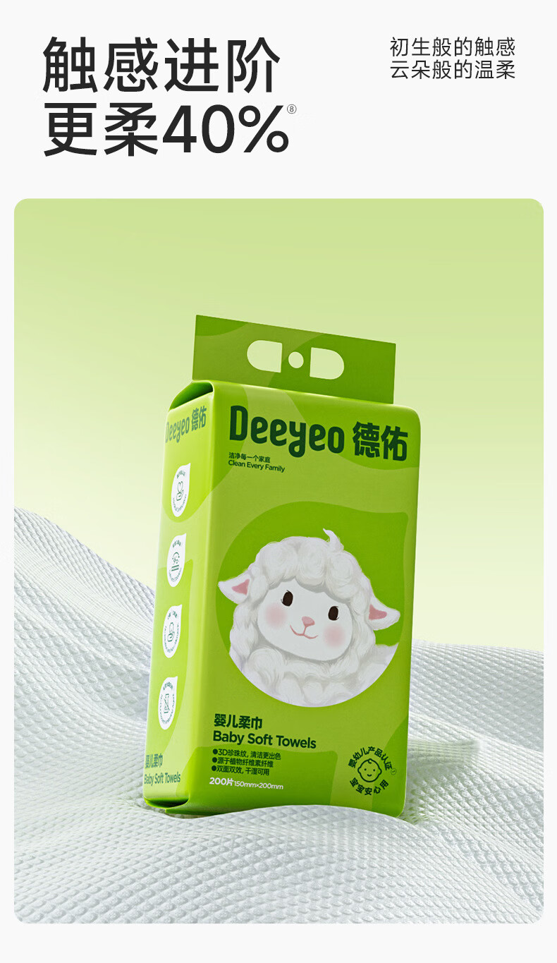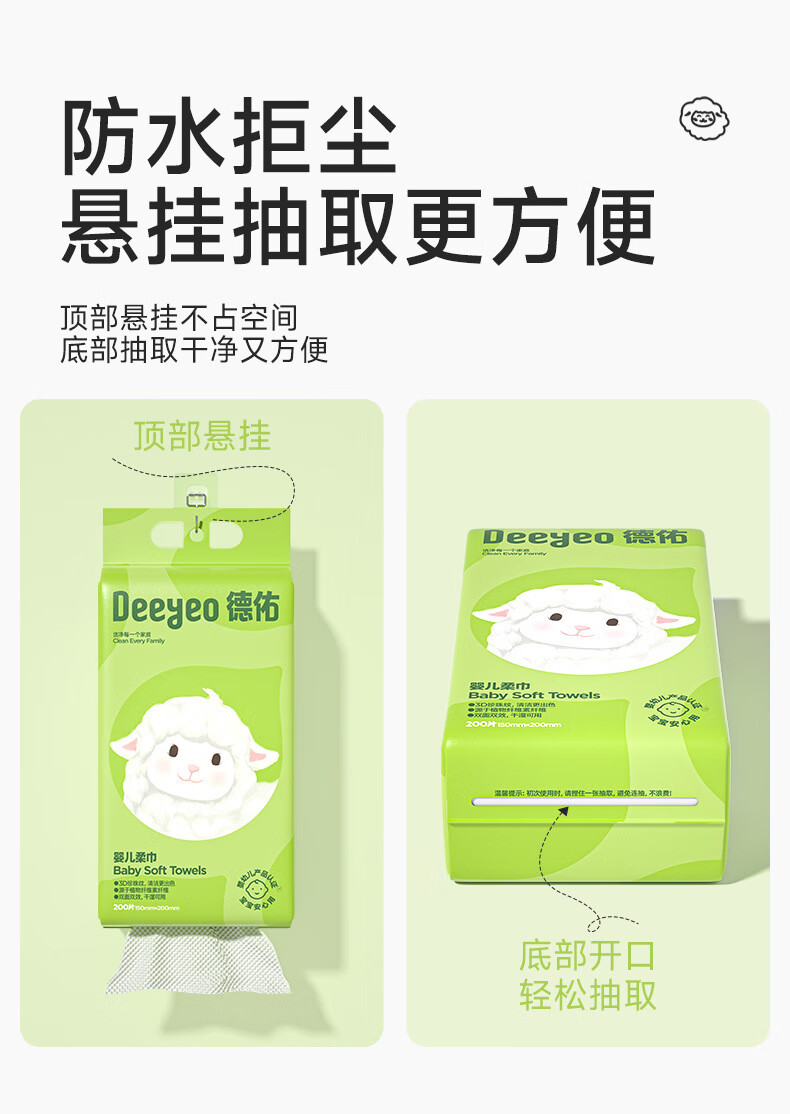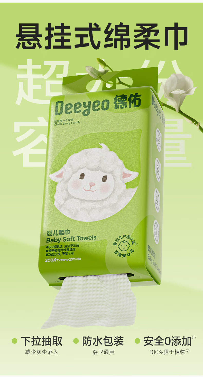 德佑悬挂洗脸巾加厚款洗脸巾一次性洁面巾200抽多规格绵柔巾 萌萌羊悬挂式洗脸巾200片*4包