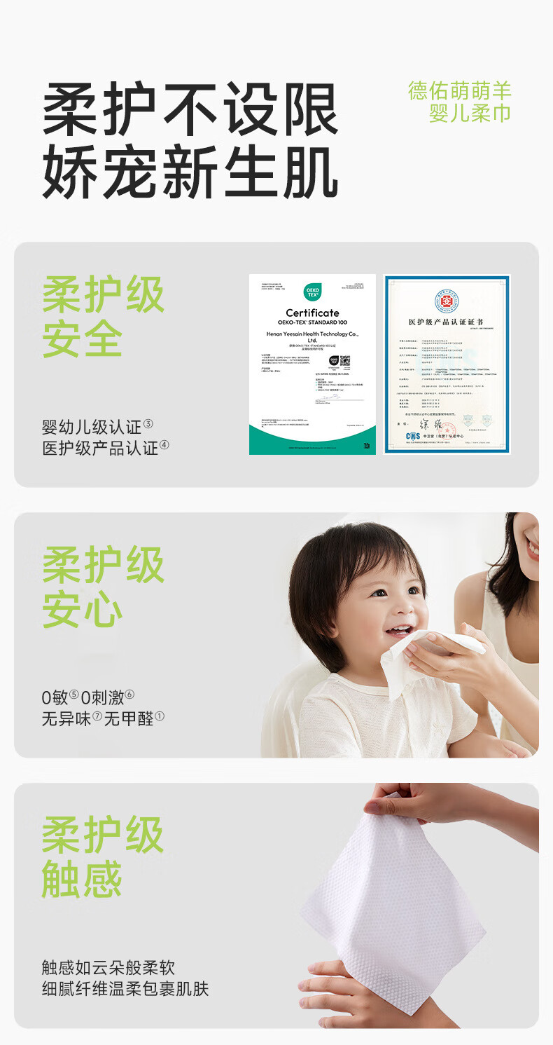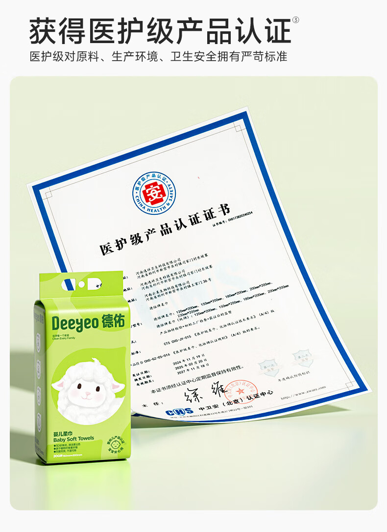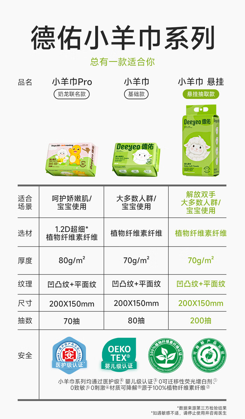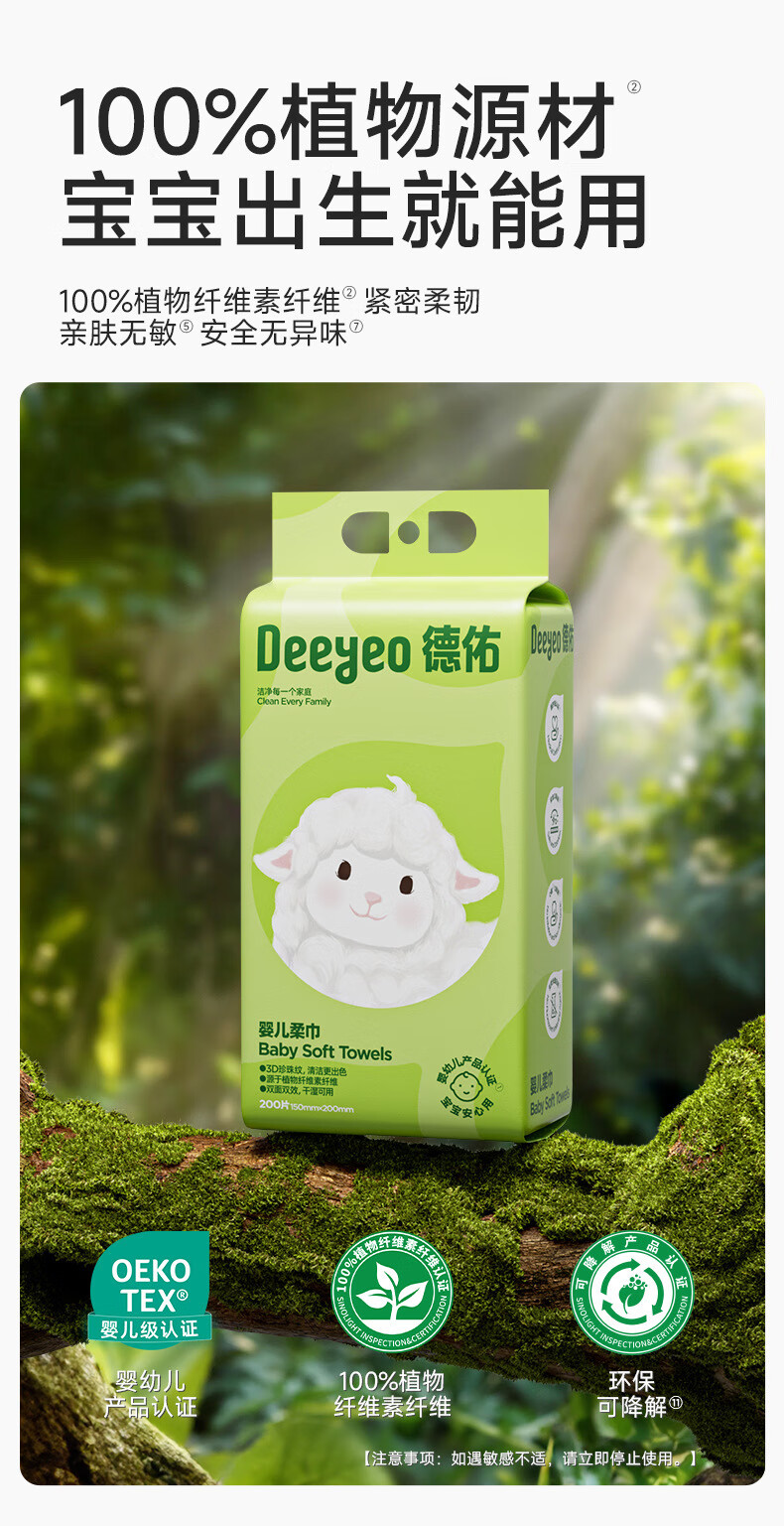 德佑悬挂洗脸巾加厚款洗脸巾一次性洁面巾200抽多规格绵柔巾 萌萌羊悬挂式洗脸巾200片*4包