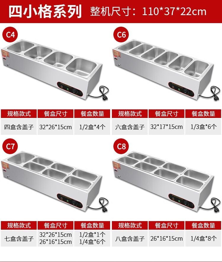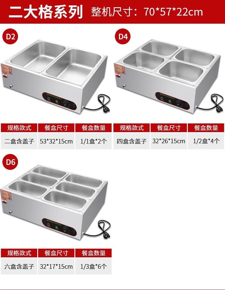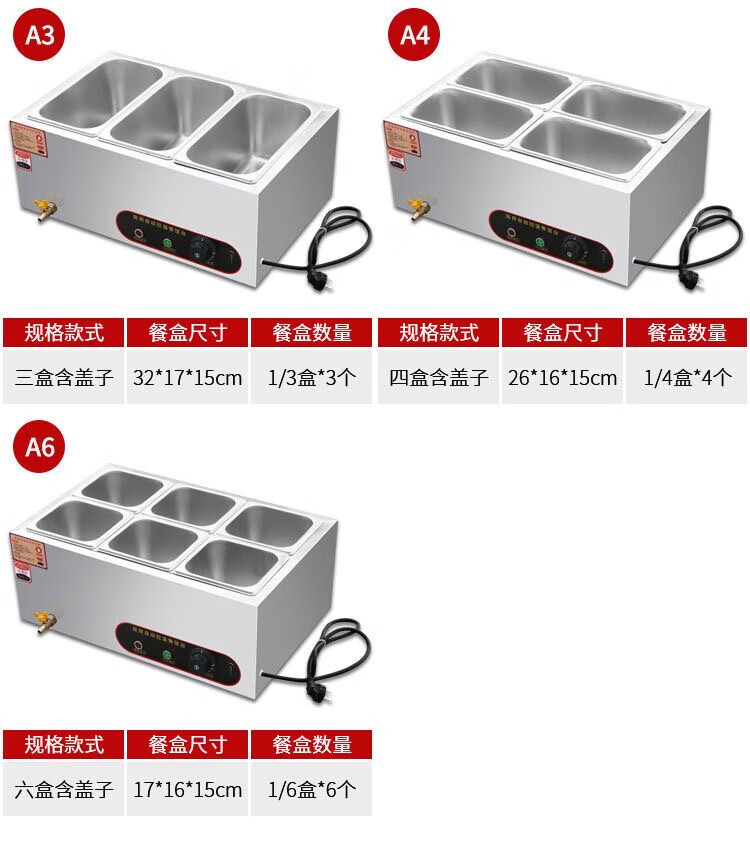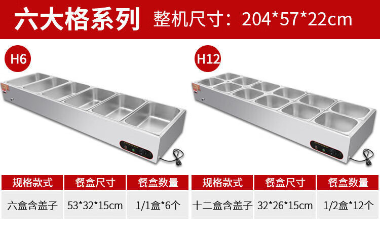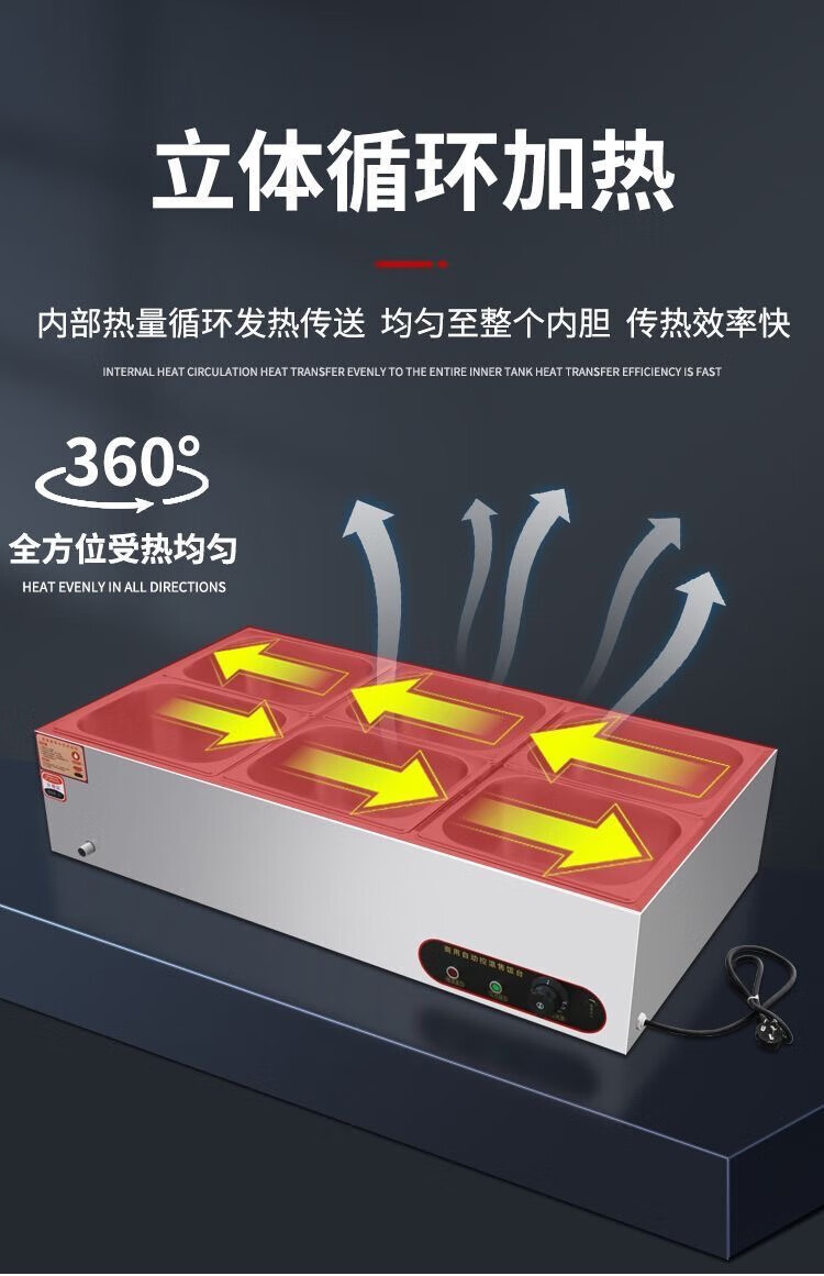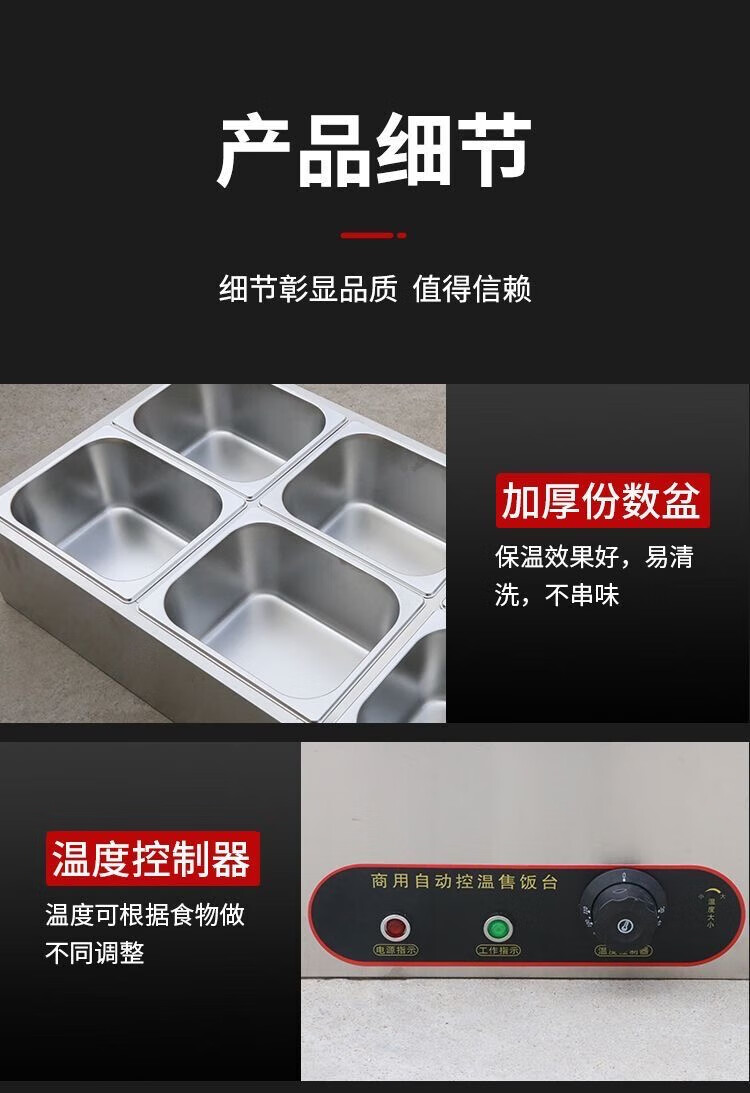 欧芬莱商用快餐保温台加热控温不锈钢台式保温售饭台食堂自助热菜打菜台 A6六盒(带盒带盖加厚款)
