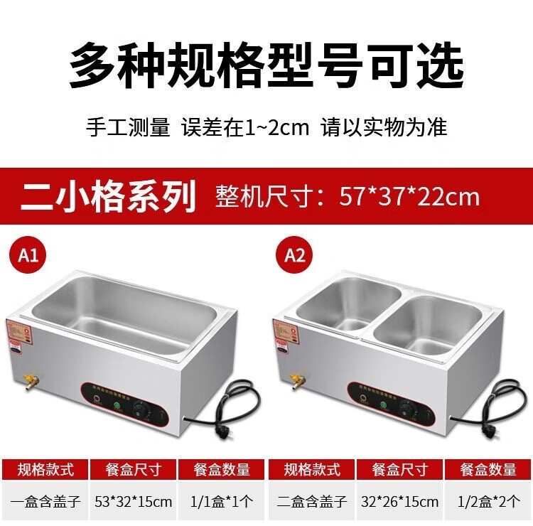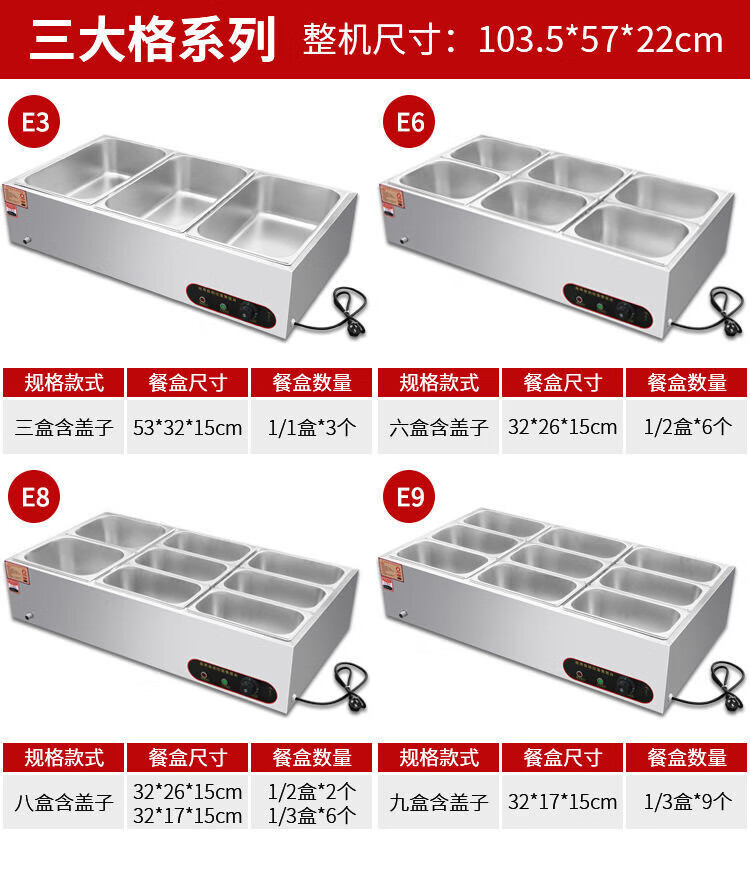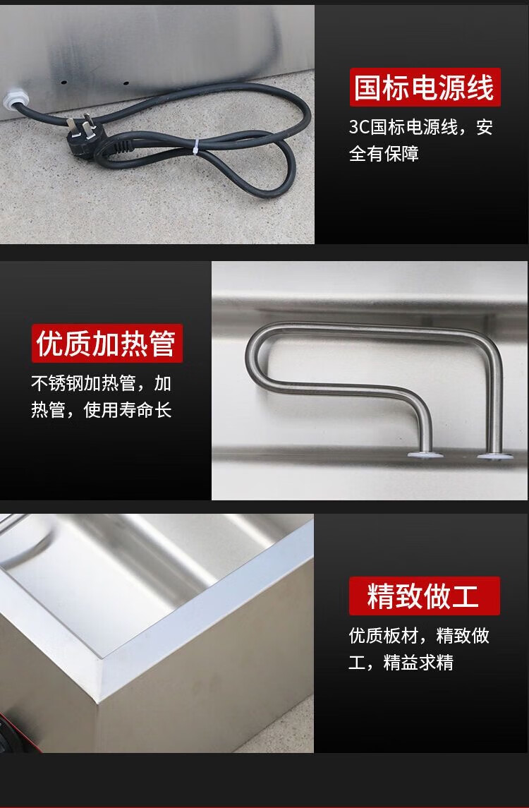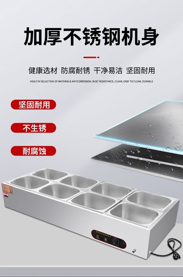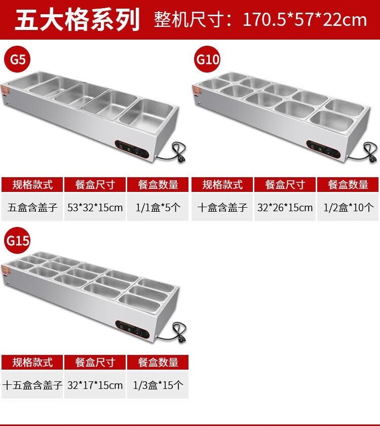 欧芬莱商用快餐保温台加热控温不锈钢台式保温售饭台食堂自助热菜打菜台 A6六盒(带盒带盖加厚款)