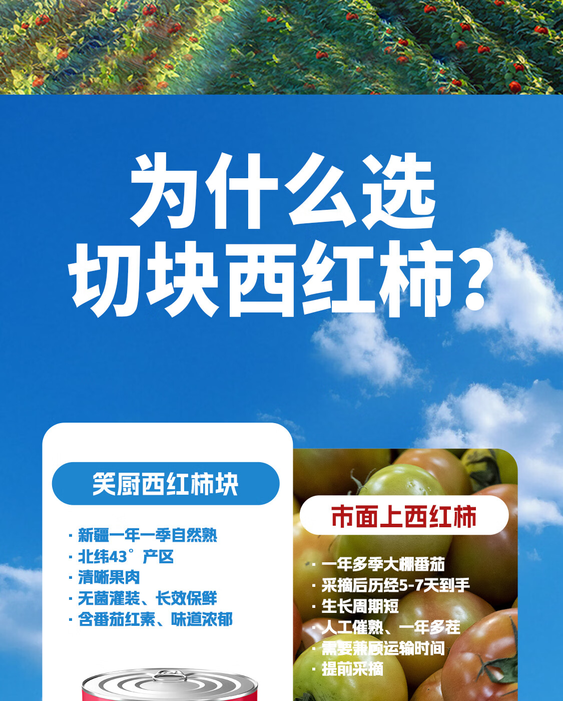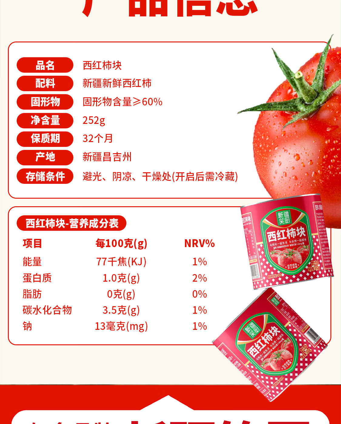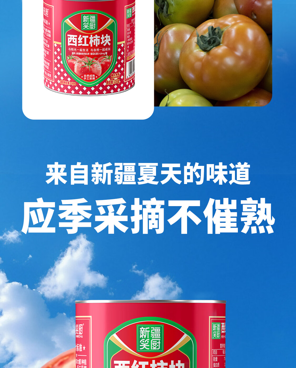 笑厨(XIAOCHU)25年/新疆西红柿块252g*6罐0添加自然成熟新鲜西红柿水果番茄罐头