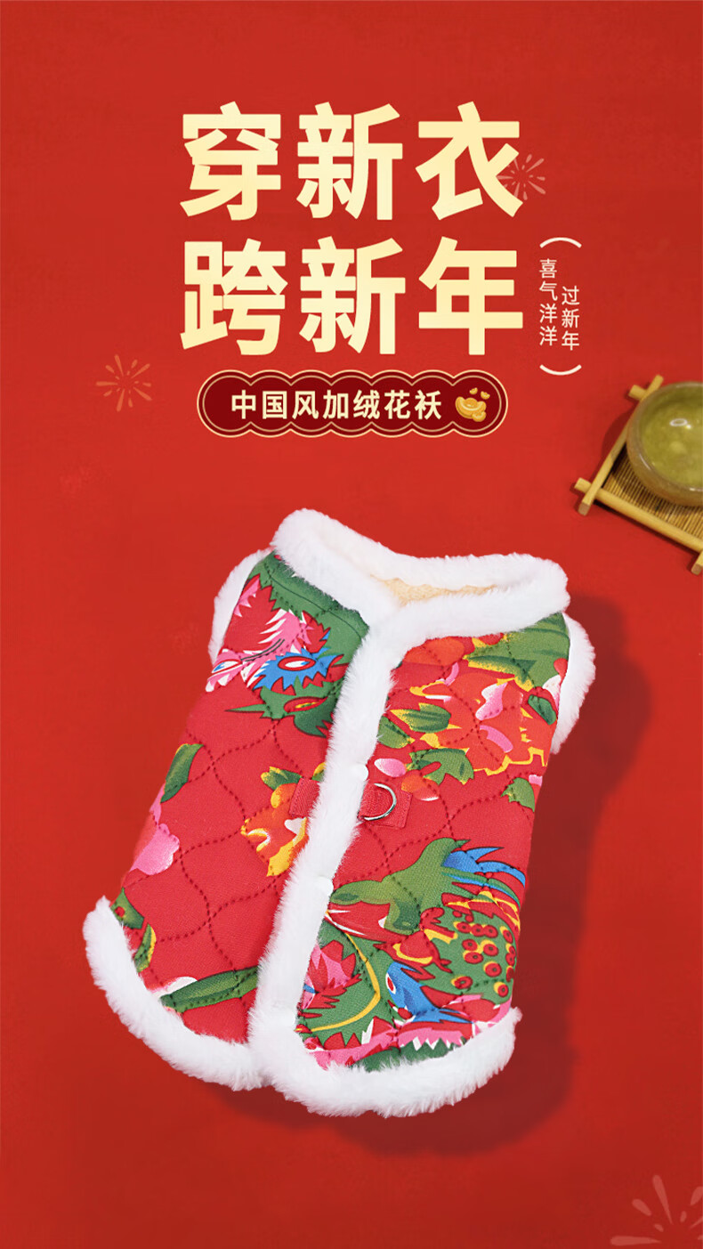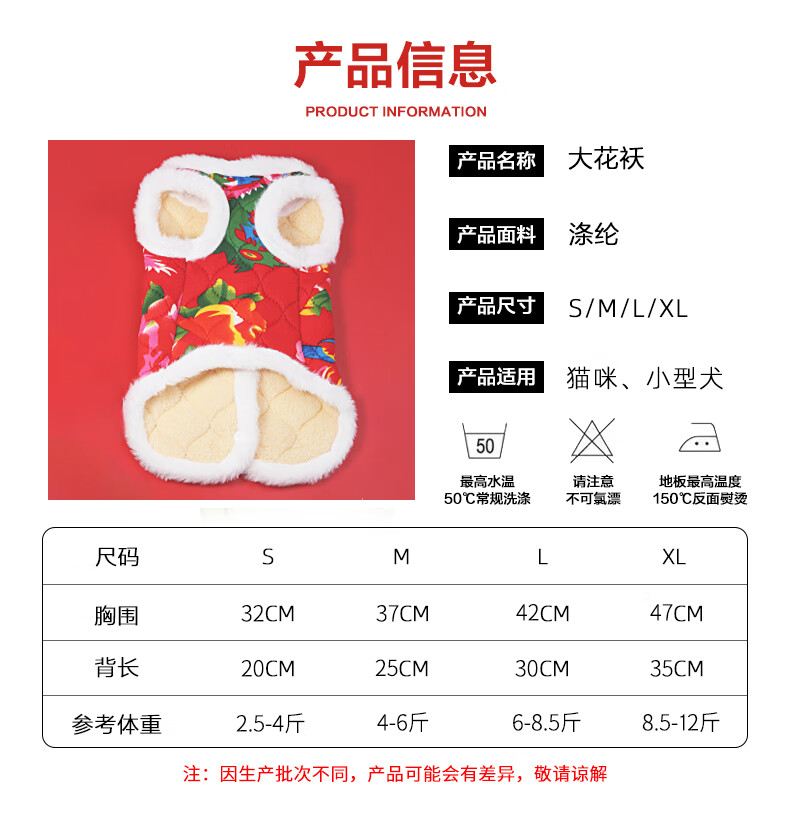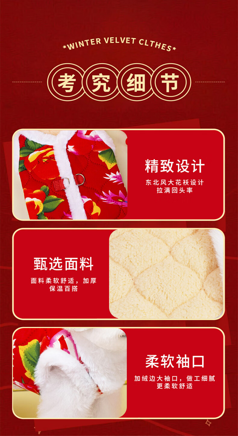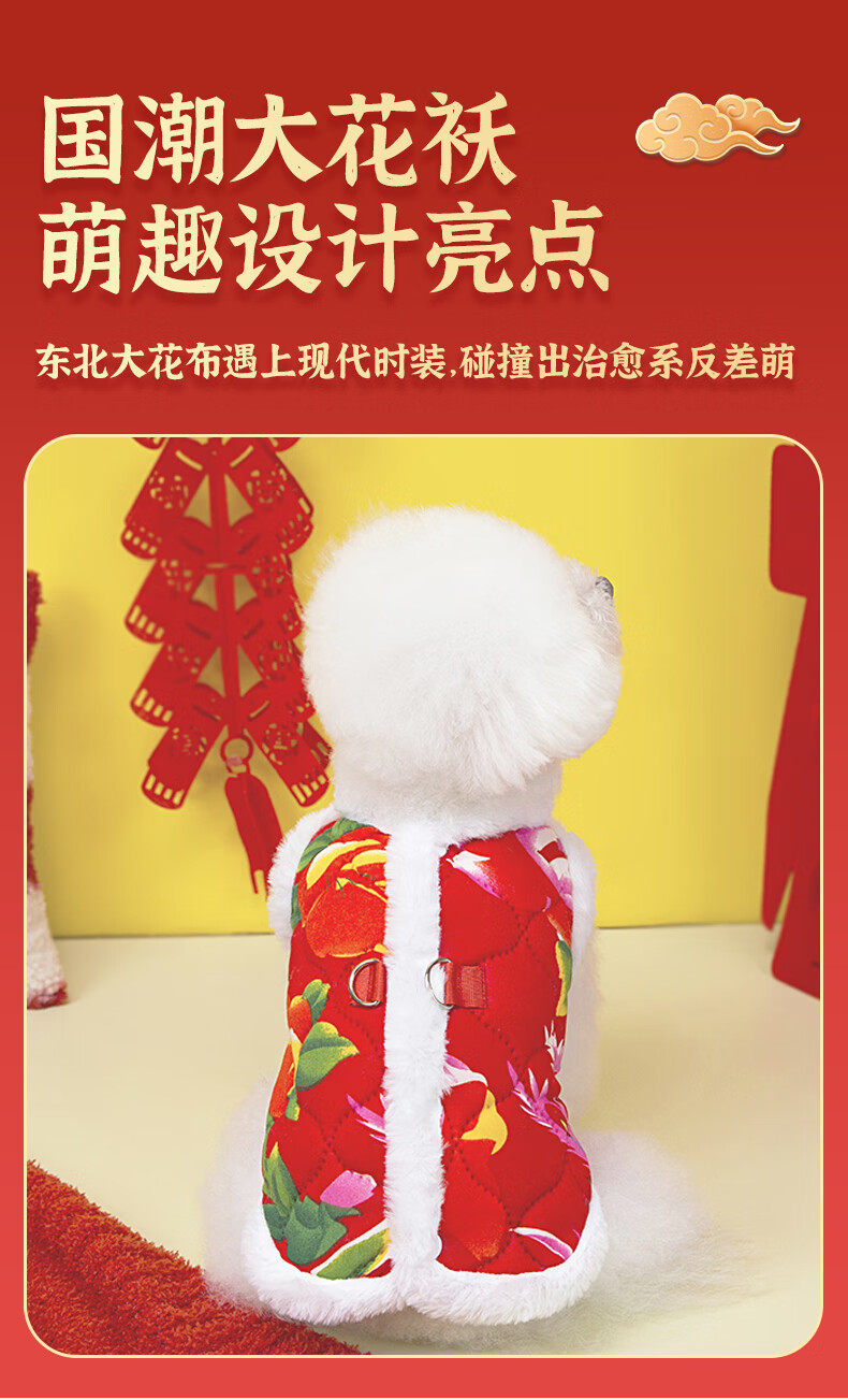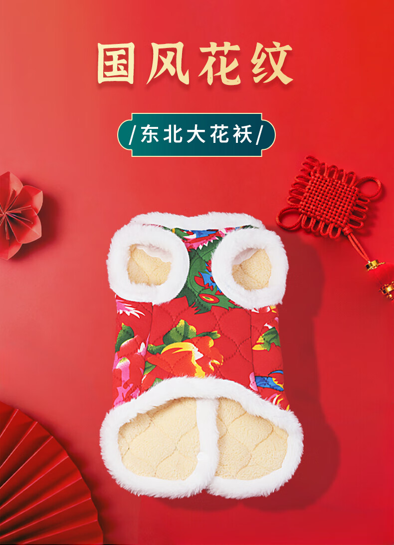 萌嘟星宠猫狗服装秋冬季保暖衣服外套可爱搞笑宠物新年衣东北大花袄M号