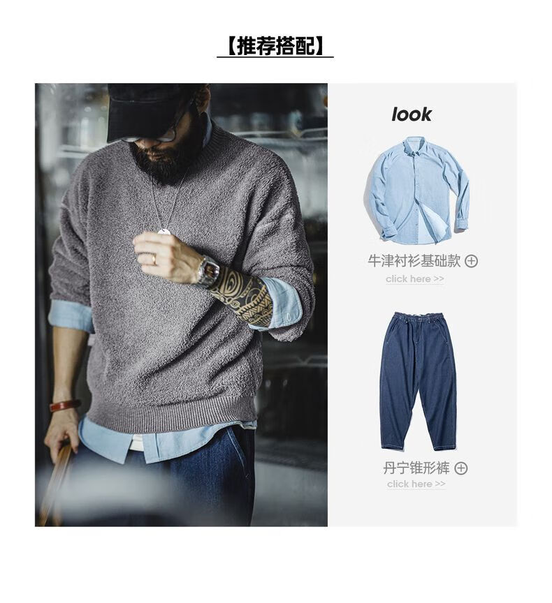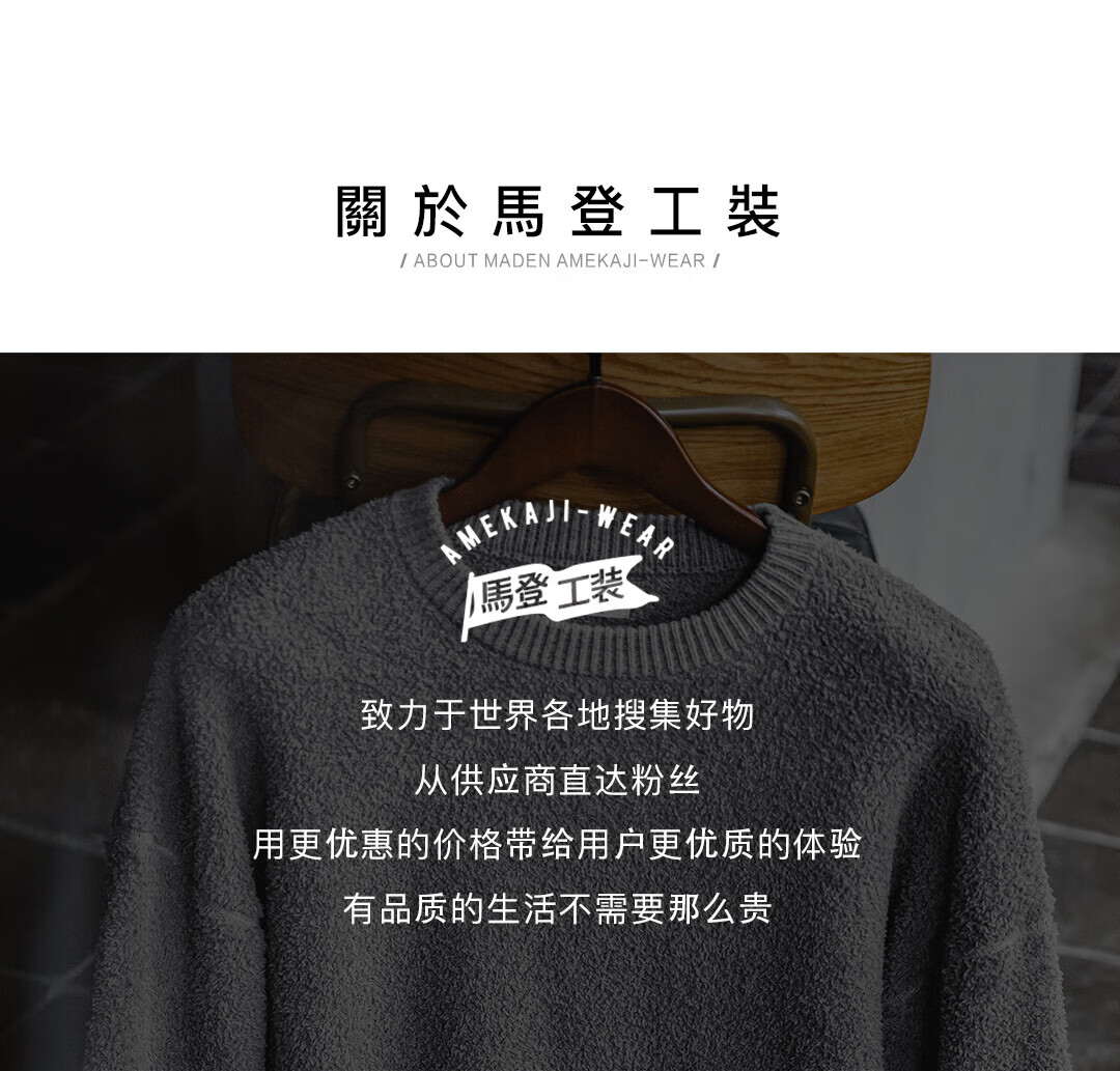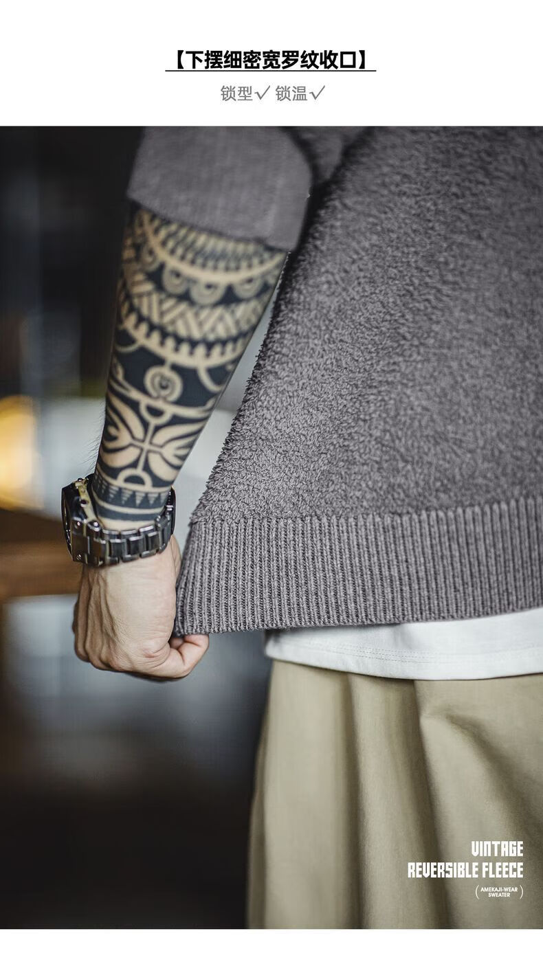 马登 MADEN美式复古单边绒套头毛衣男秋季罗纹圆领落肩慵懒风灰色保暖上衣 陨石灰 XL