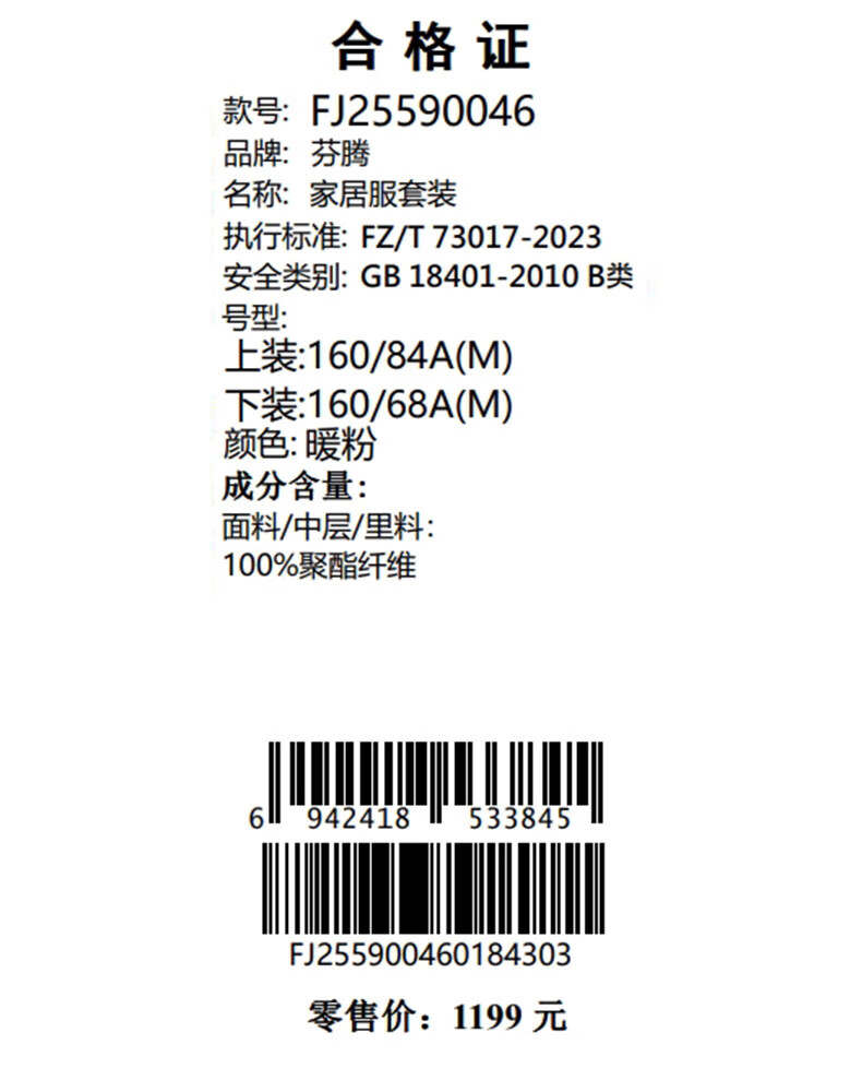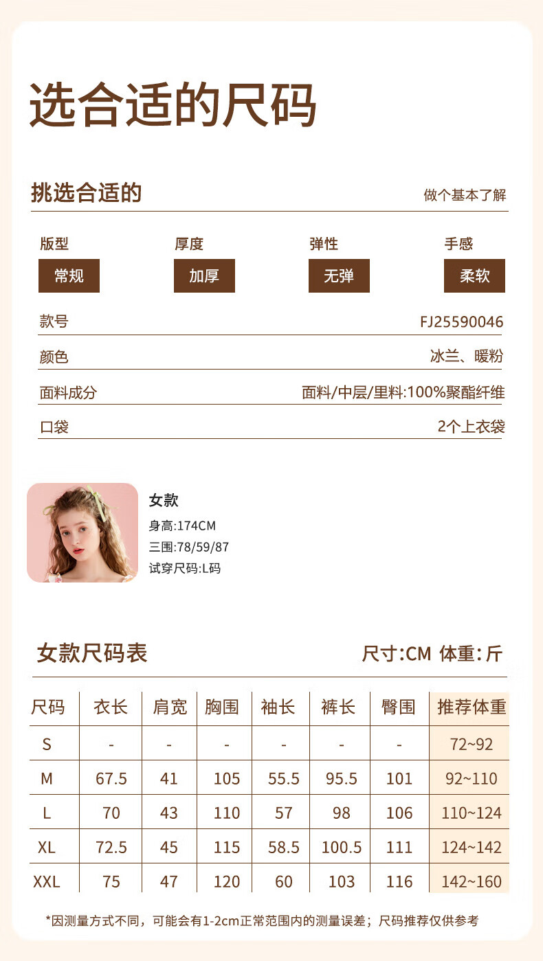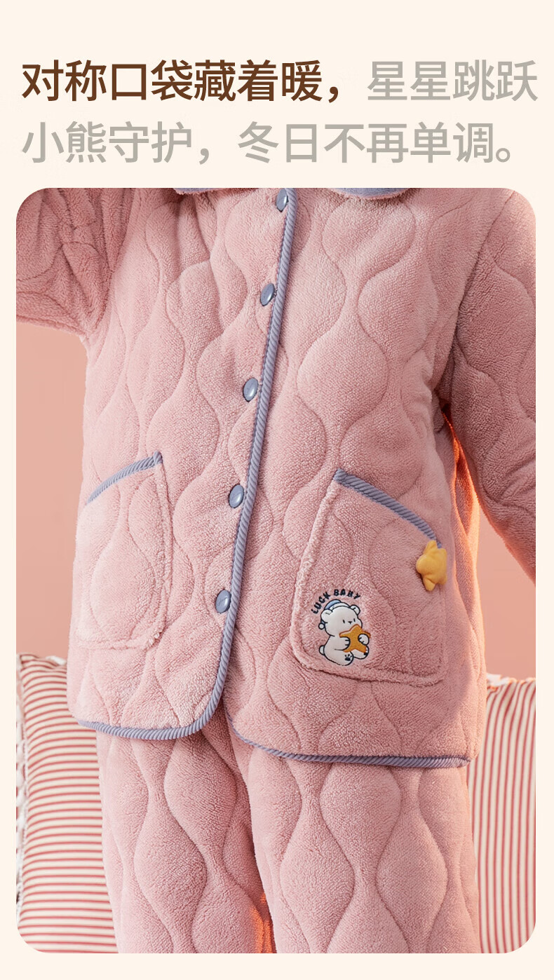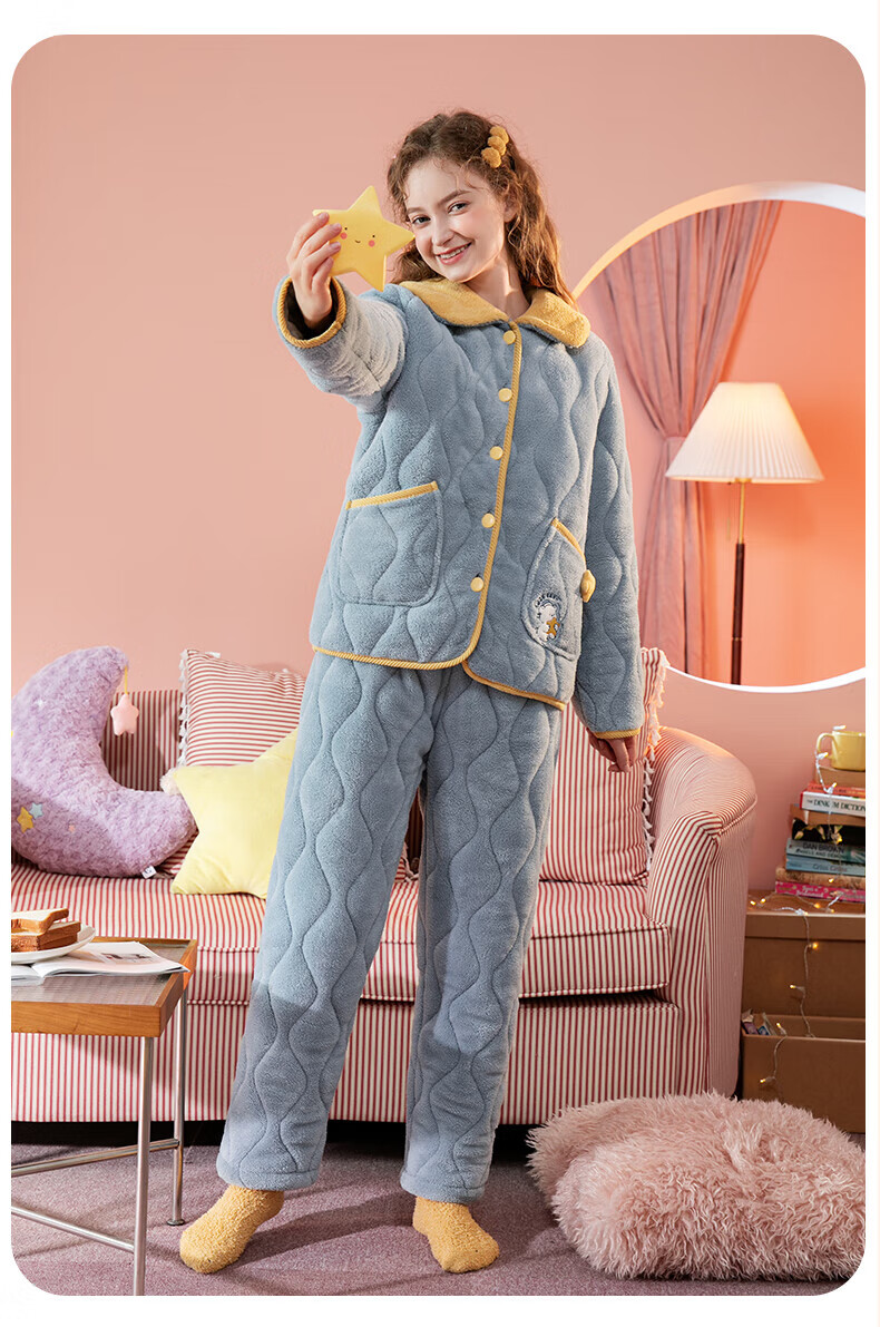 芬腾睡衣女【三层夹棉】秋冬暖绒翻领星星小熊保暖长袖家居服套装 暖粉 L