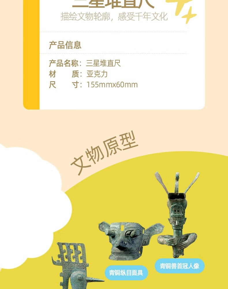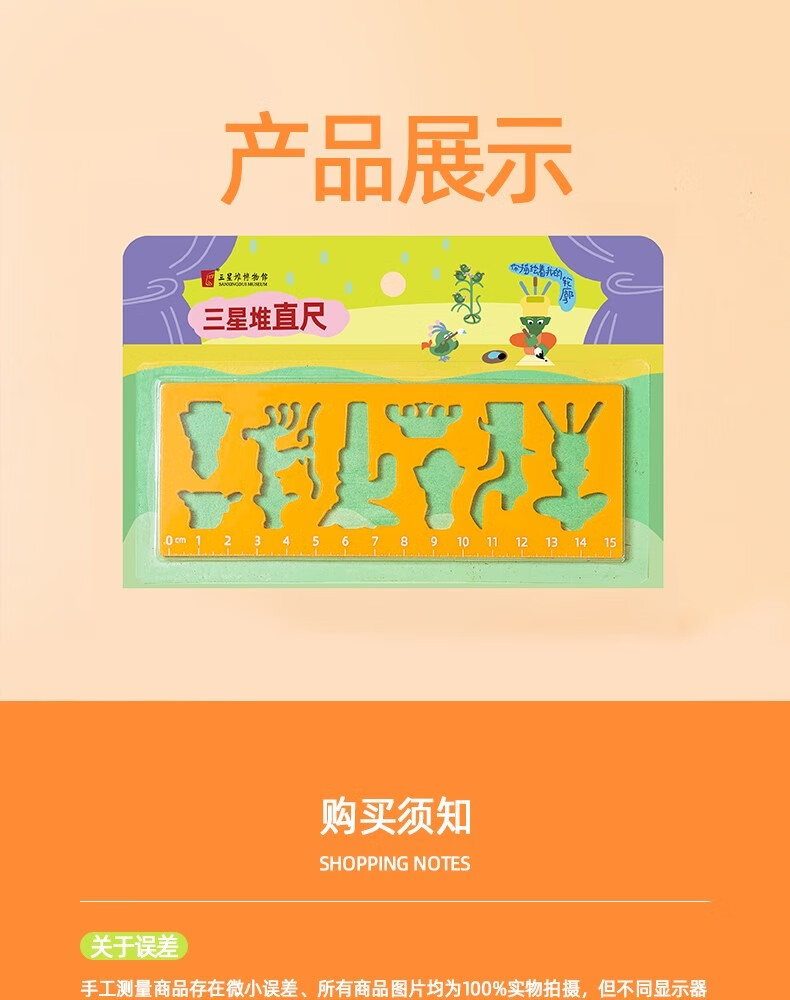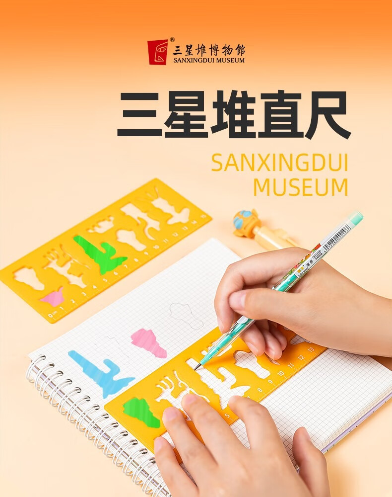 三星堆博物馆文创周边卡通镂空文具直尺送同学纪念品小礼物小礼品儿童文具直尺学生文具尺子儿童伴手礼图案尺子 卡通镂空直尺