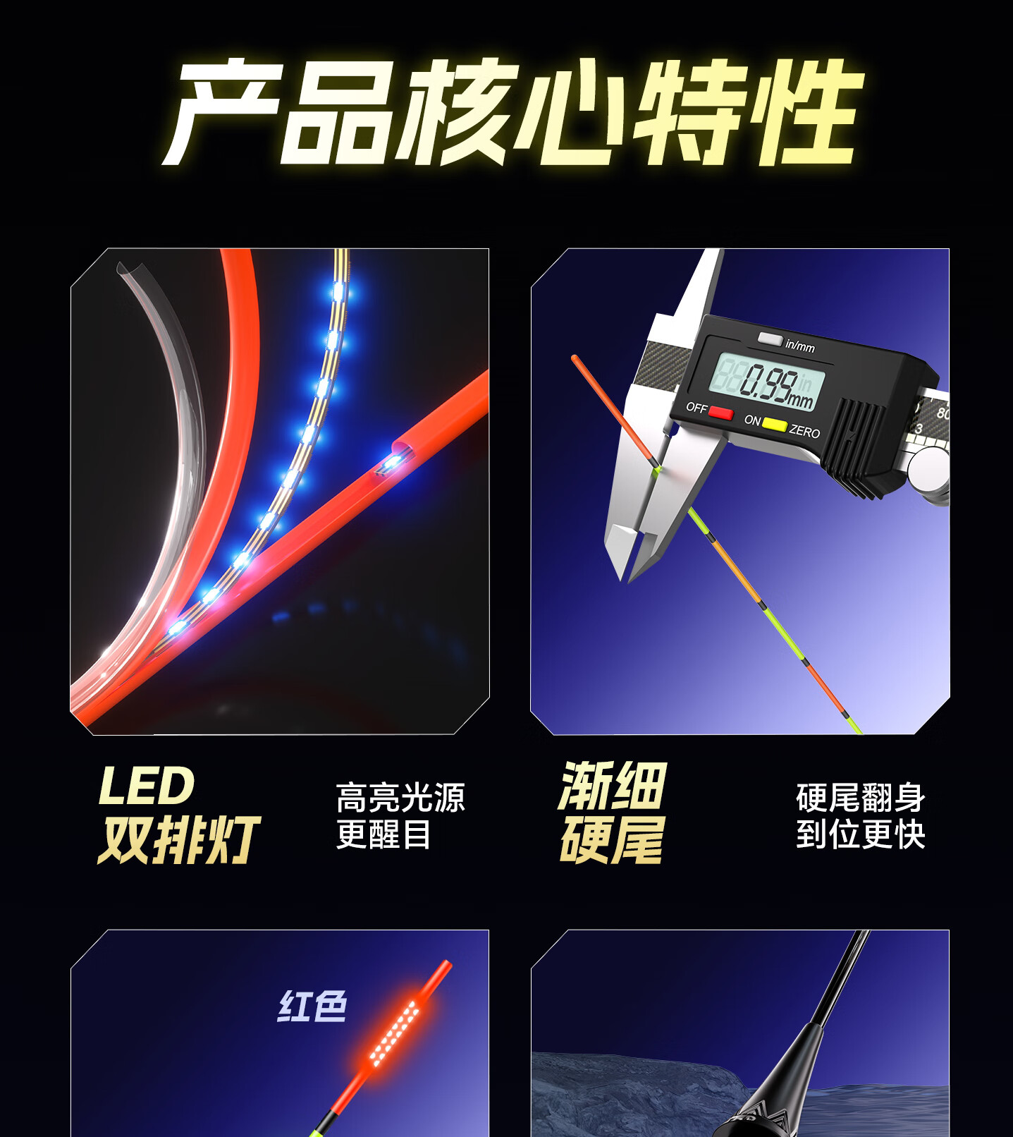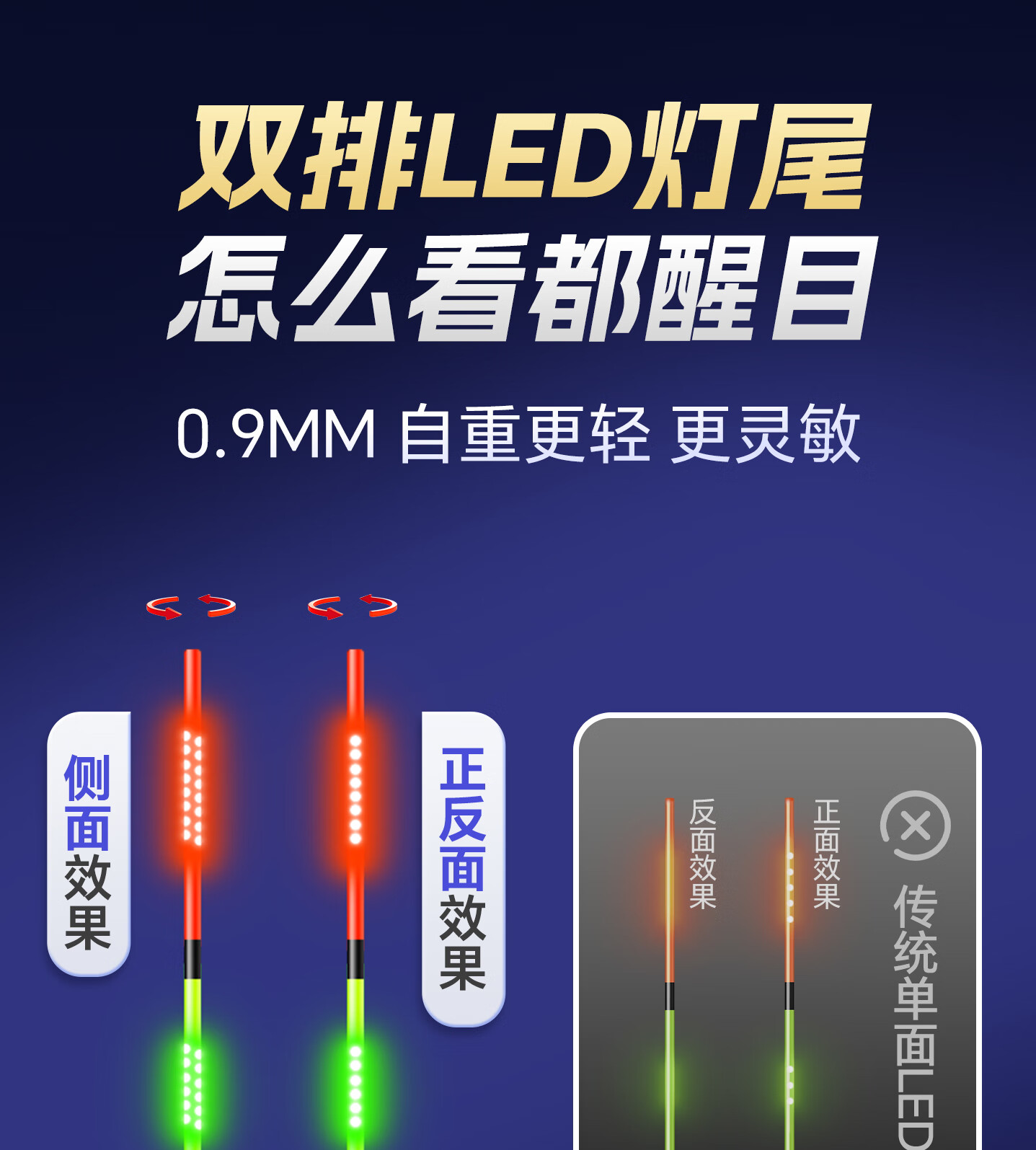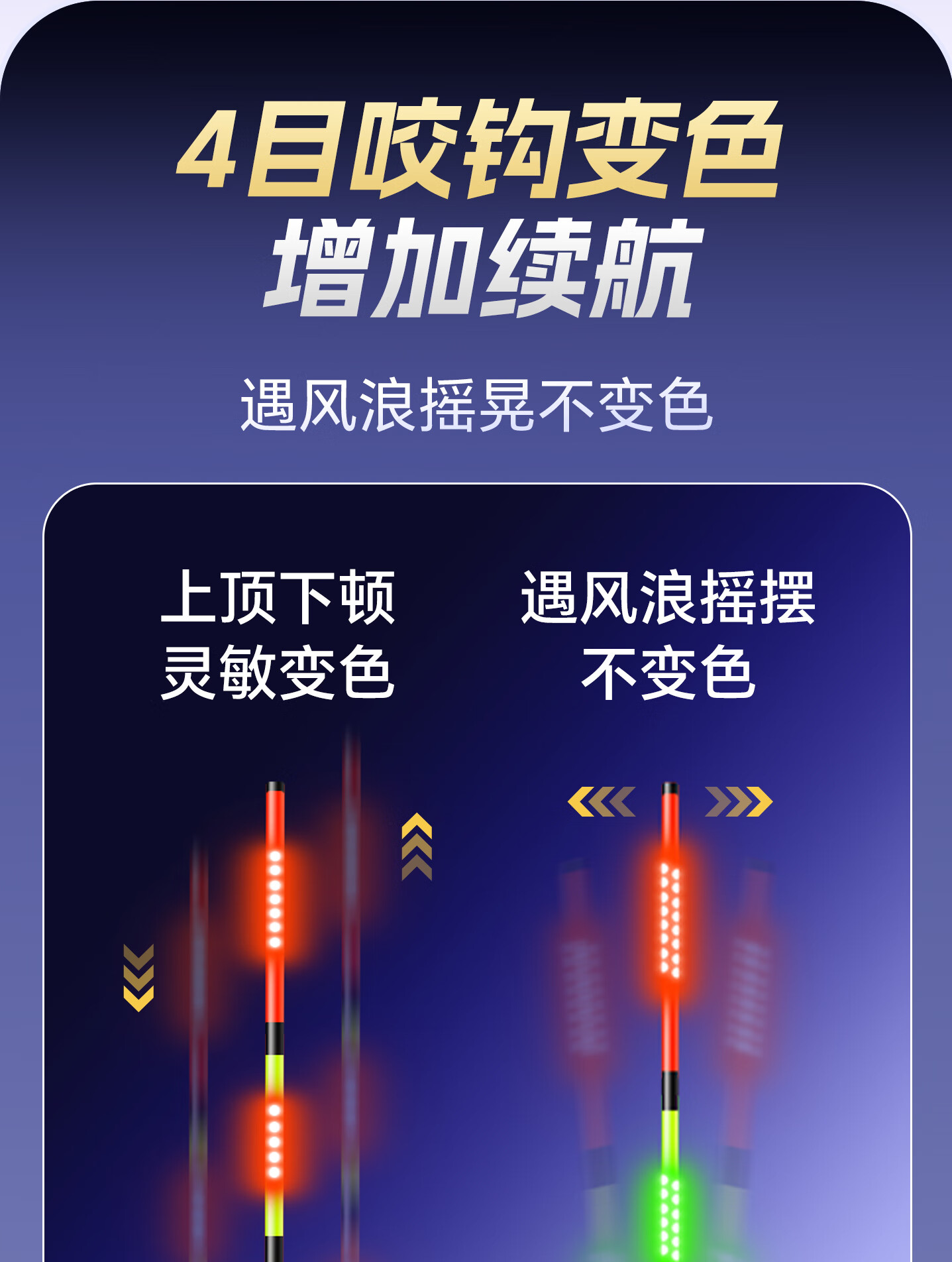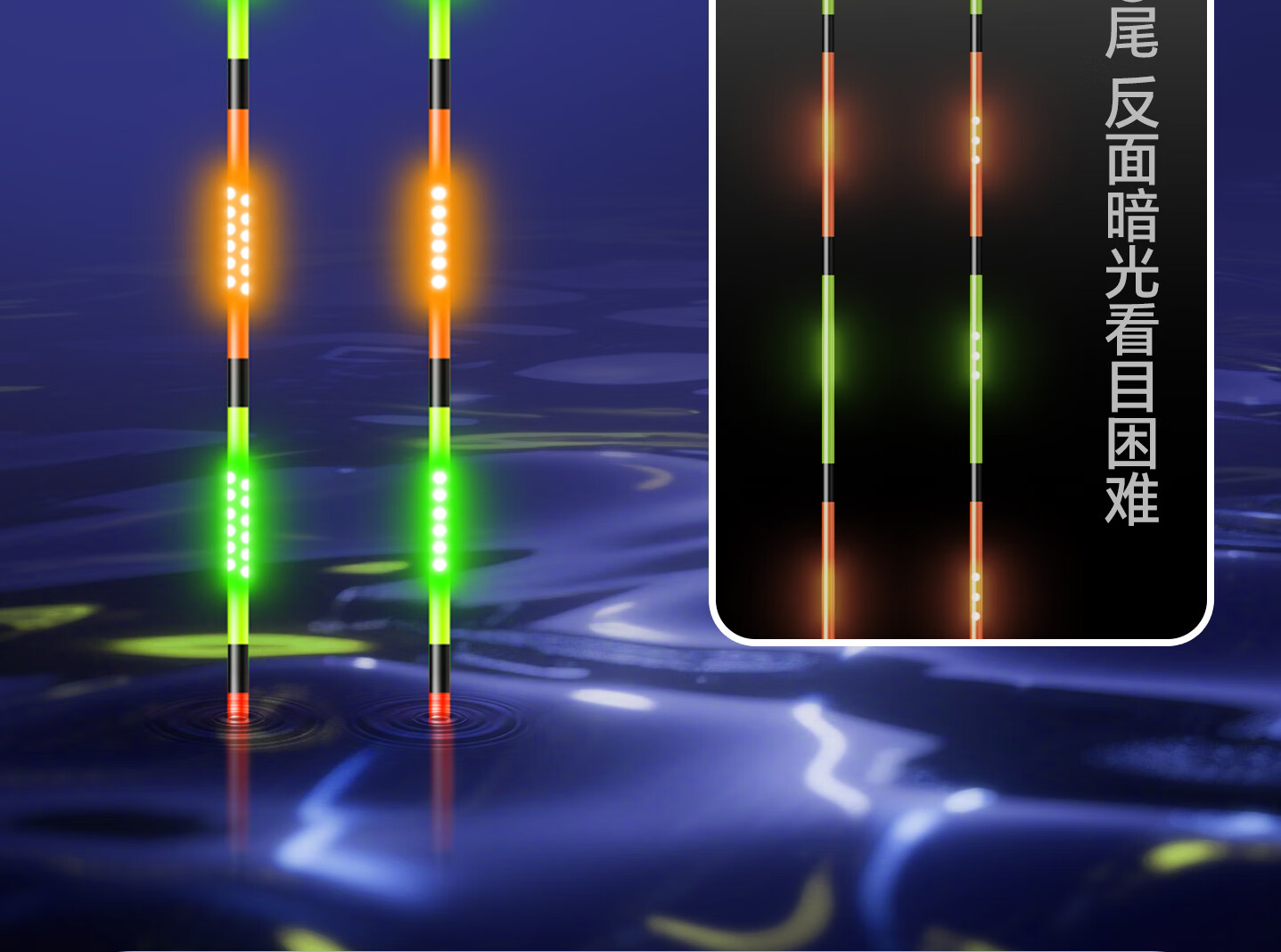 小凤仙双排led渐细硬尾夜光漂高亮醒目浮漂高灵敏四目咬钩变色野钓鱼漂 C05-3 鲫鲤草编综合 吃铅3.3g 变色 渐细硬尾单支